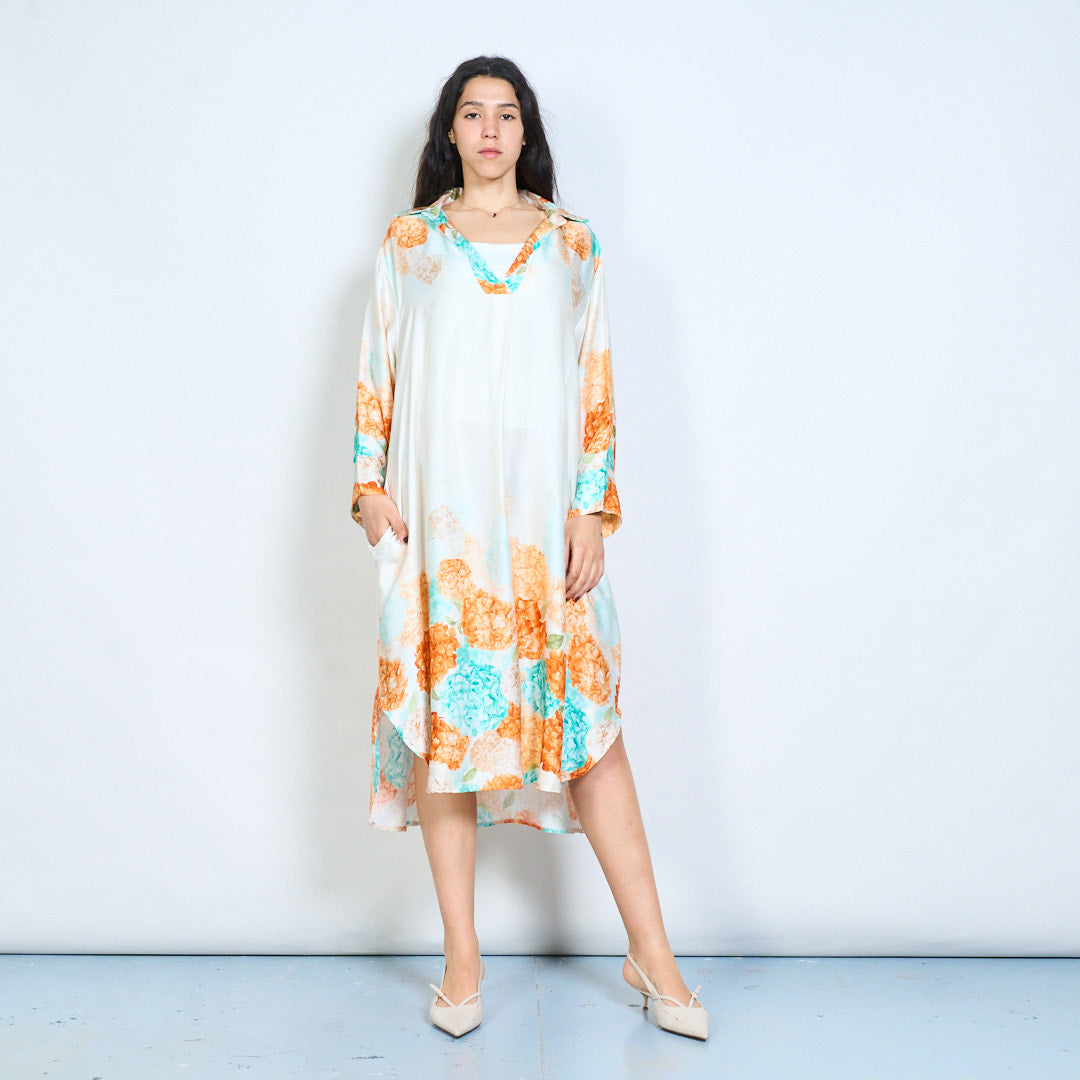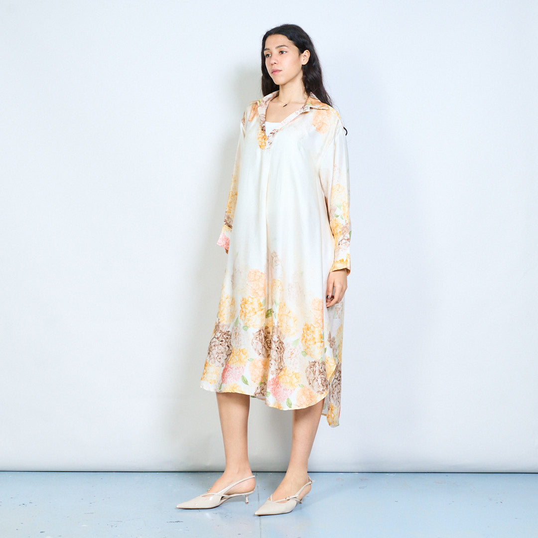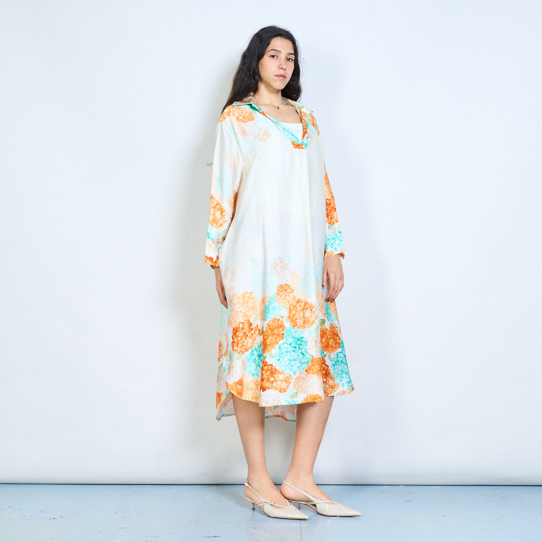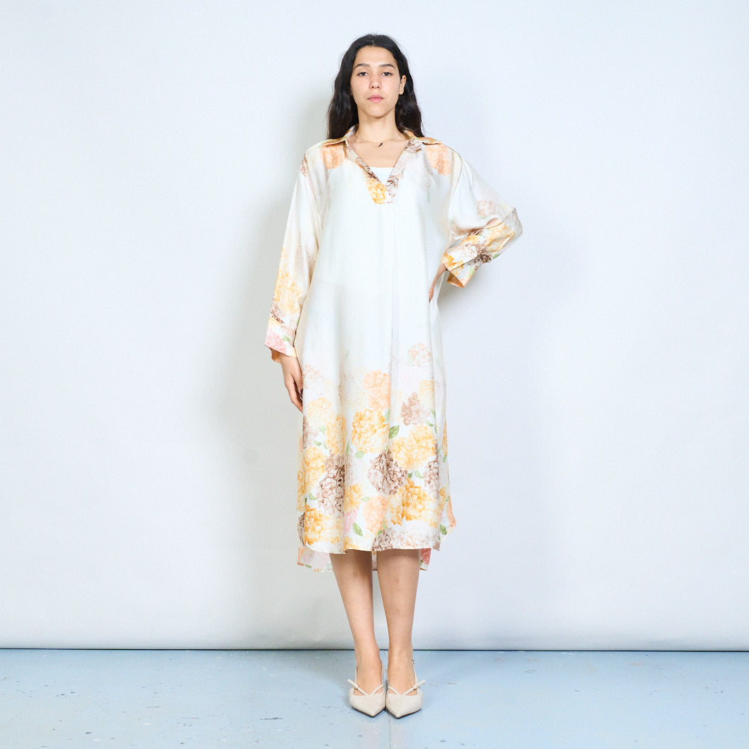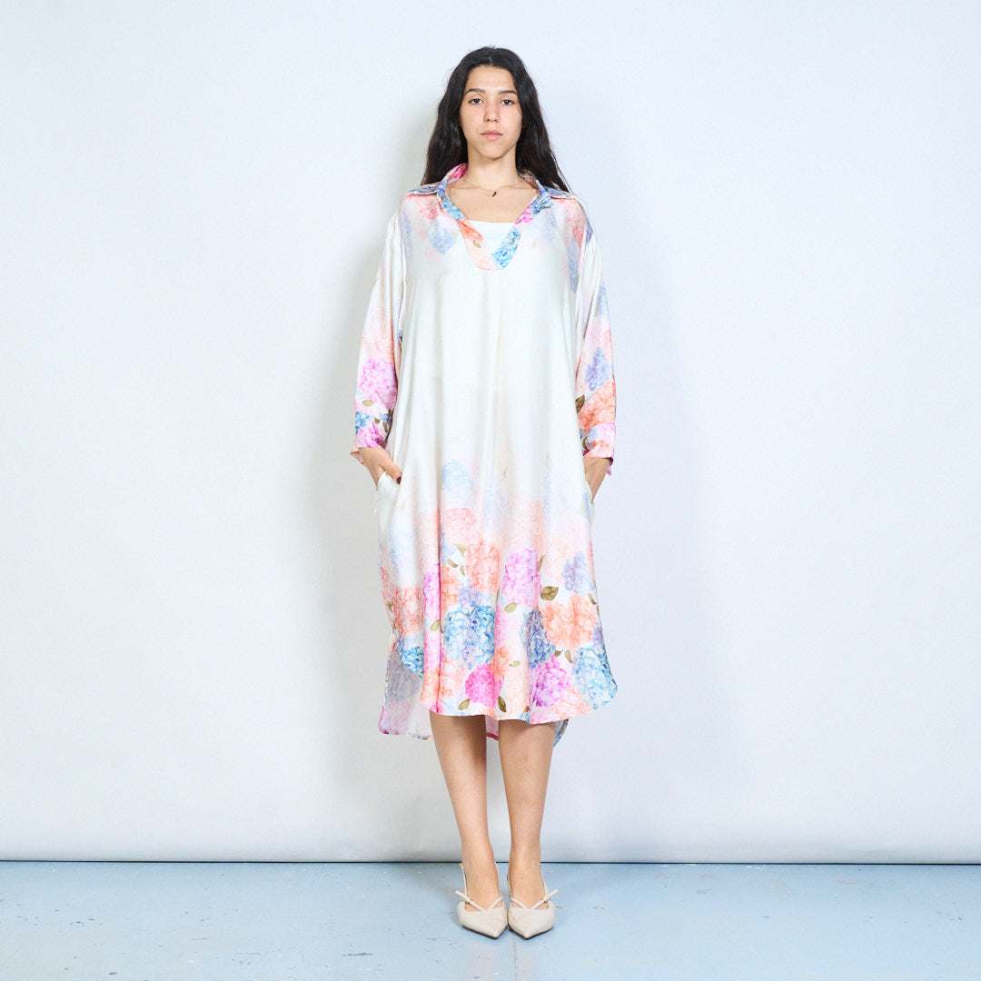 Hydrangea floral print collared midi dress wholesale