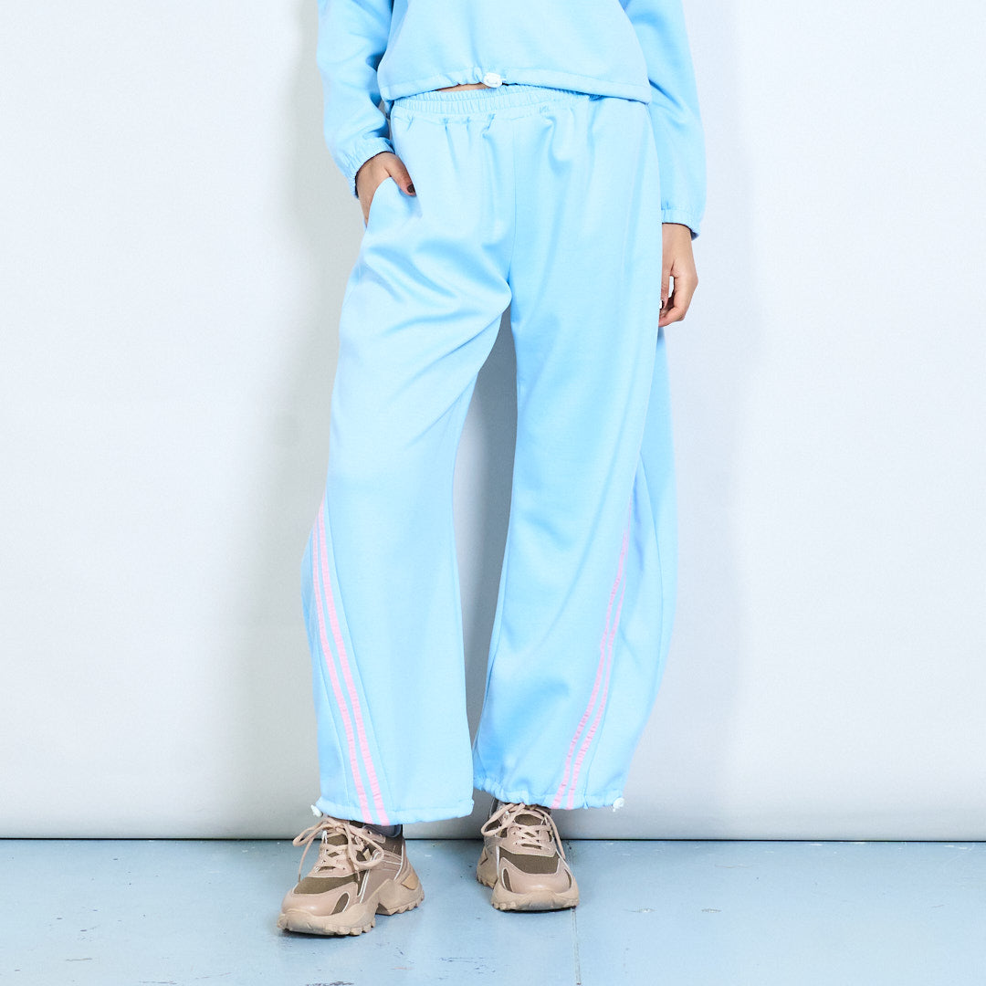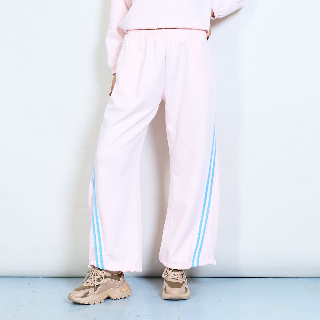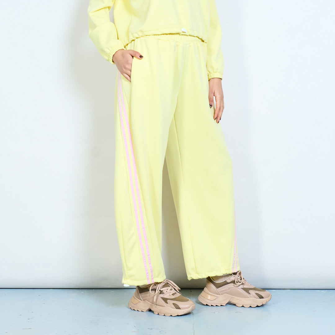 Side stripe elastic waist wide leg trousers wholesale