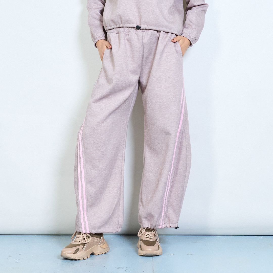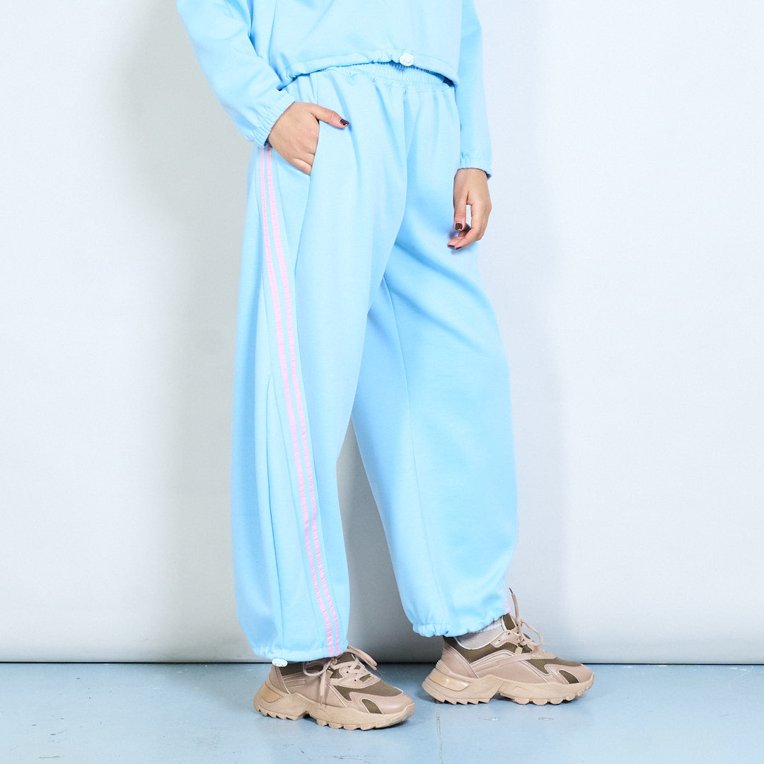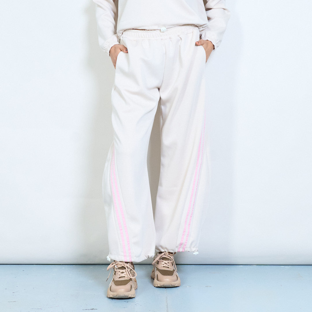 Side stripe elastic waist wide leg trousers wholesale