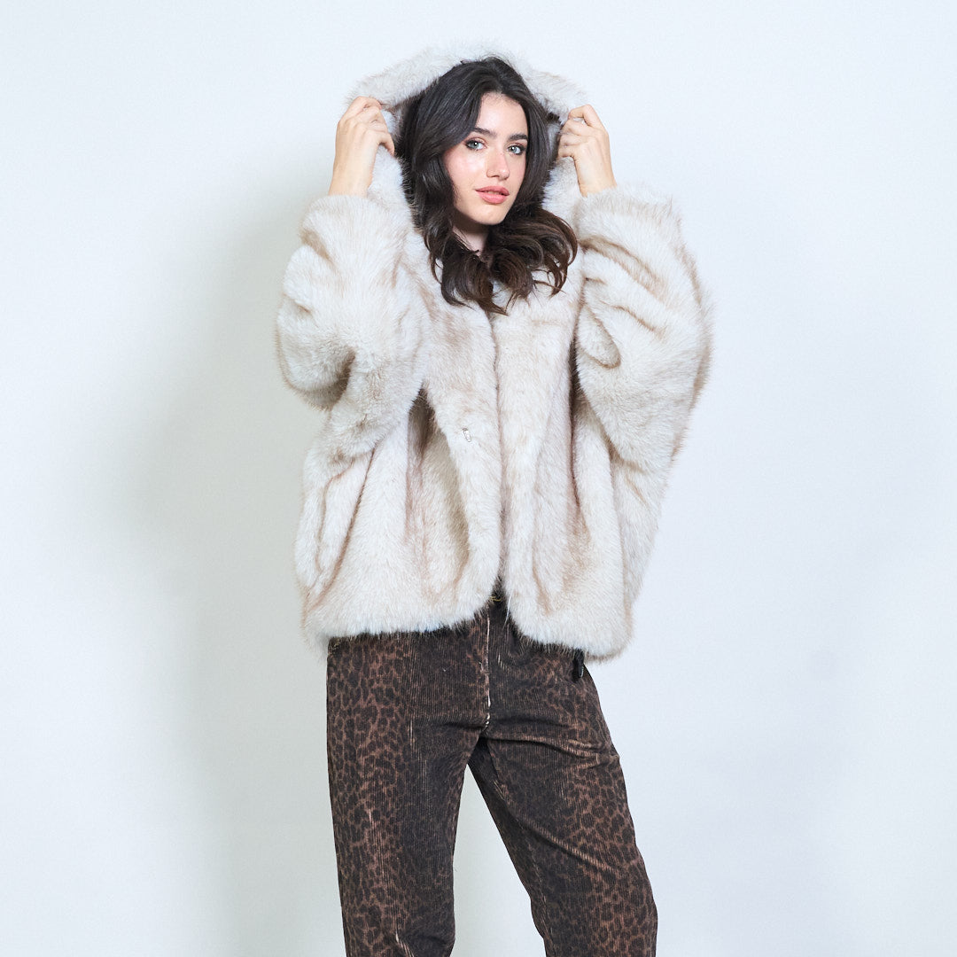 Minimalist faux fur open front jacket with smooth lining wholesale