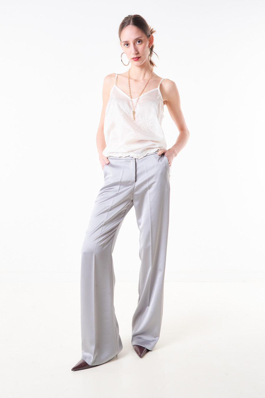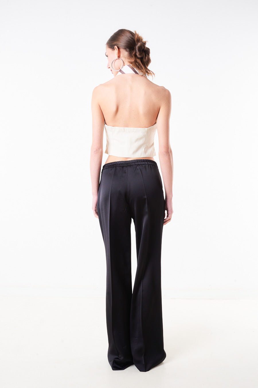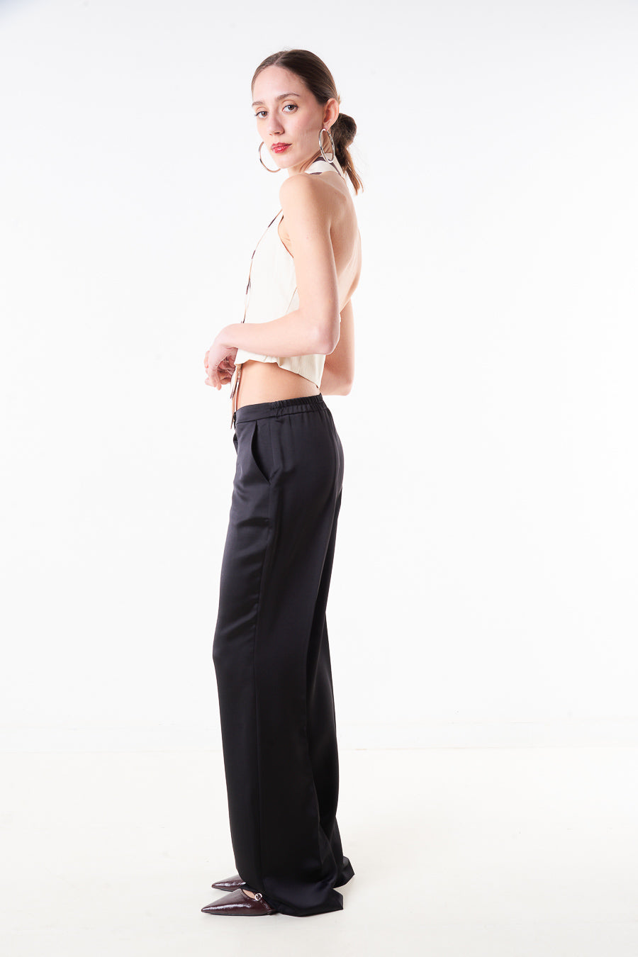 High waist satin wide leg trouser with side pocket detail wholesale