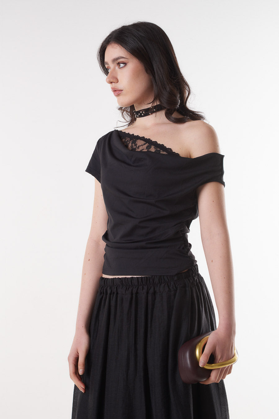 Minimal lace panel "amour" printed round neck t-shirt wholesale