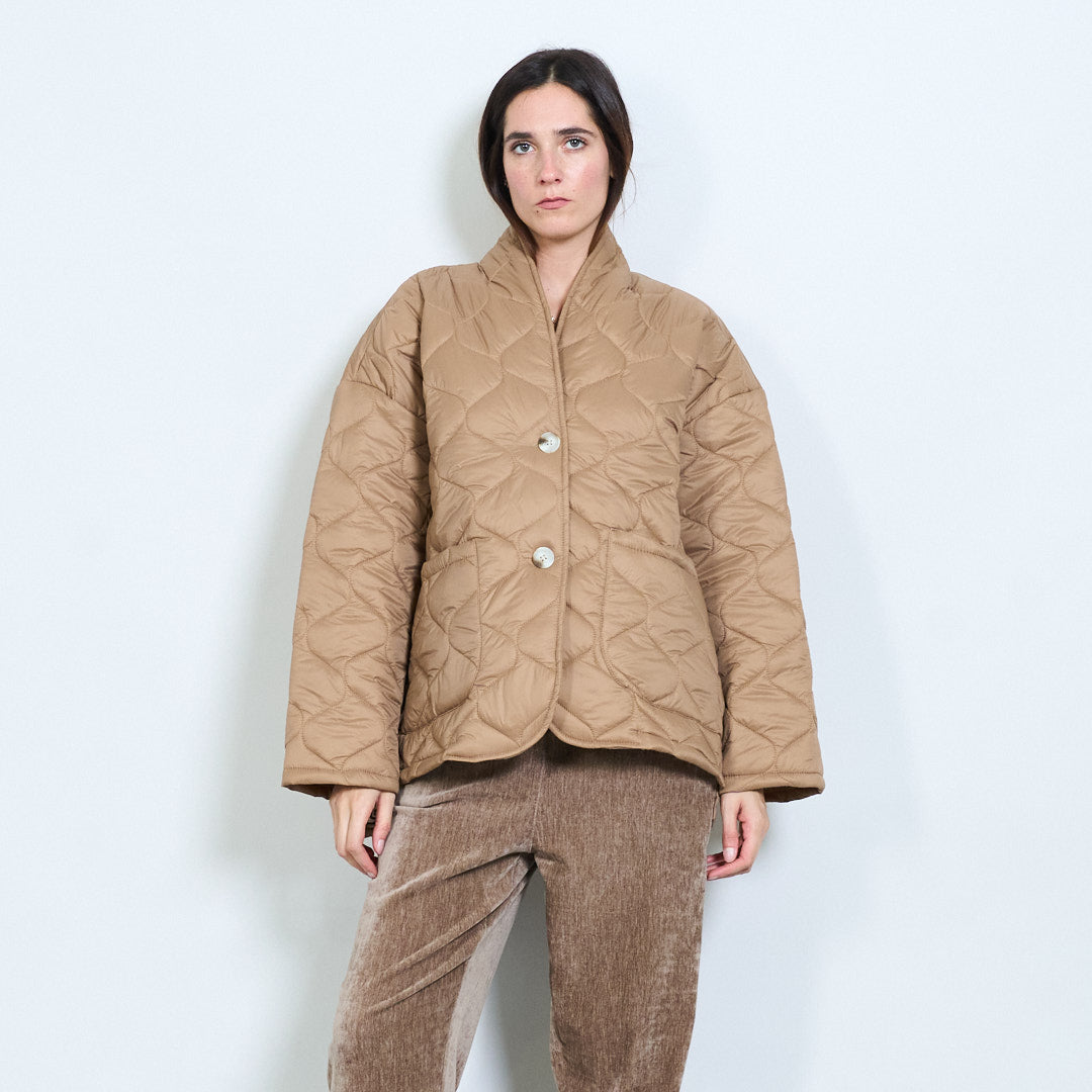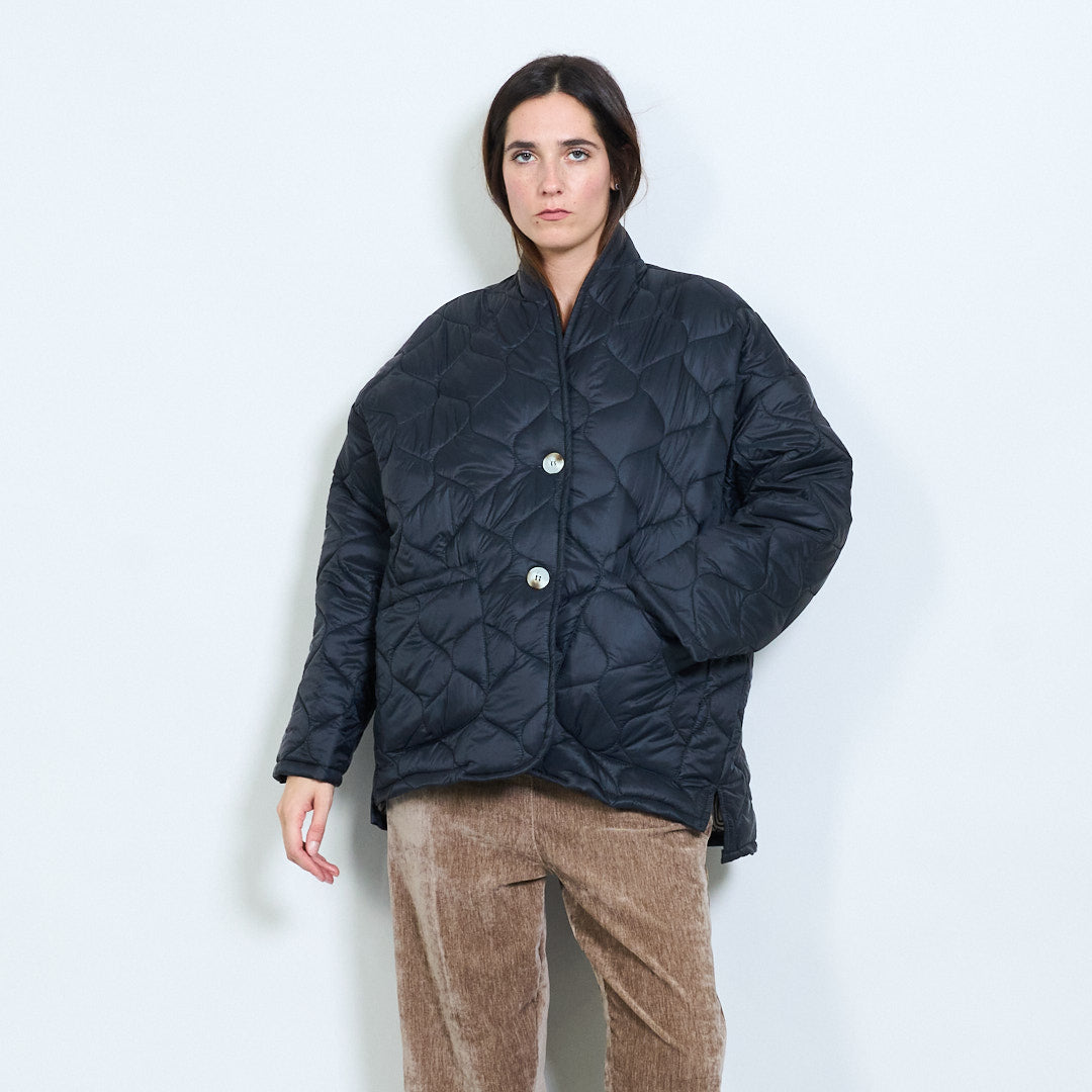 - Oversized jacket with unique sculpted quilted stitching