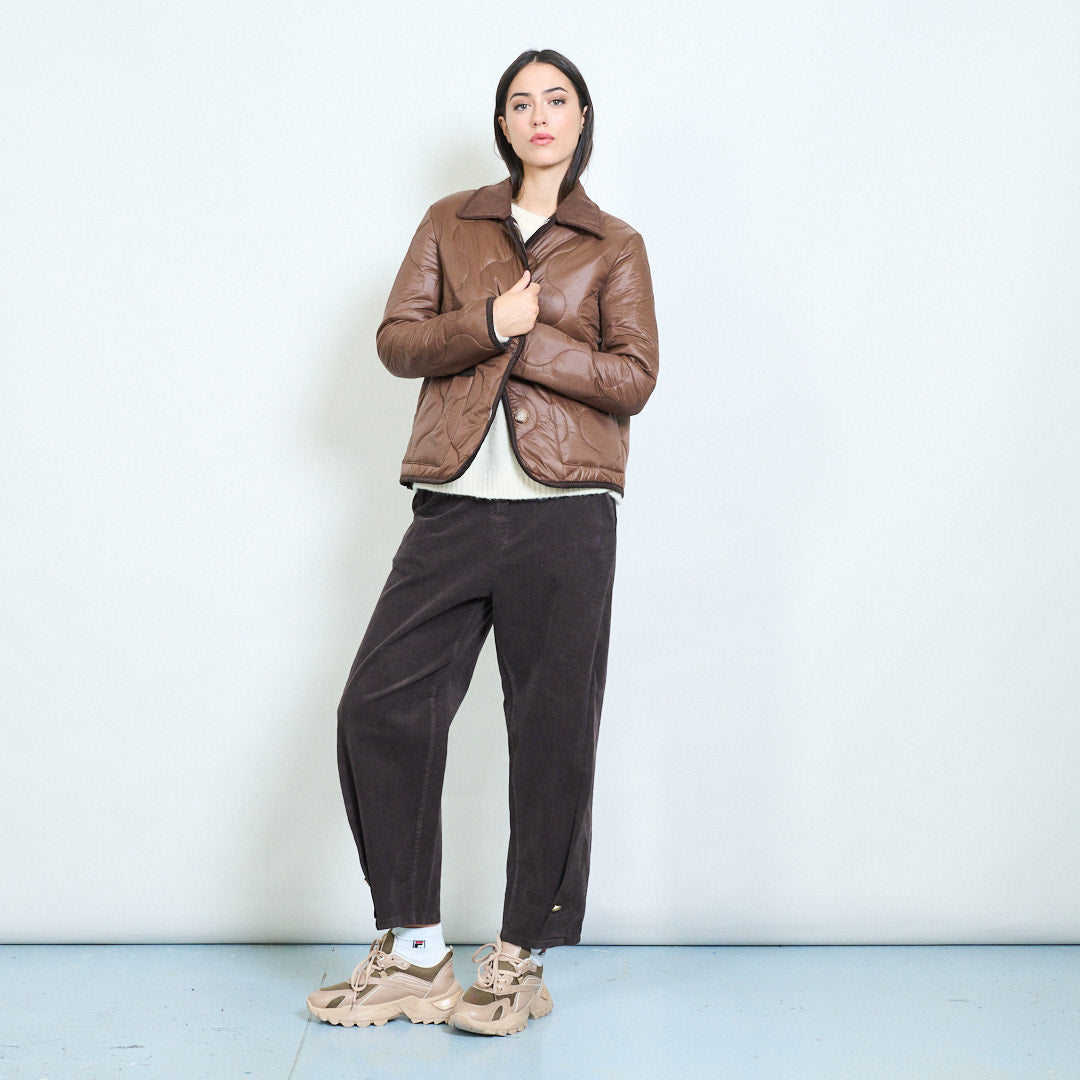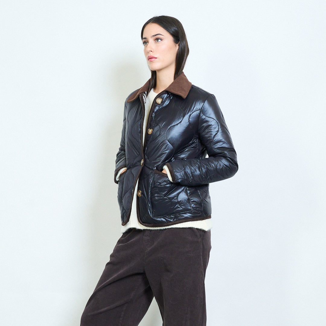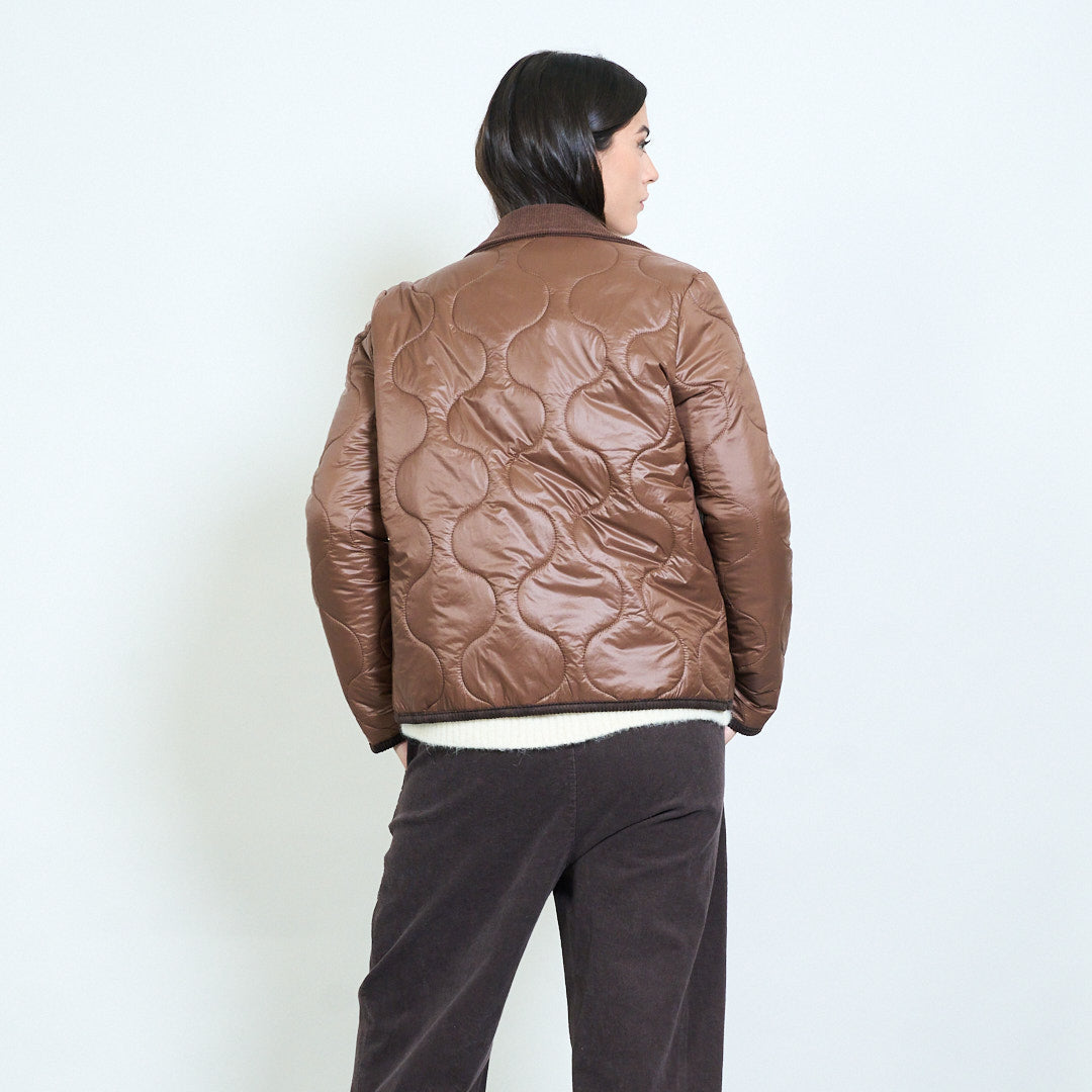 - Stylish quilted outer design featuring a wavy stitch pattern for texture and warmth