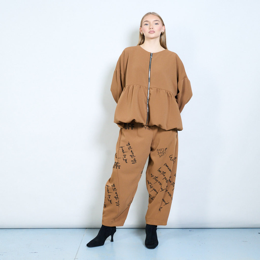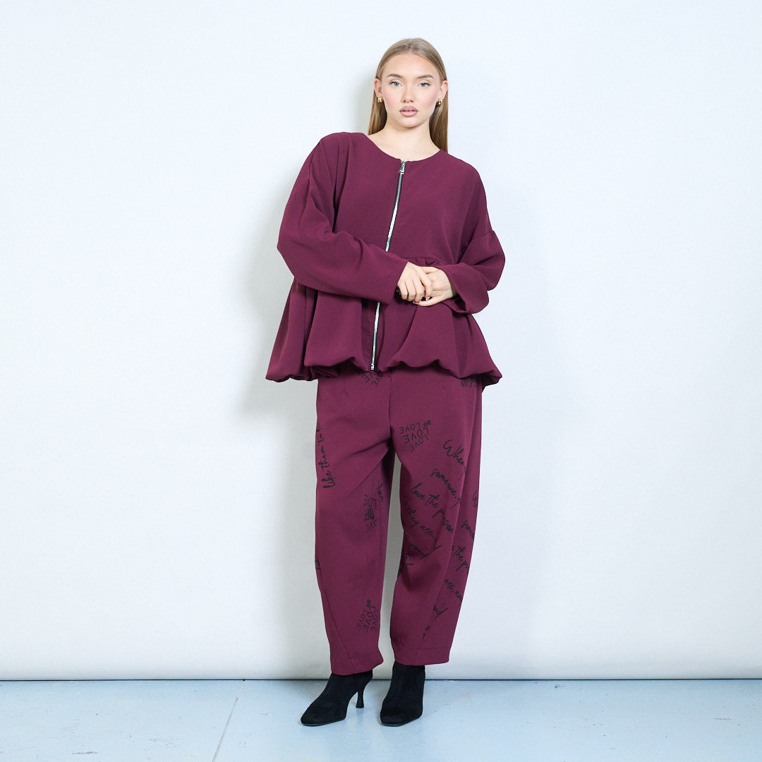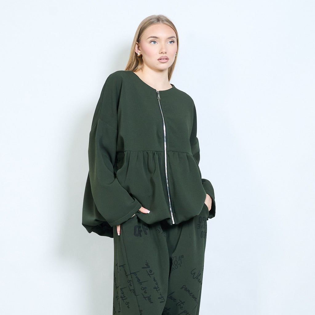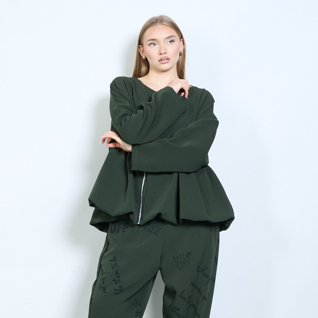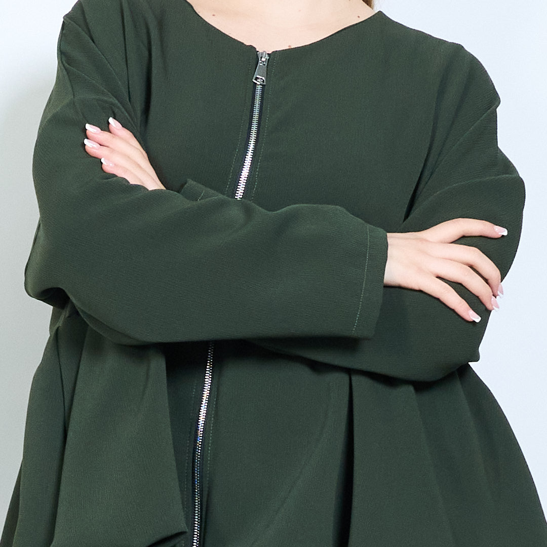 • Designed with a soft pleated peplum that creates a gentle flared silhouette