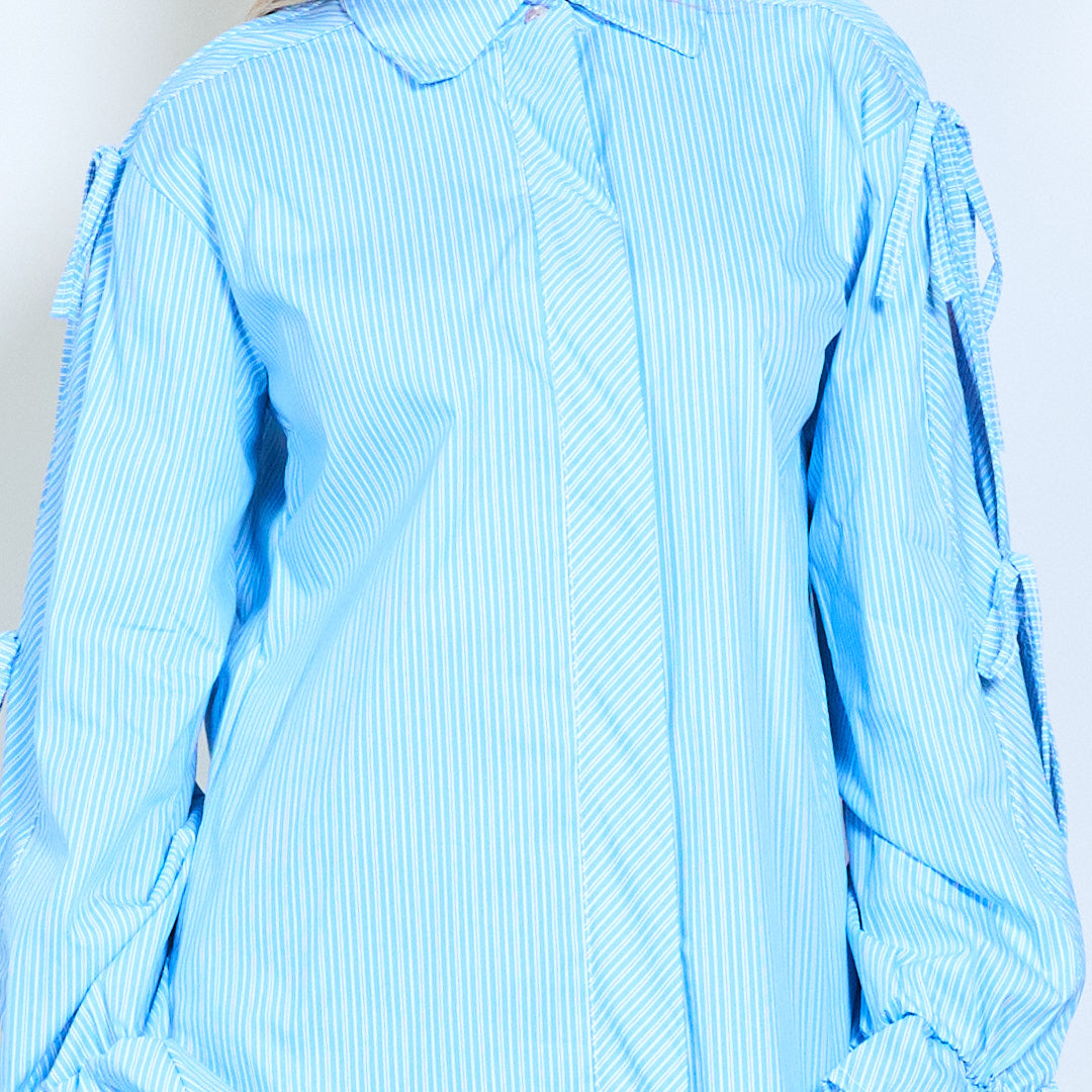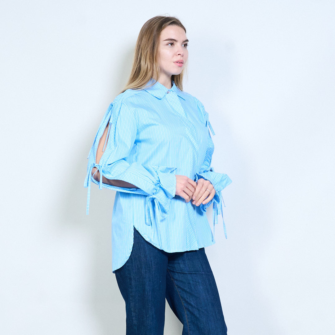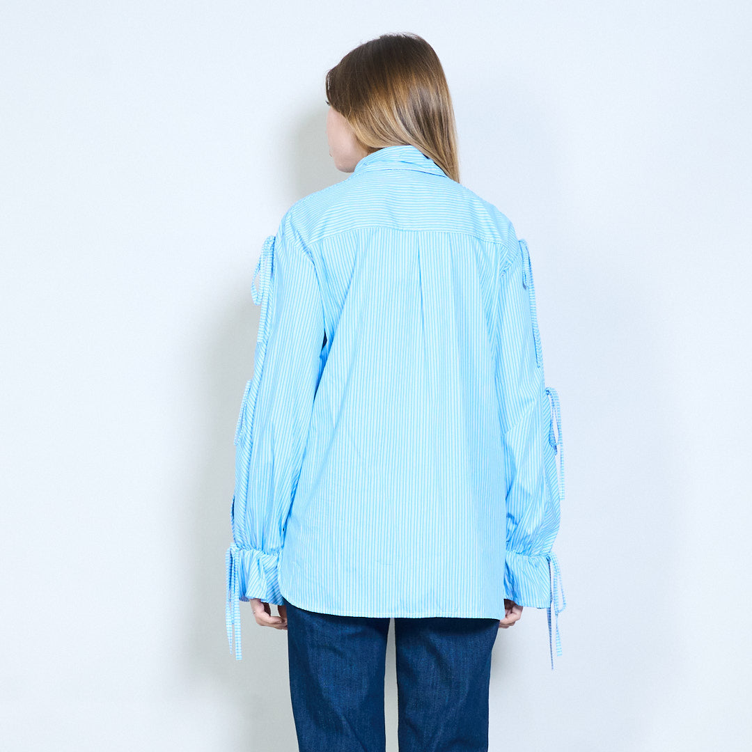 Stribet krave flydende bluse med snøre ærmer engros
