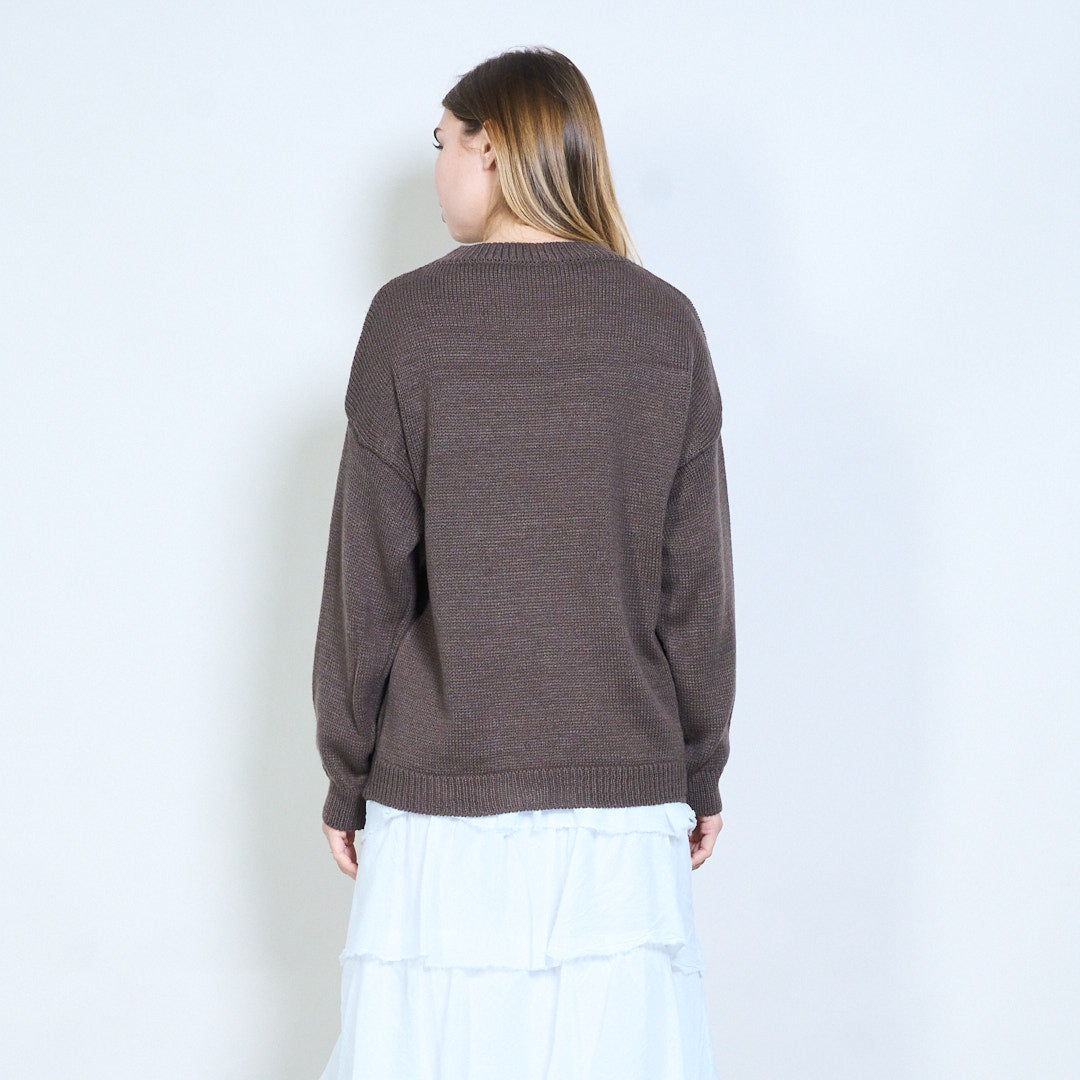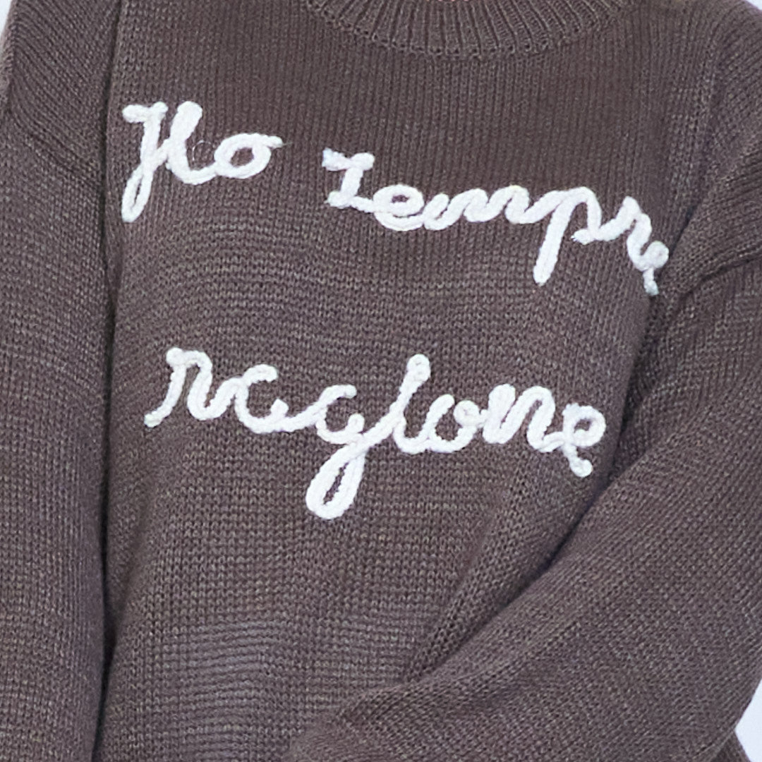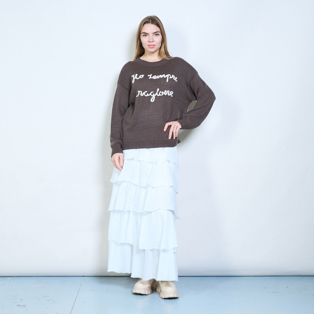 Strikket grafisk "ho semper ragione" tekst sweater engros