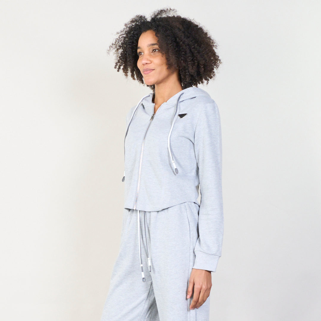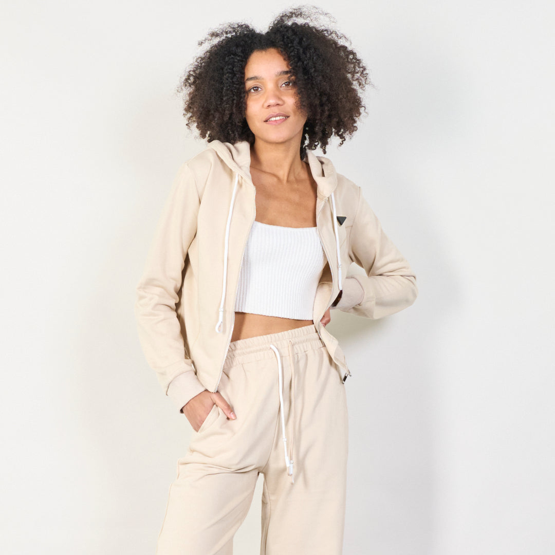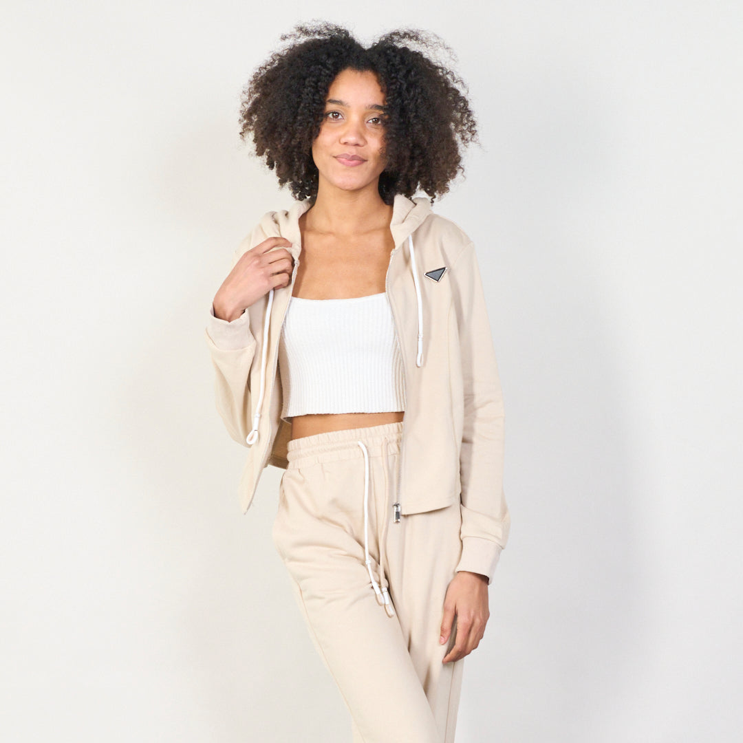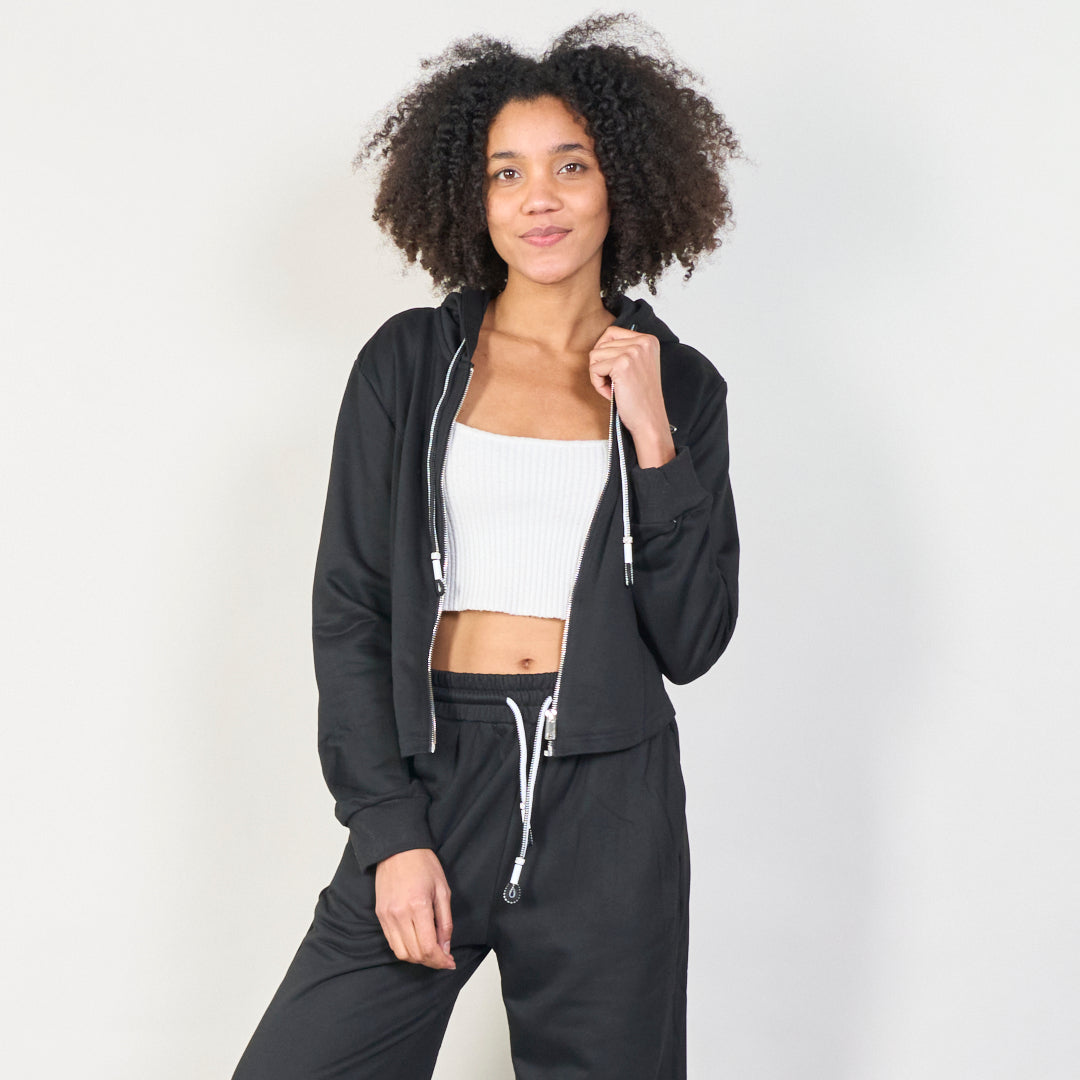 - Beskåret lynlås hættetrøje med justerbar trækstring