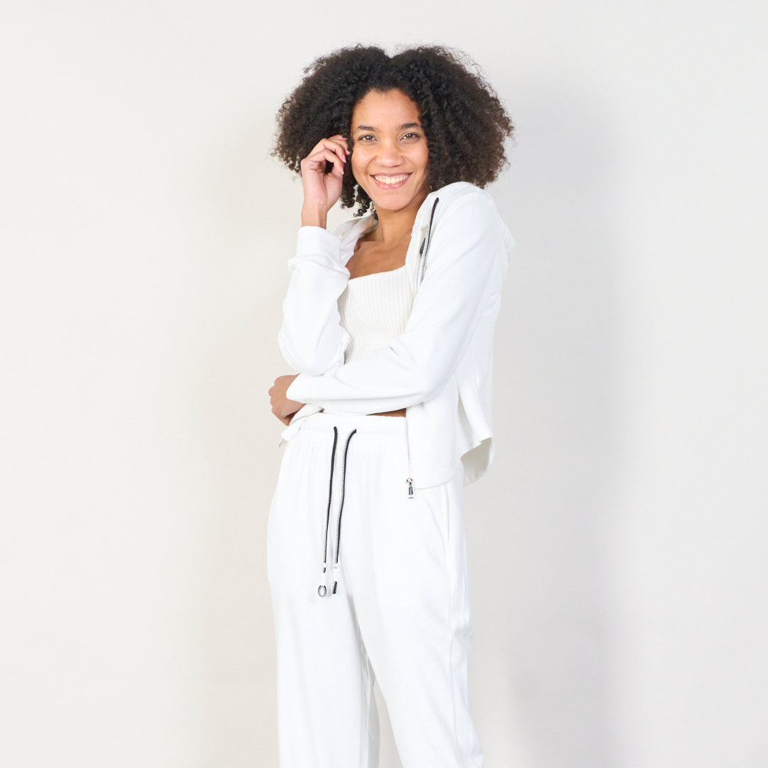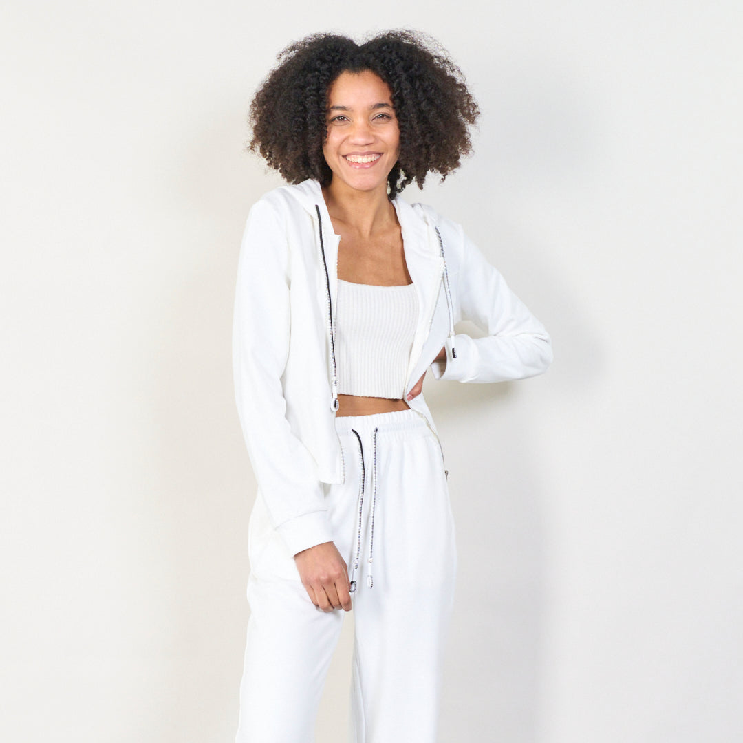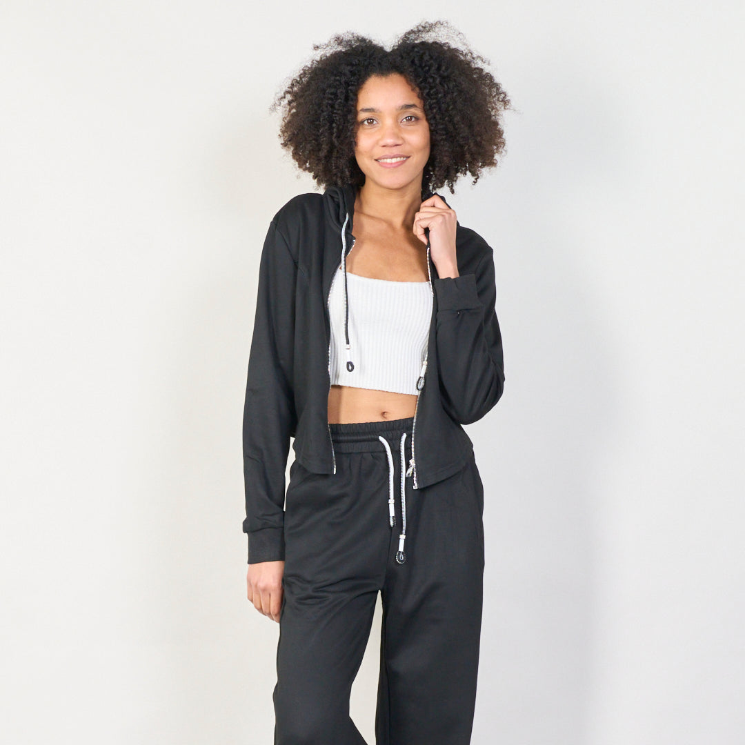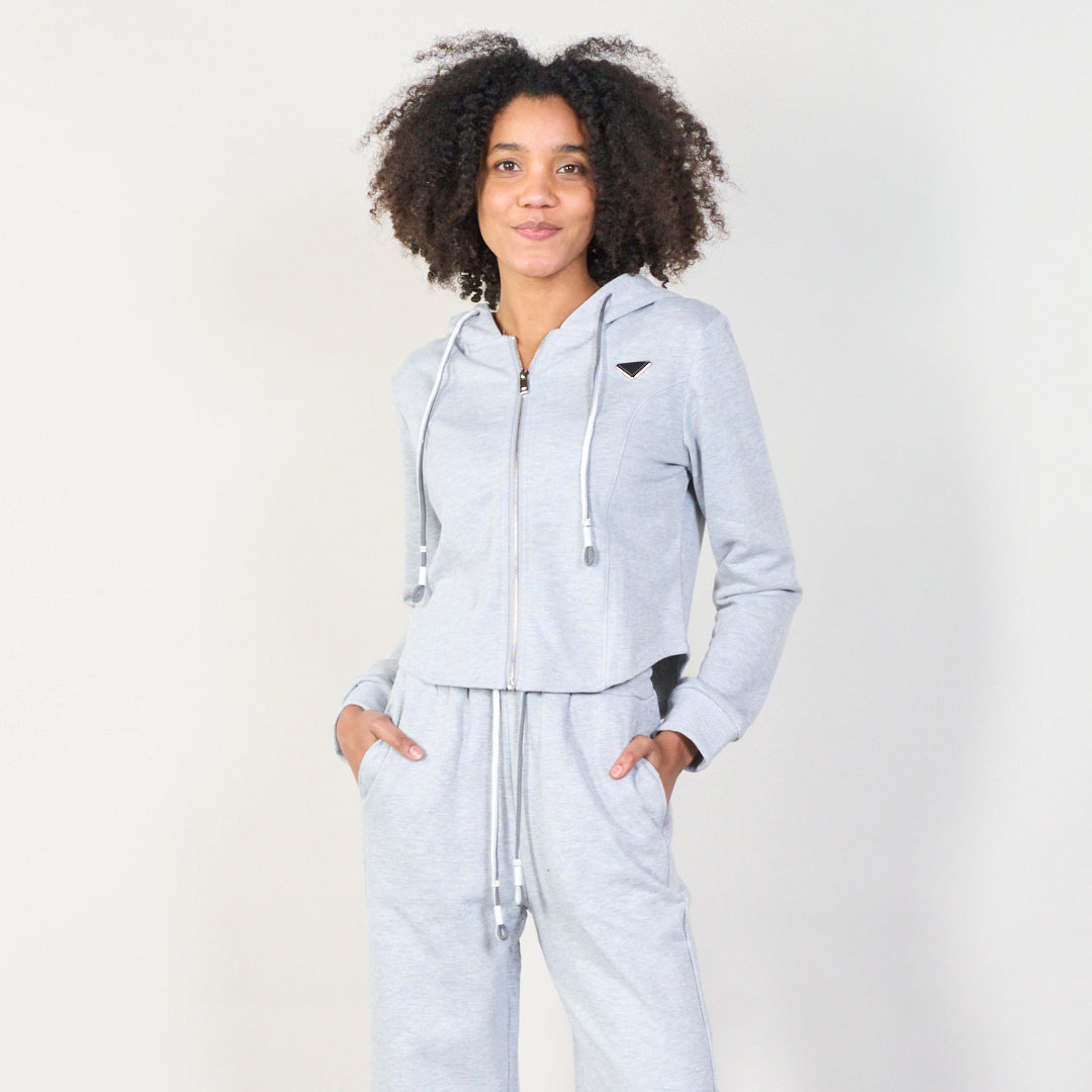 Beskåret lynlås hættetrøje og bred-ben jogger sæt engros
