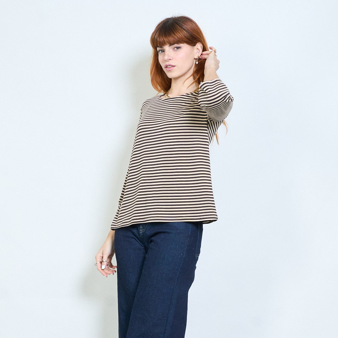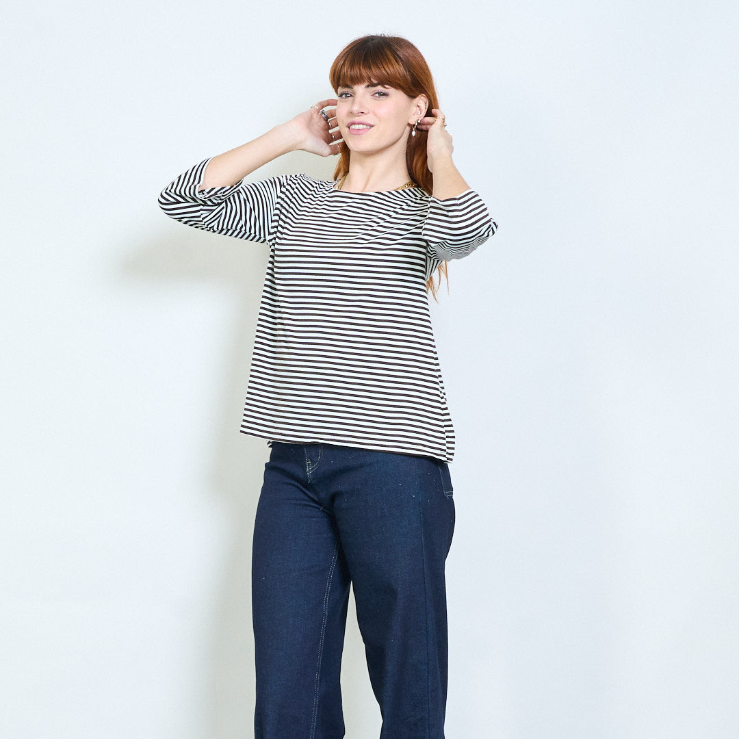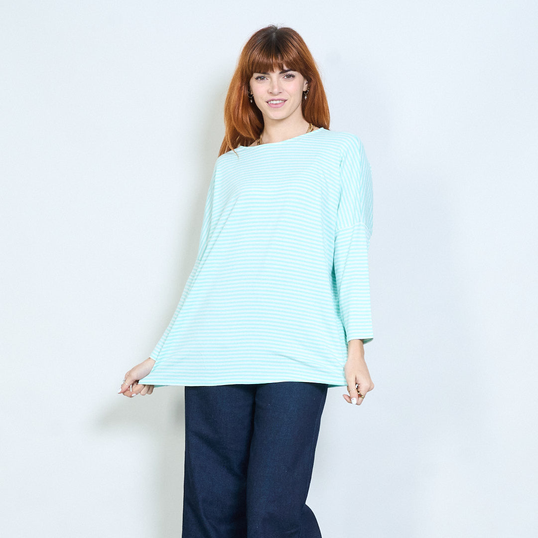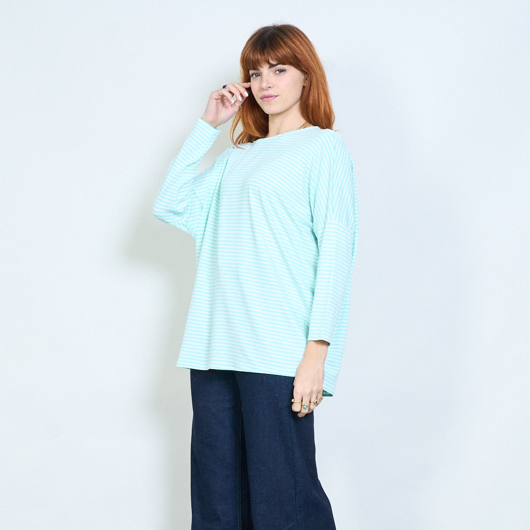 Stribet overdimensioneret langline bådhals top engros