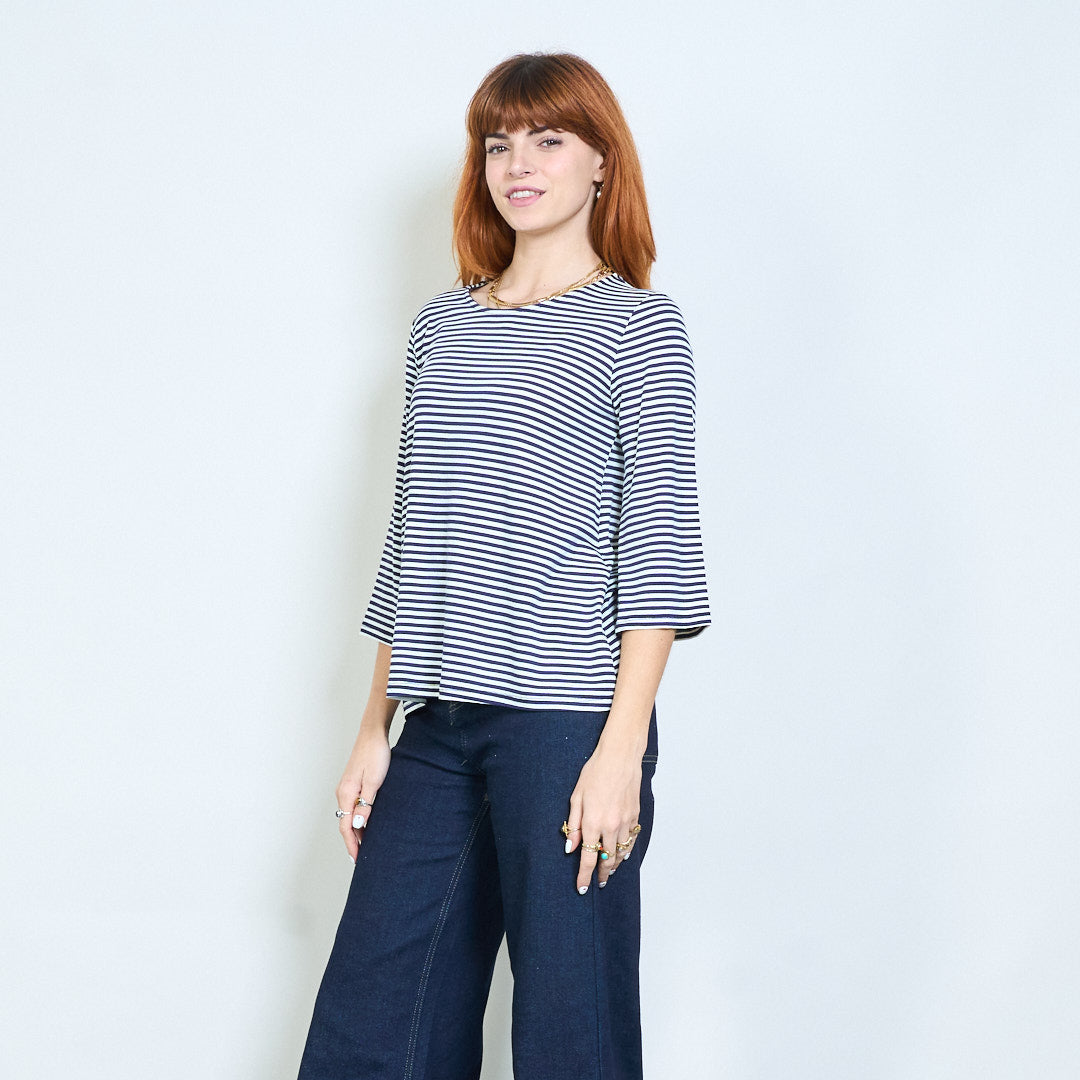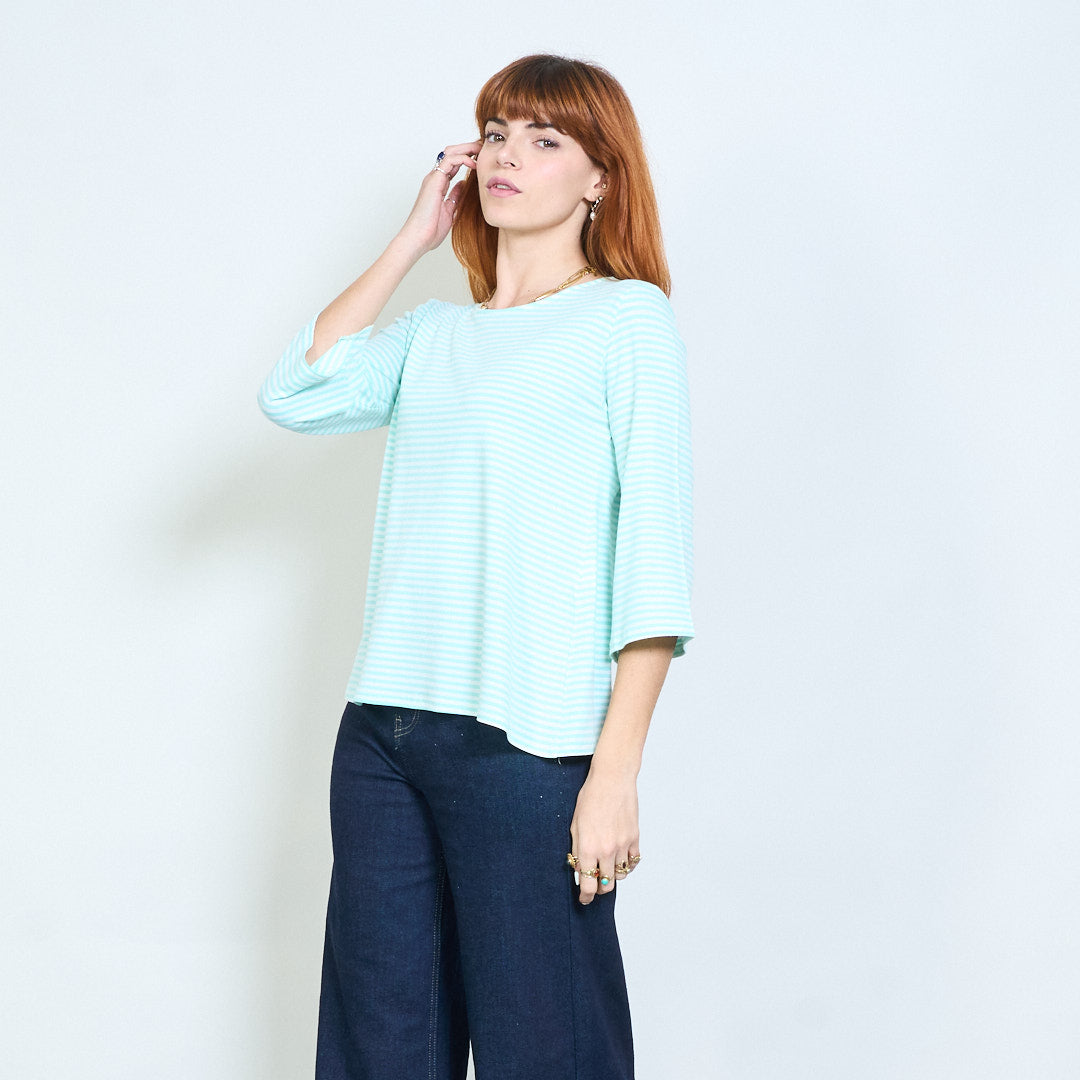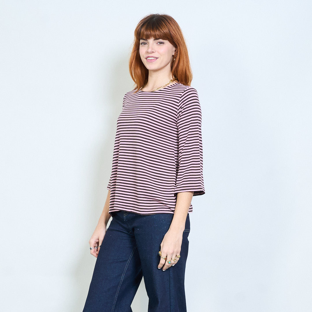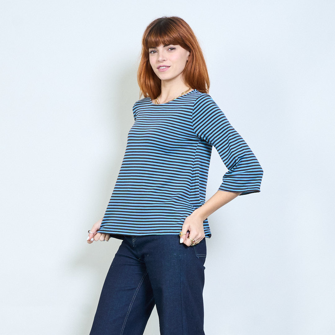 Stribet overdimensioneret langline bådhals top engros