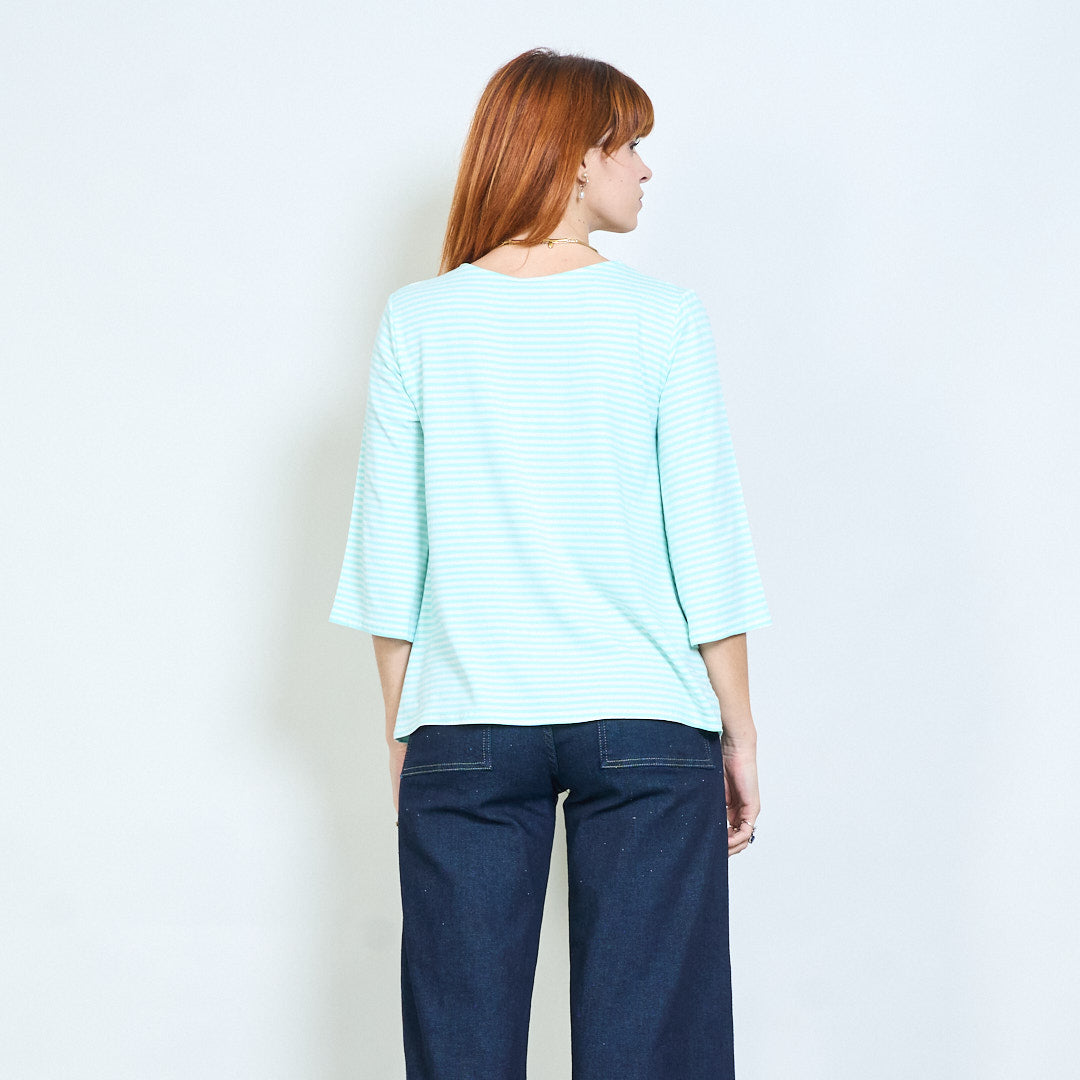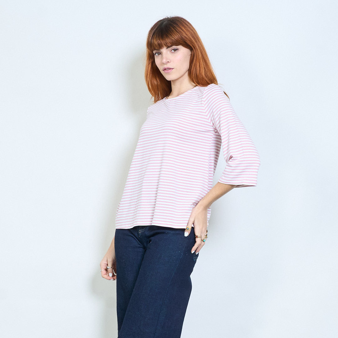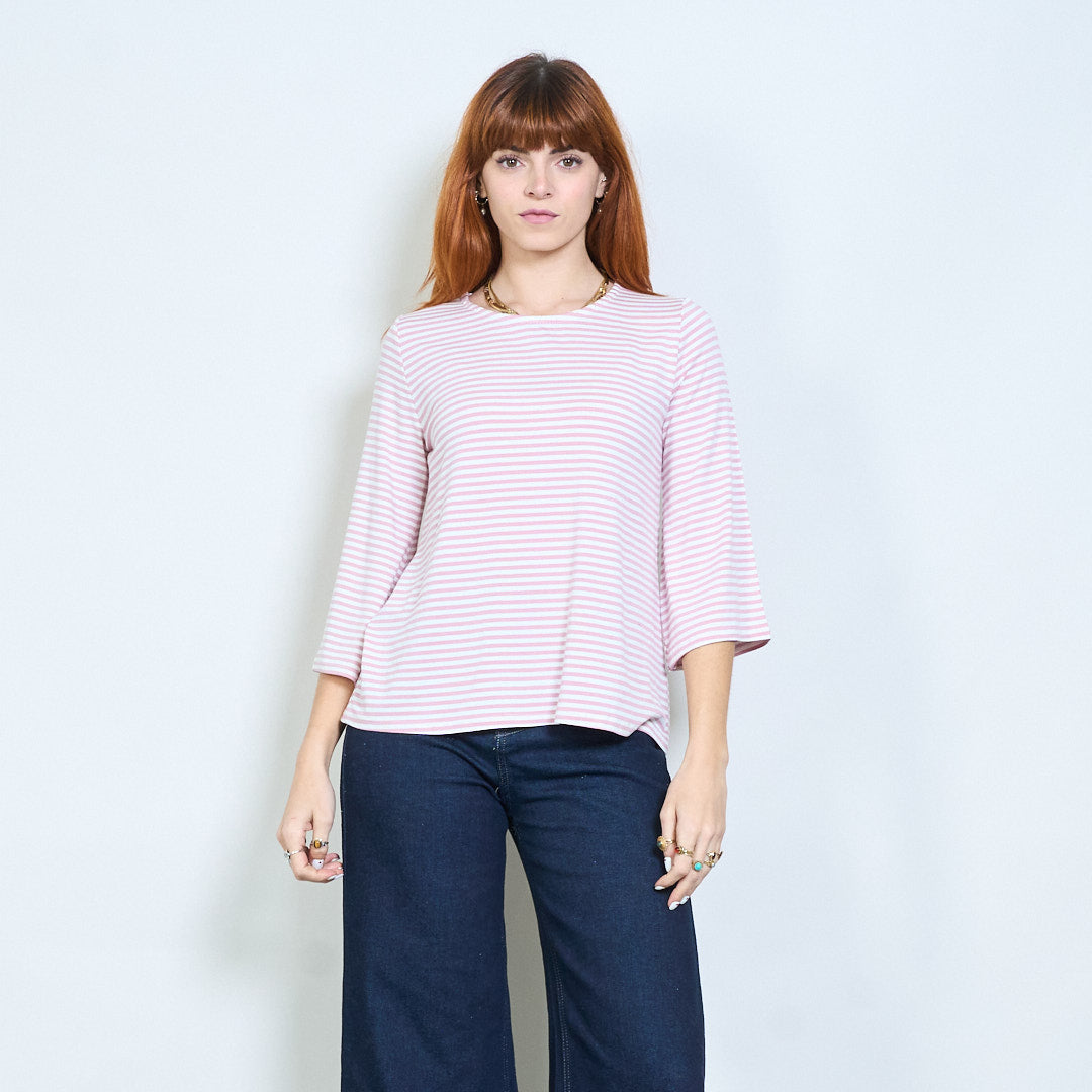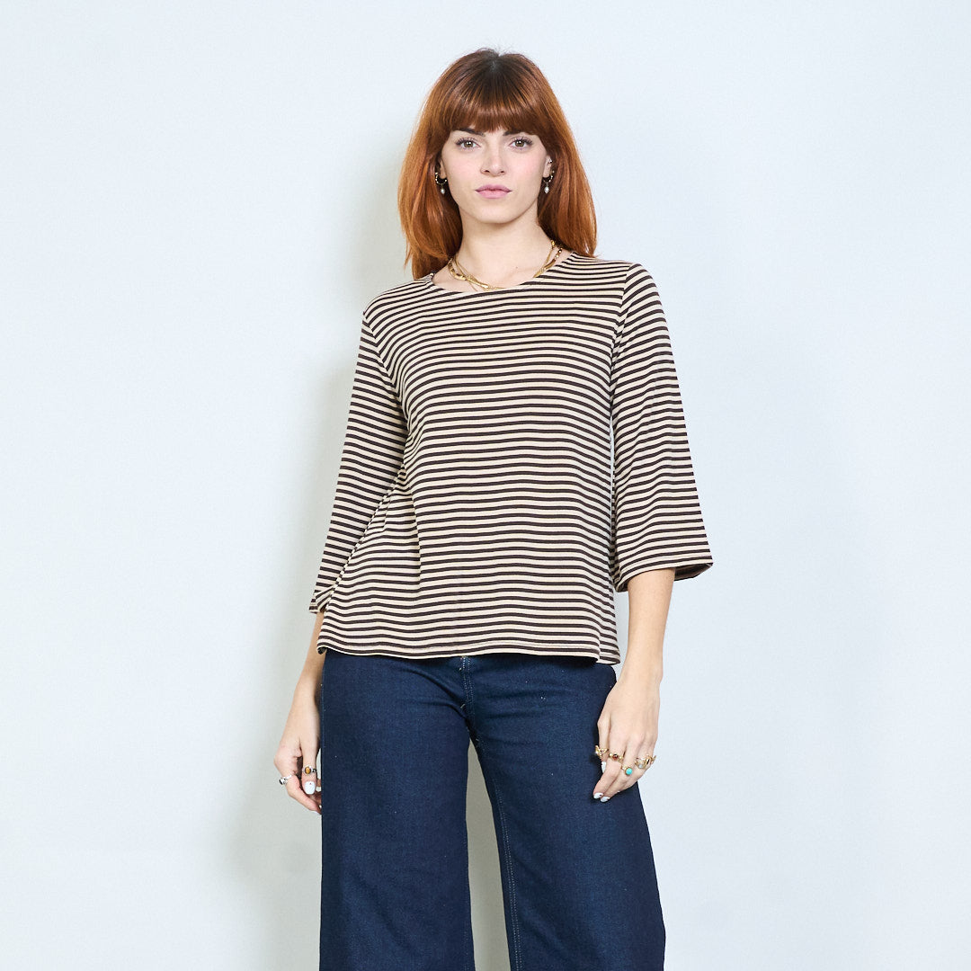 Stribet overdimensioneret langline bådhals top engros