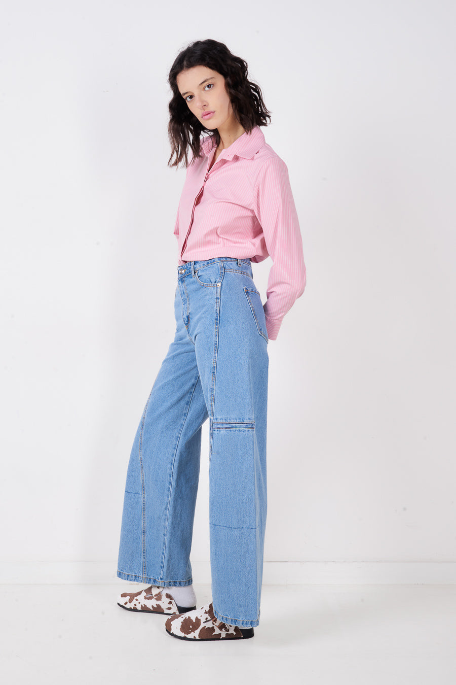 Brede ben panel detalje denim jeans engros