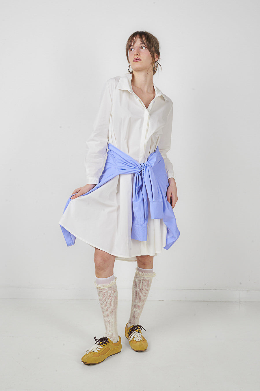 Oversized krave knap front skjortekjole engros