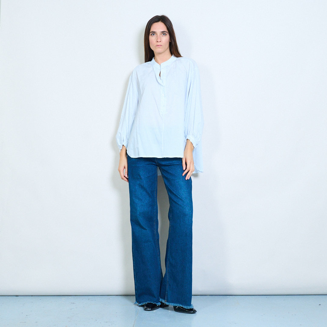 Kontrolleret overdimensioneret V-Slit halsudskæring bluse engros