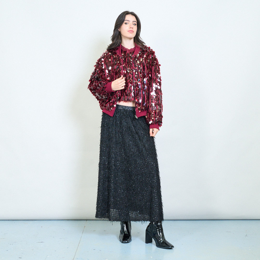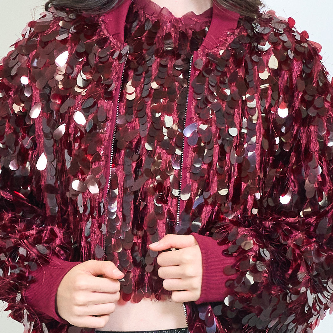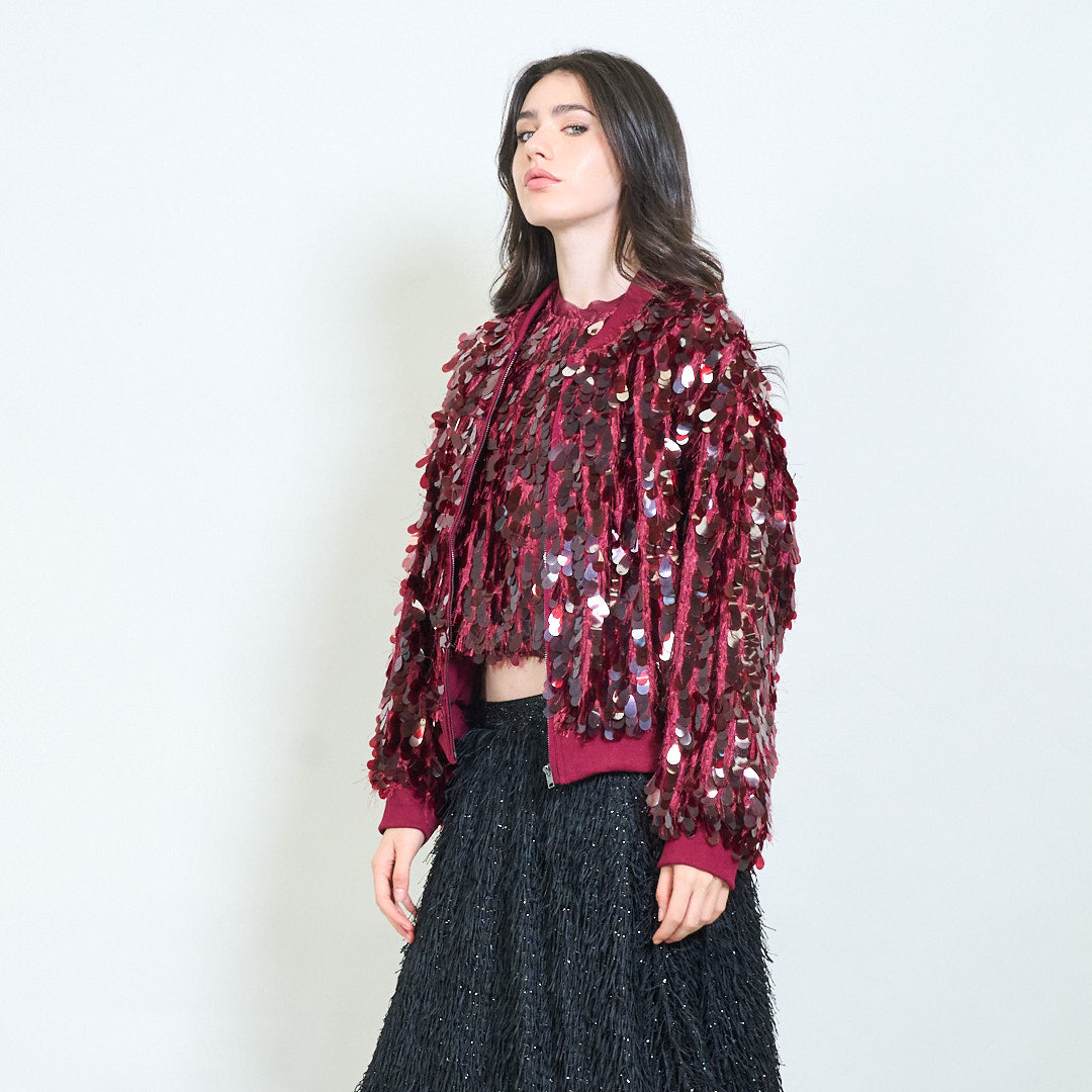 Overdimensioneret paljetjent pyntet bomberjakke engros