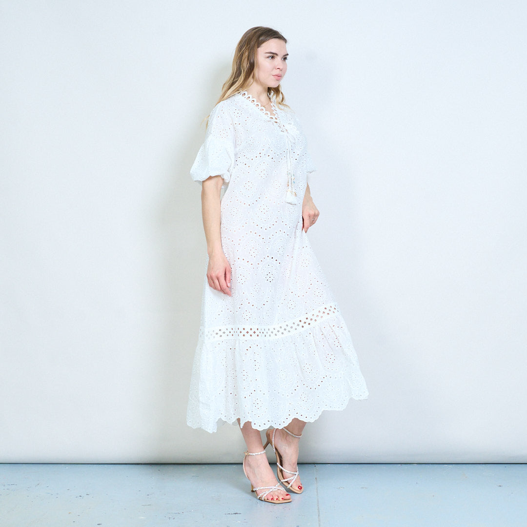 - Dekorativ halsudskæring med snørebånd med løkkede detaljer