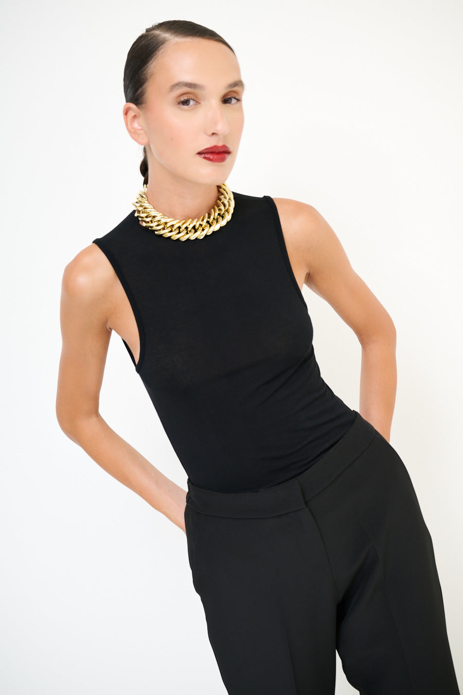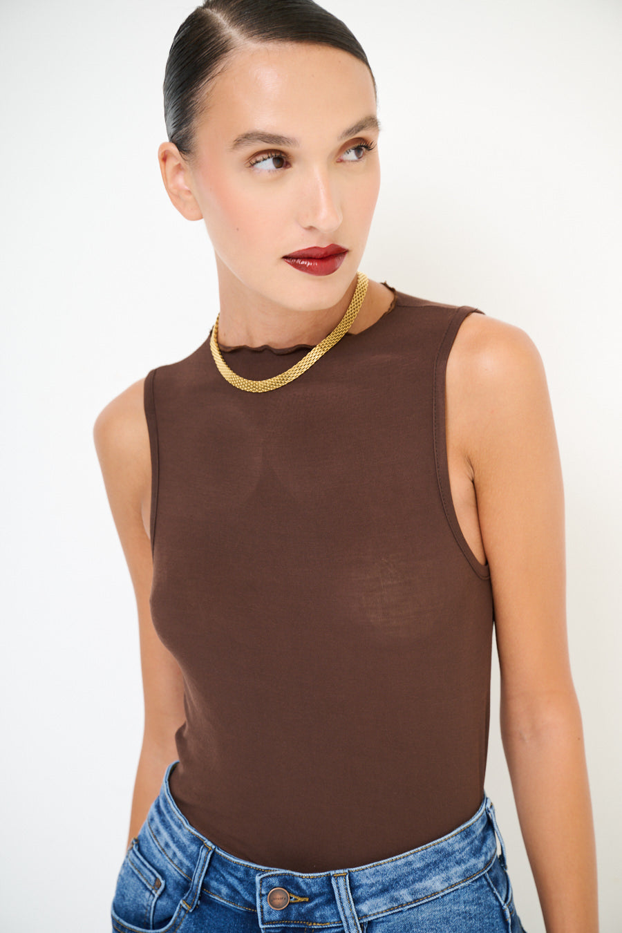 Bølget kant mock hals ærmeløs top engros