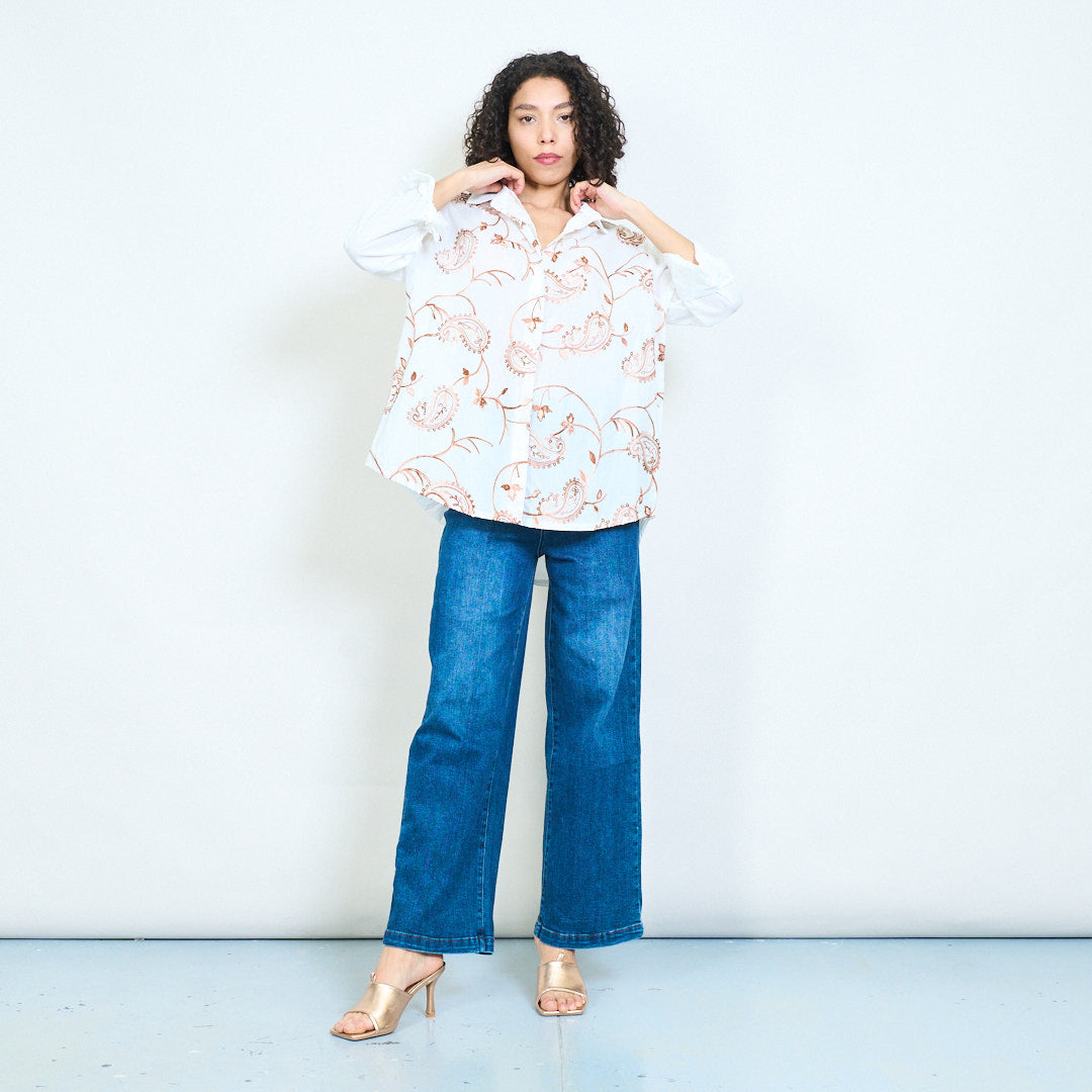 Paisley print knap front langærmet skjorte bluse engros