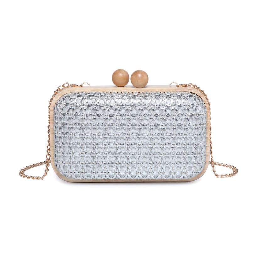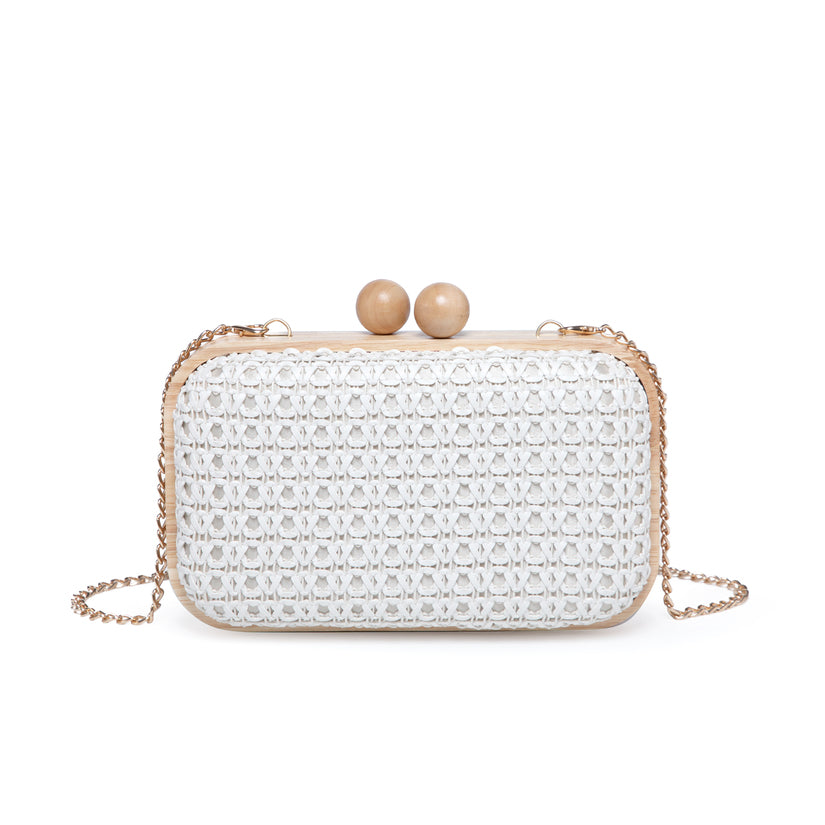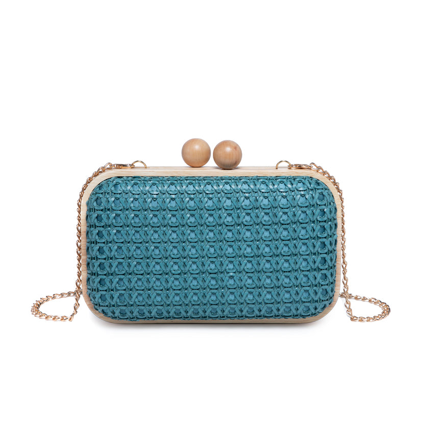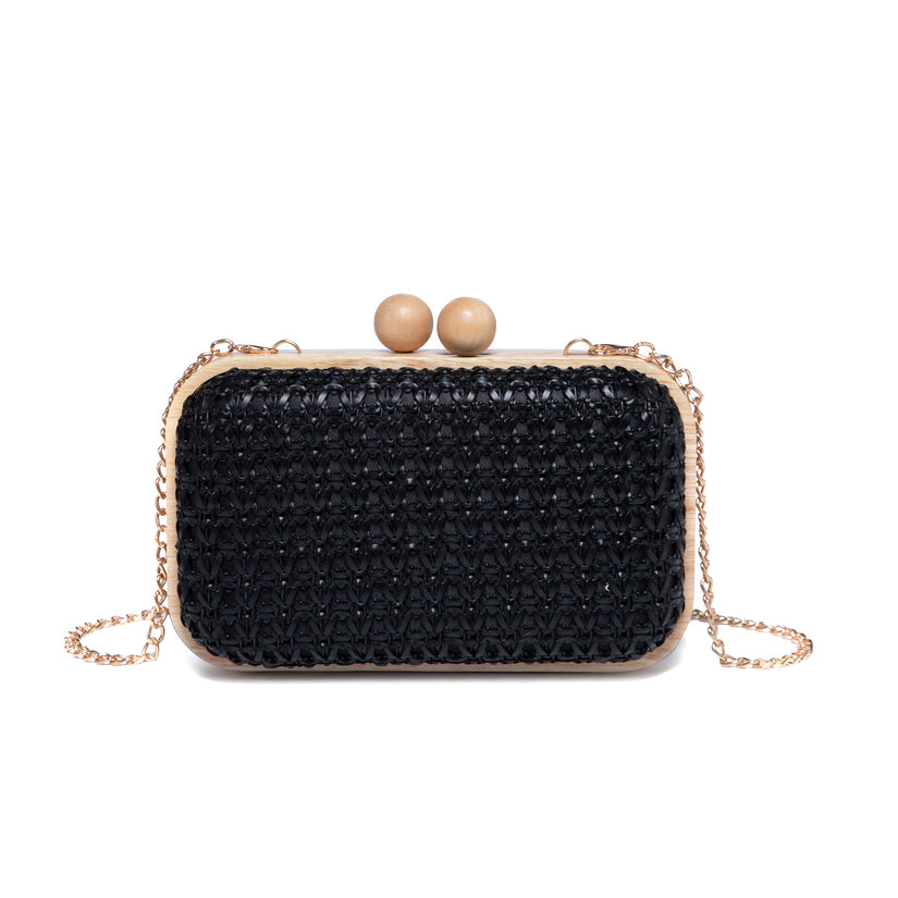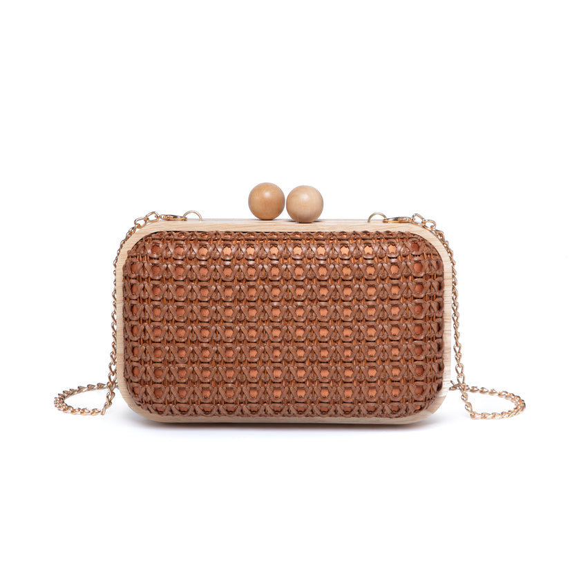 - Rektangulær kobling med håndvævet raffia front til en elegant kunsthåndværk