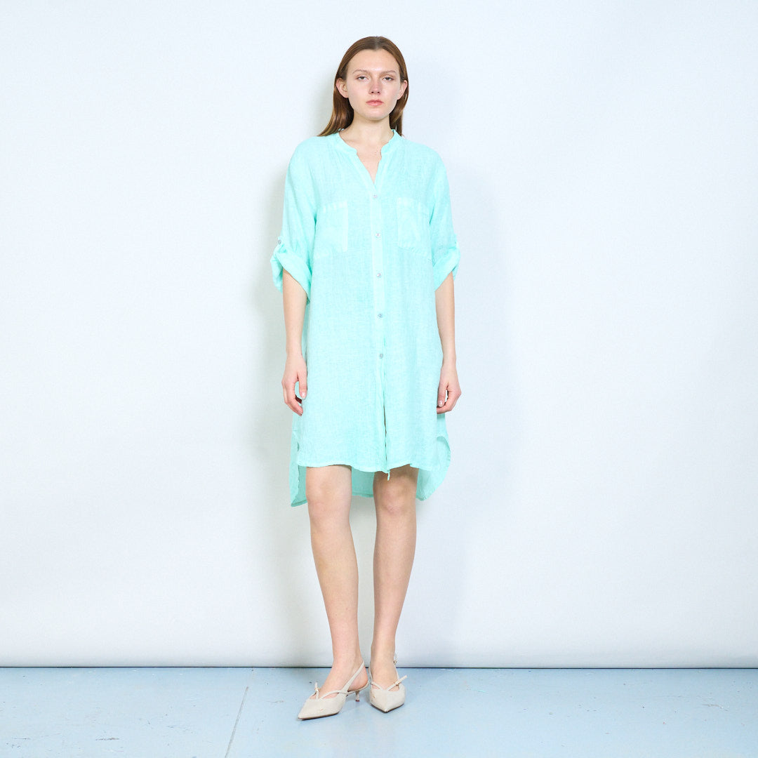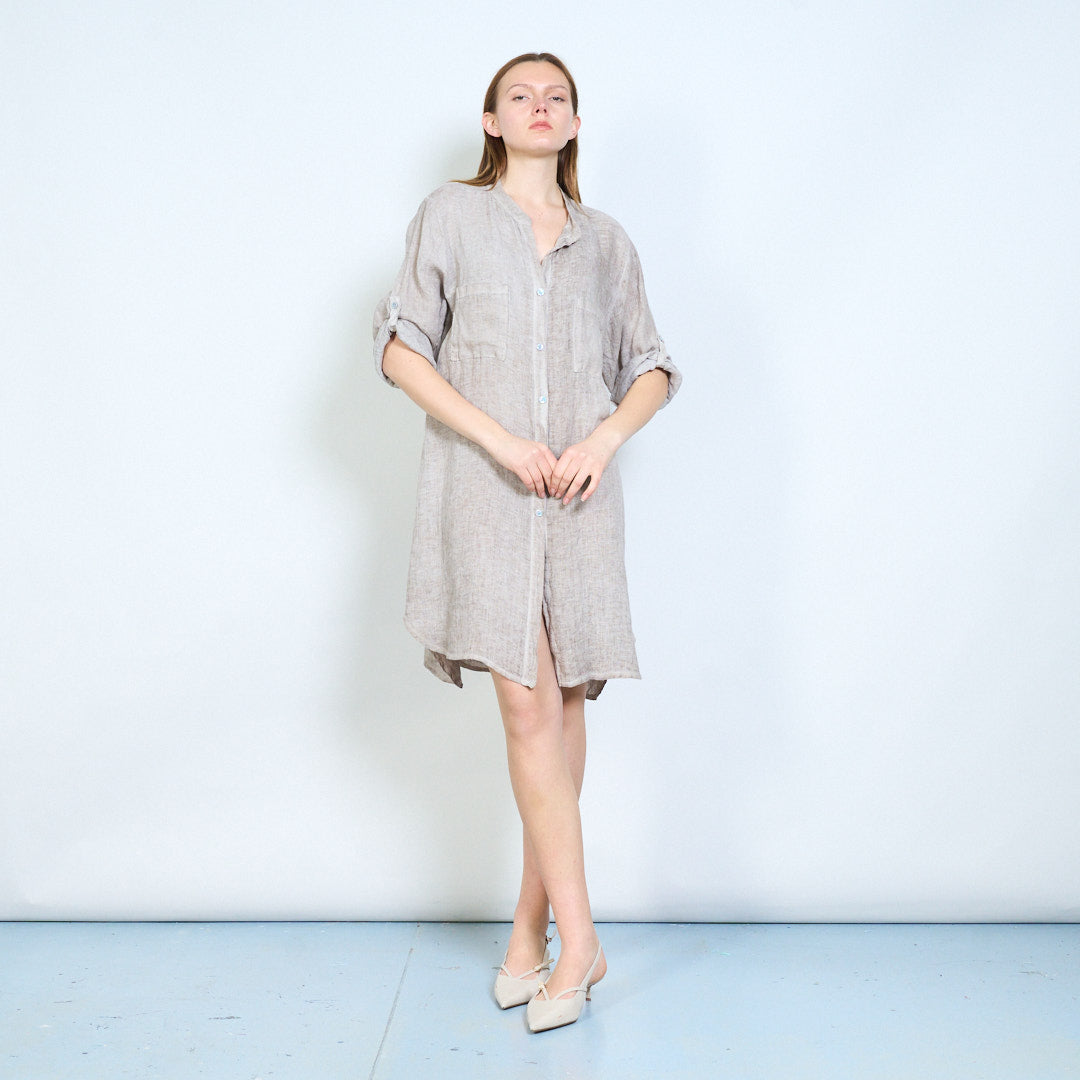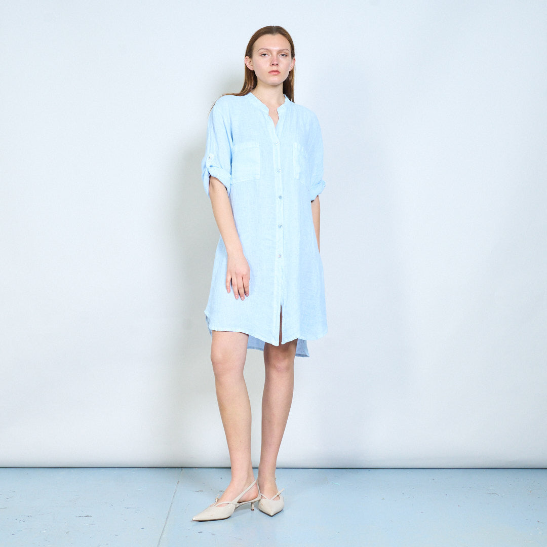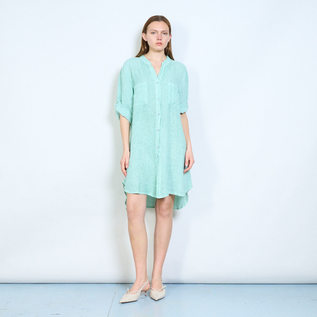 Broderet ryg detalje linned skjorte med afslappede lommer engros