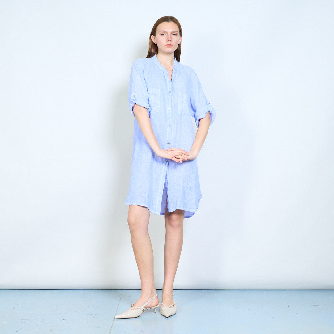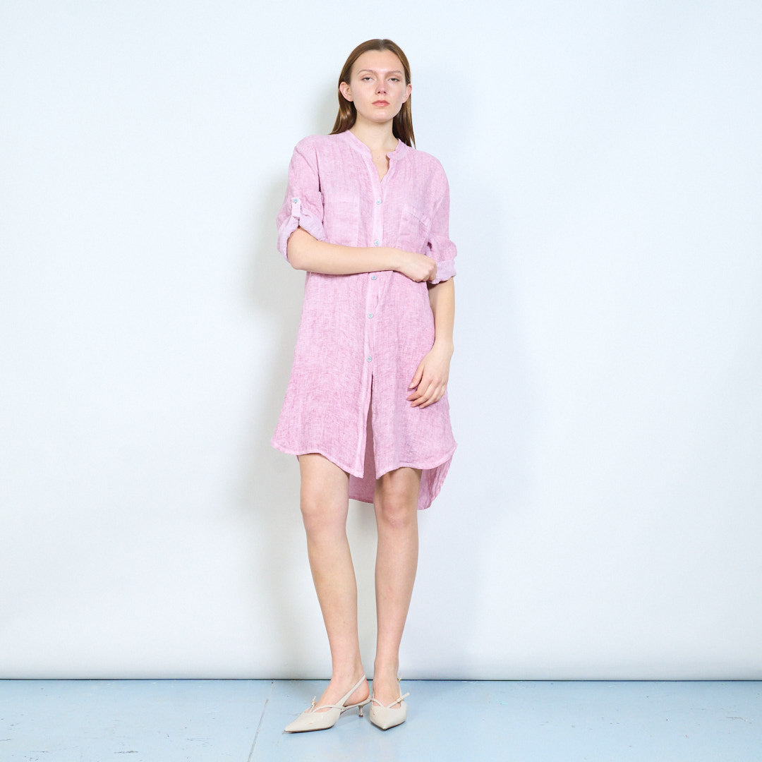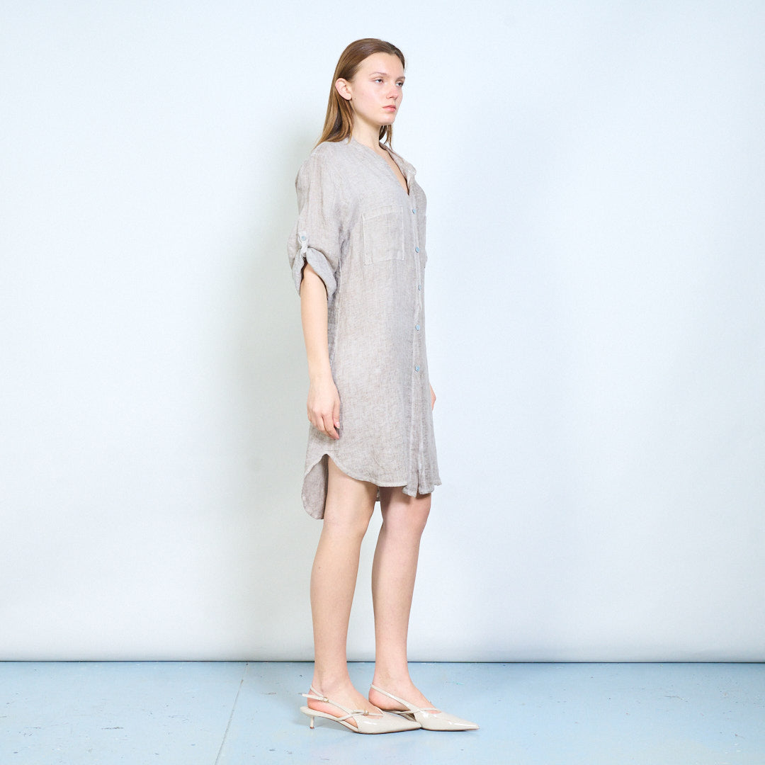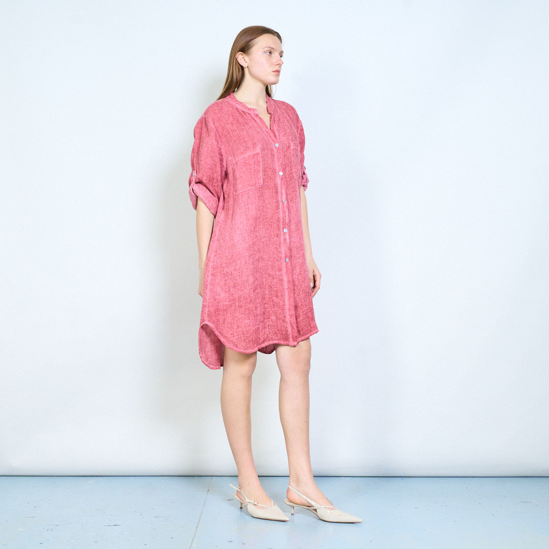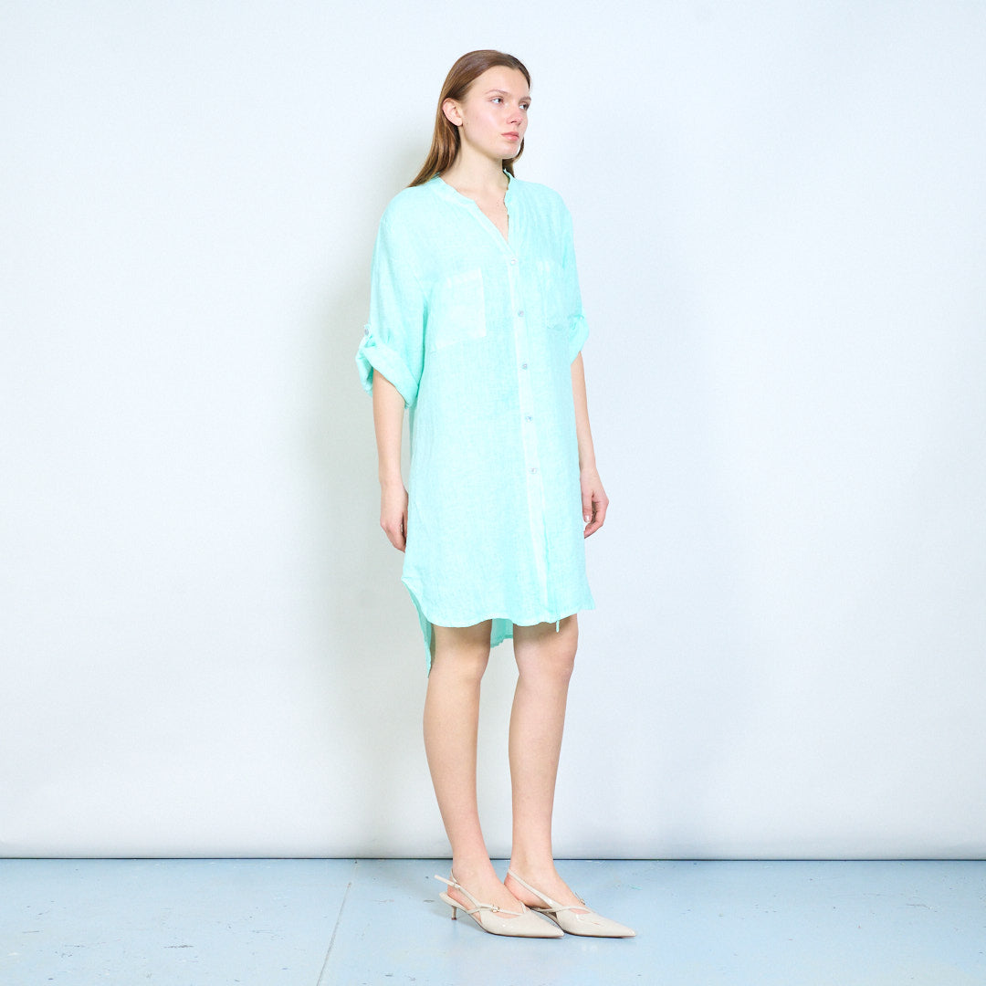 Broderet ryg detalje linned skjorte med afslappede lommer engros