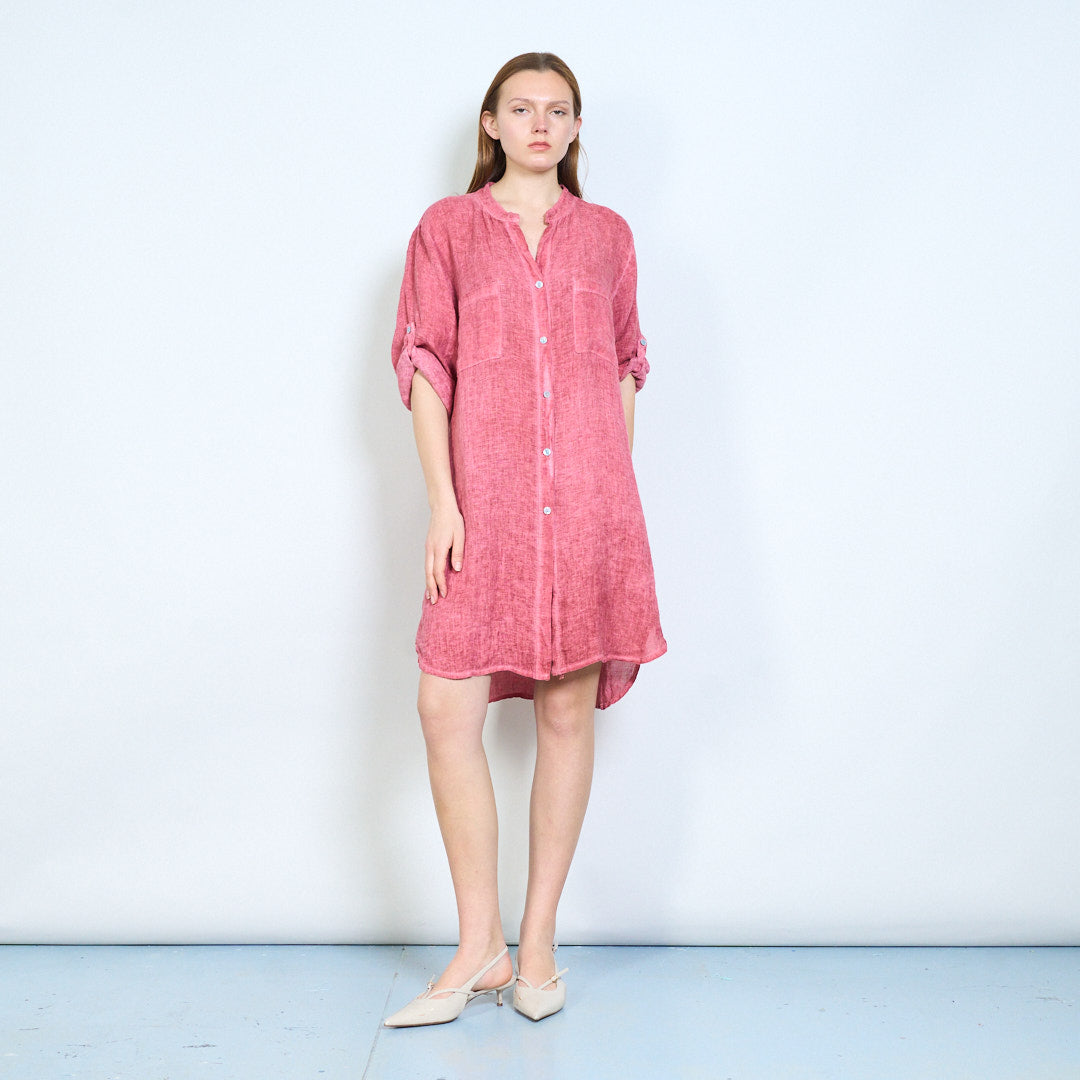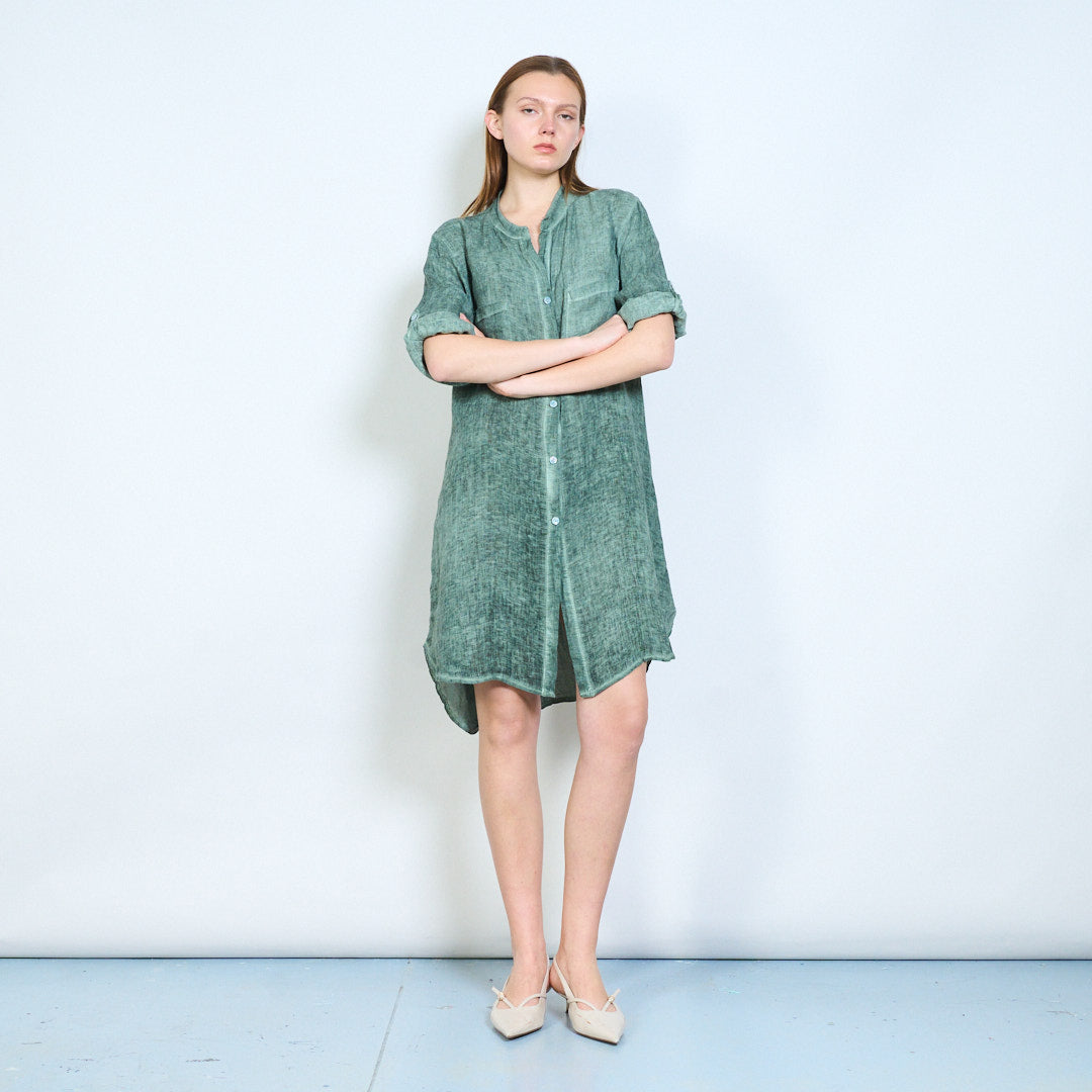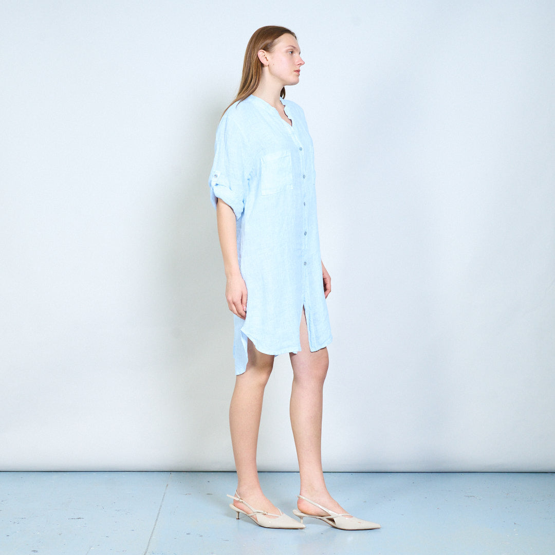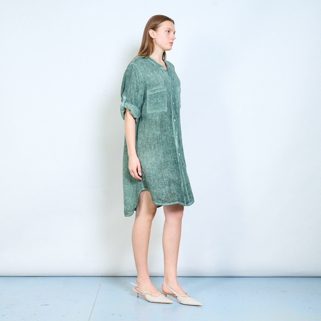 Broderet ryg detalje linned skjorte med afslappede lommer engros