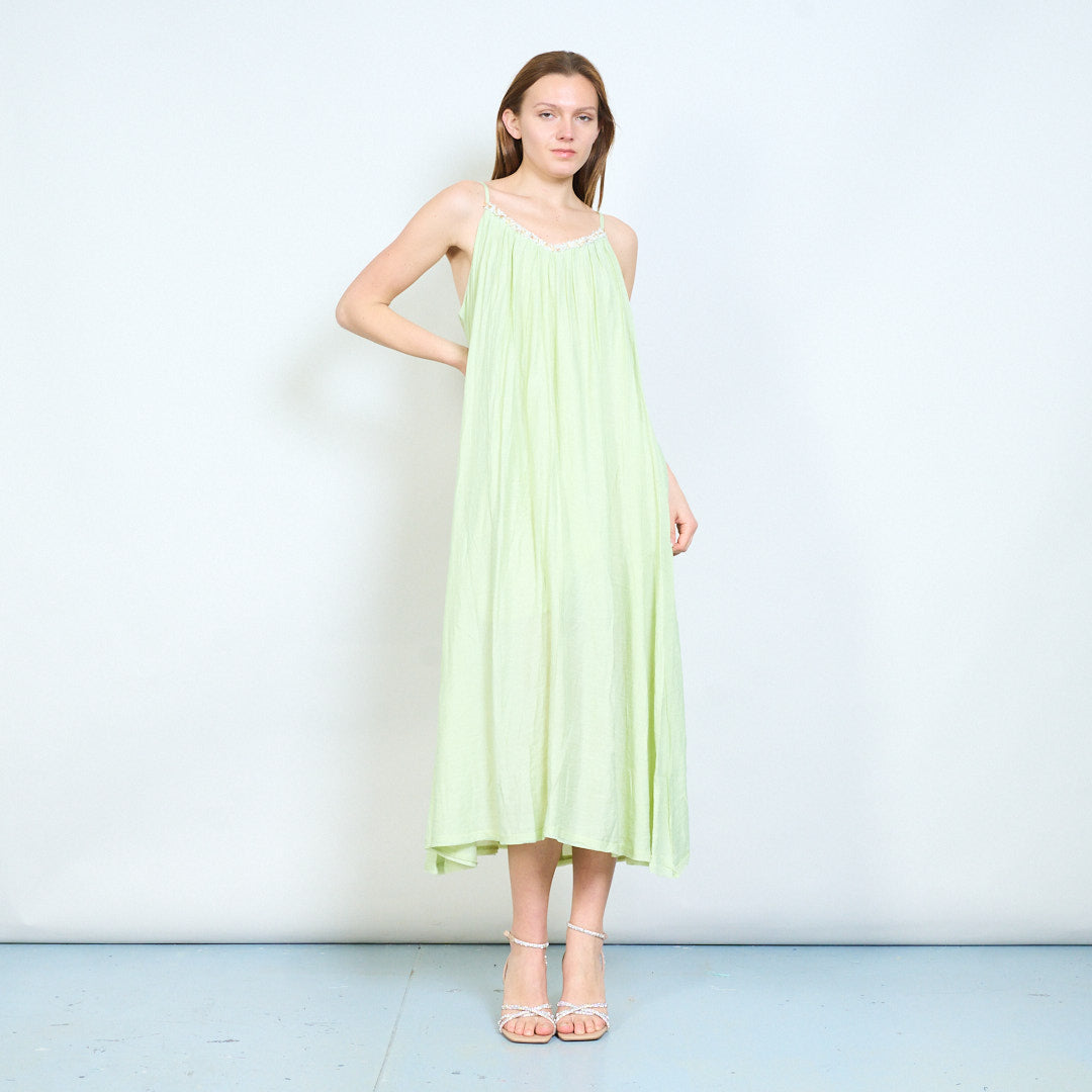 Flowy udsmykket halsudskæring ærmeløs lang kjole engros