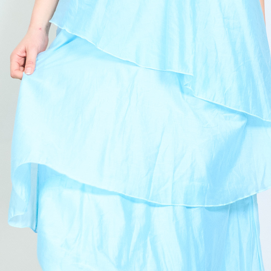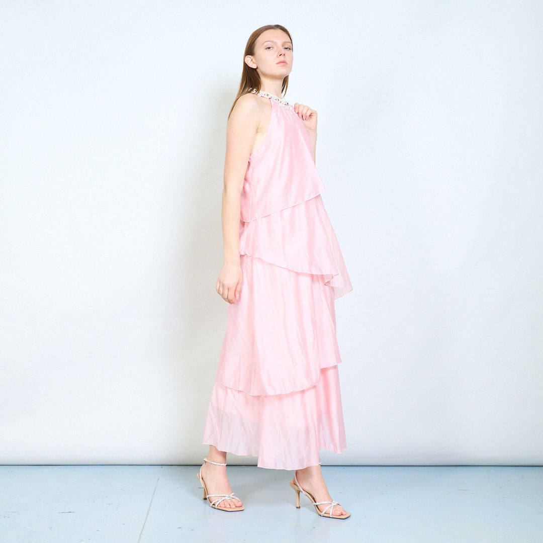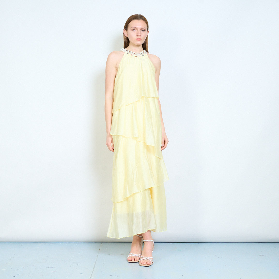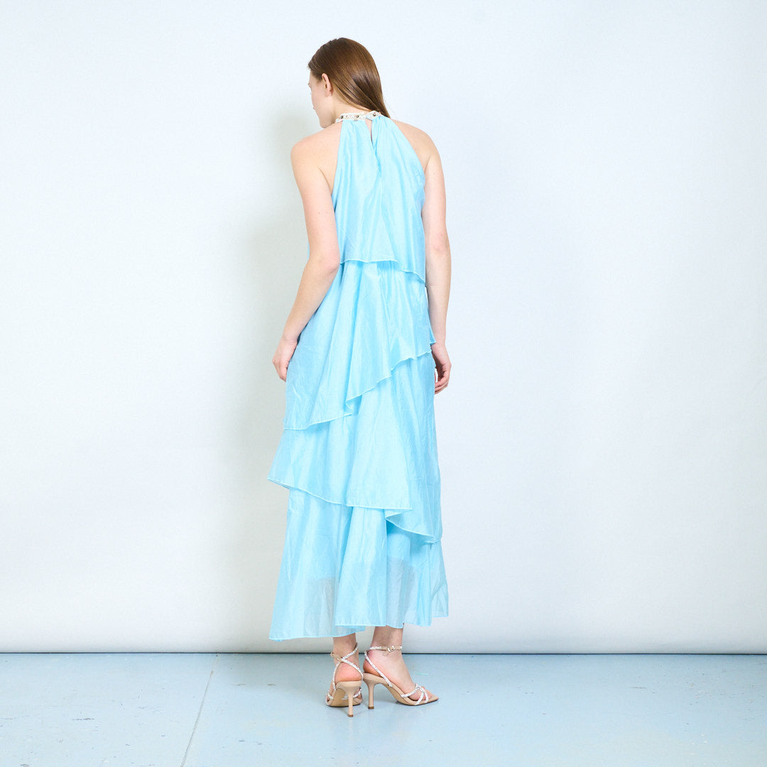 Lagdelt flydende udsmykket halsudskæring ærmeløs lang kjole engros