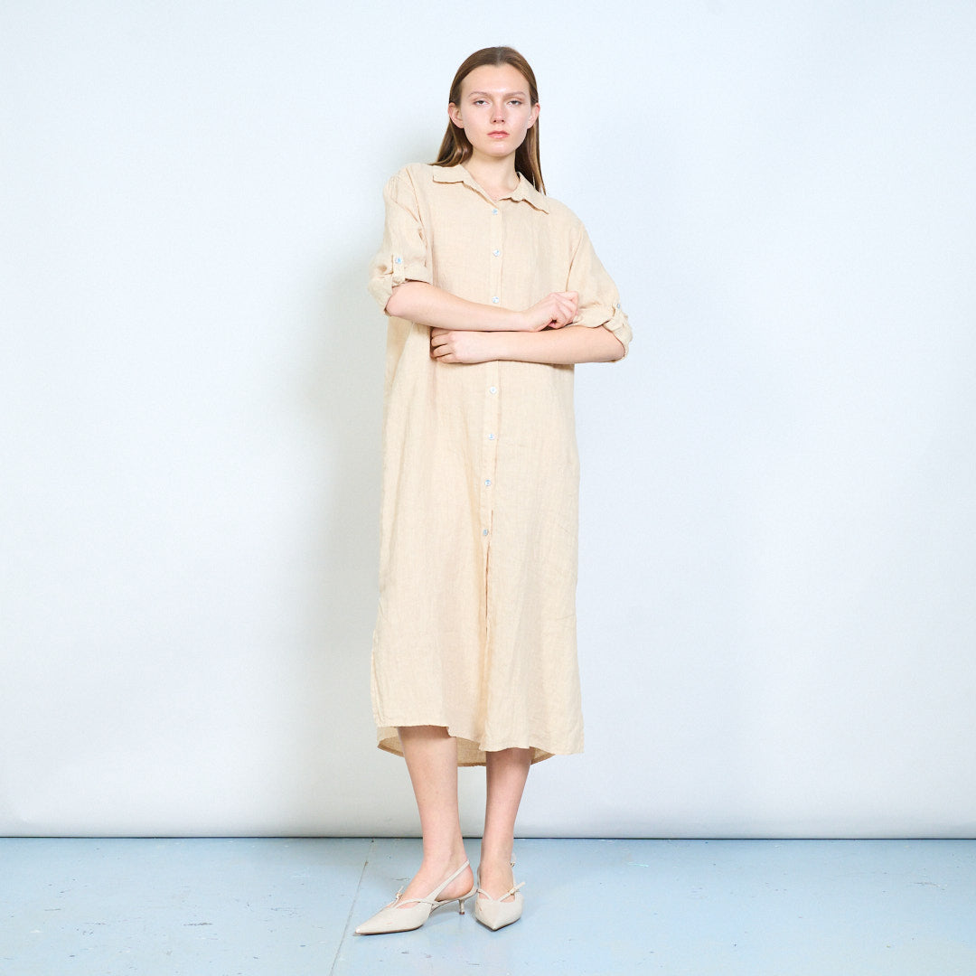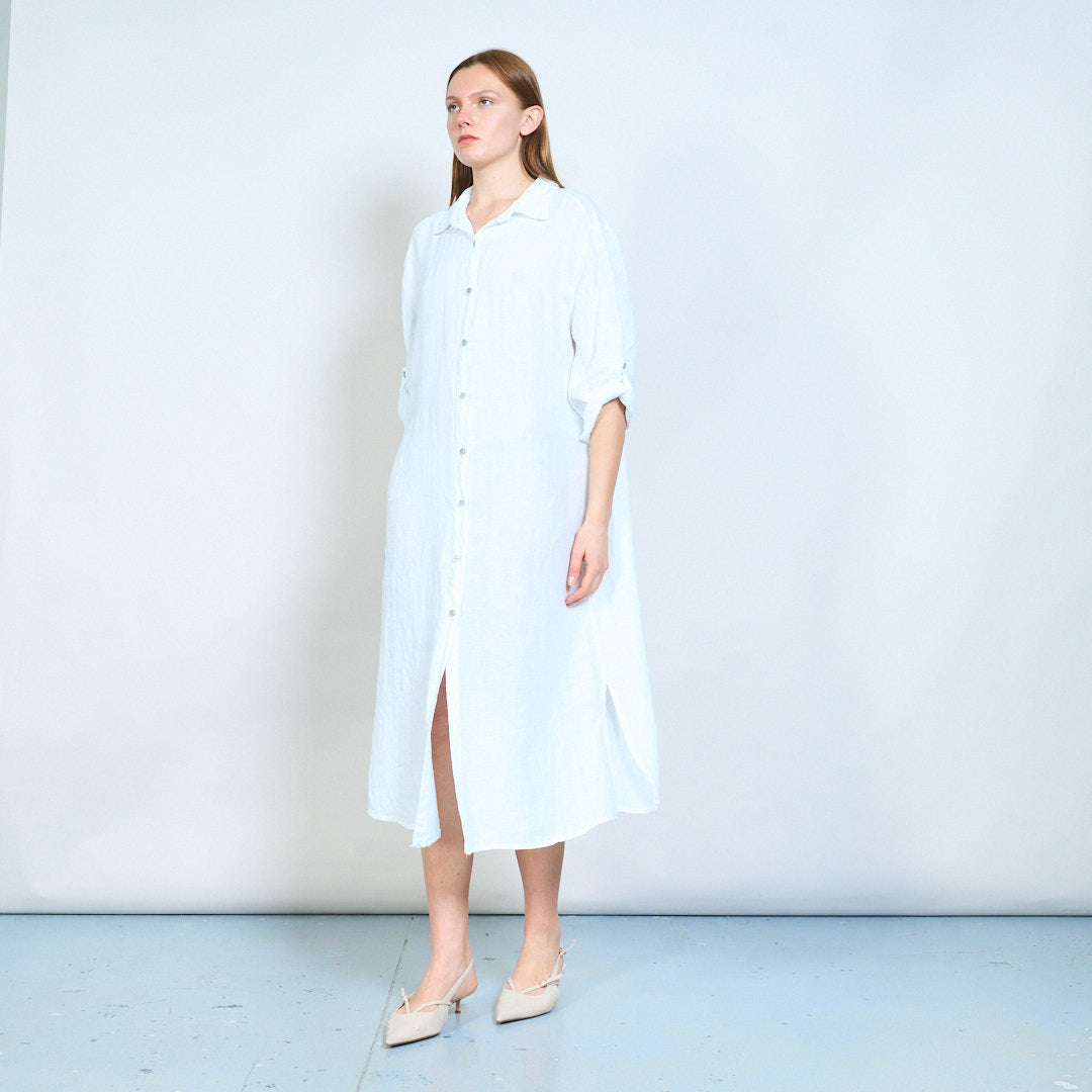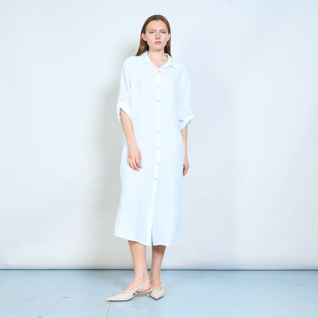 Lang skjorte i blød draperet hør med oprulningsærmer engros