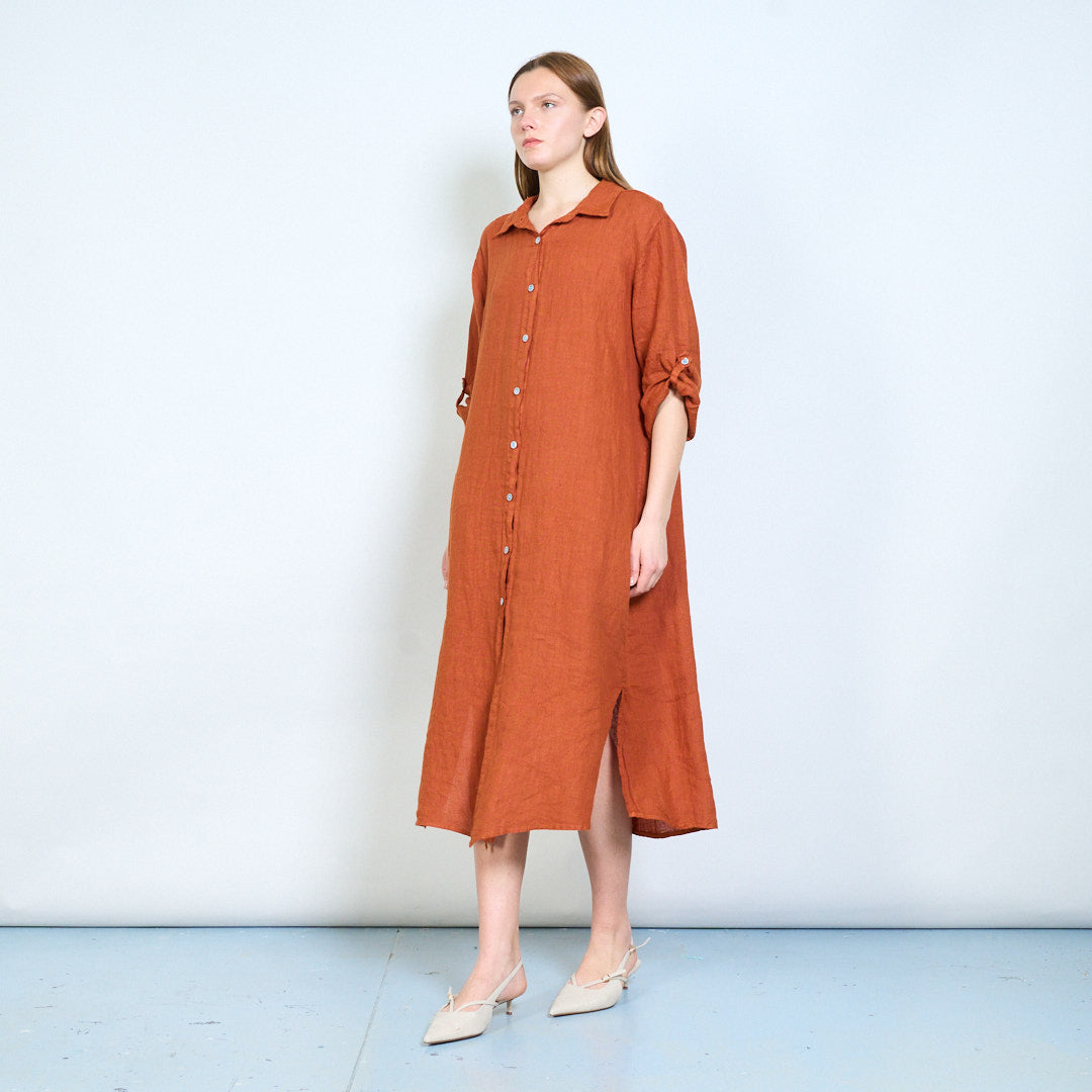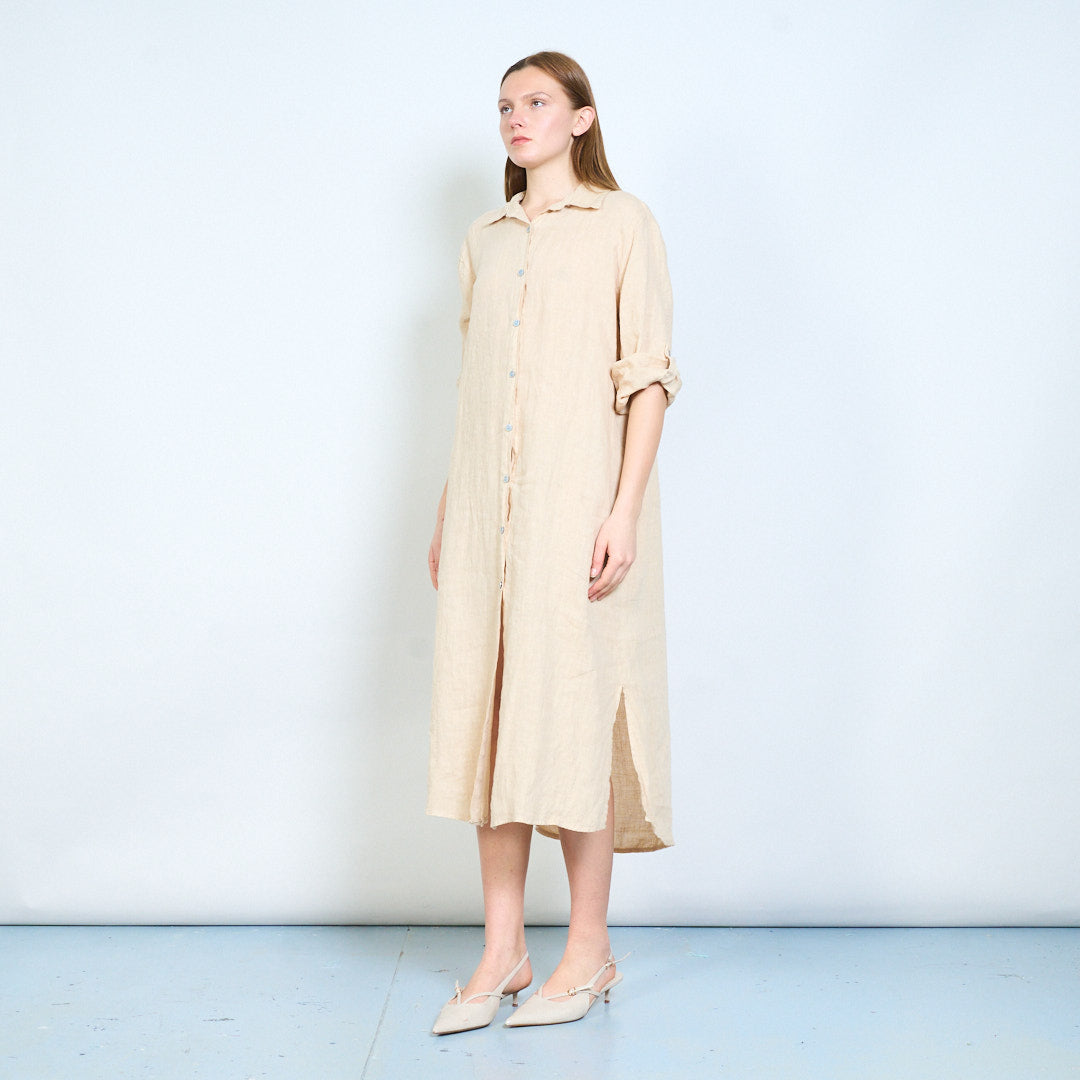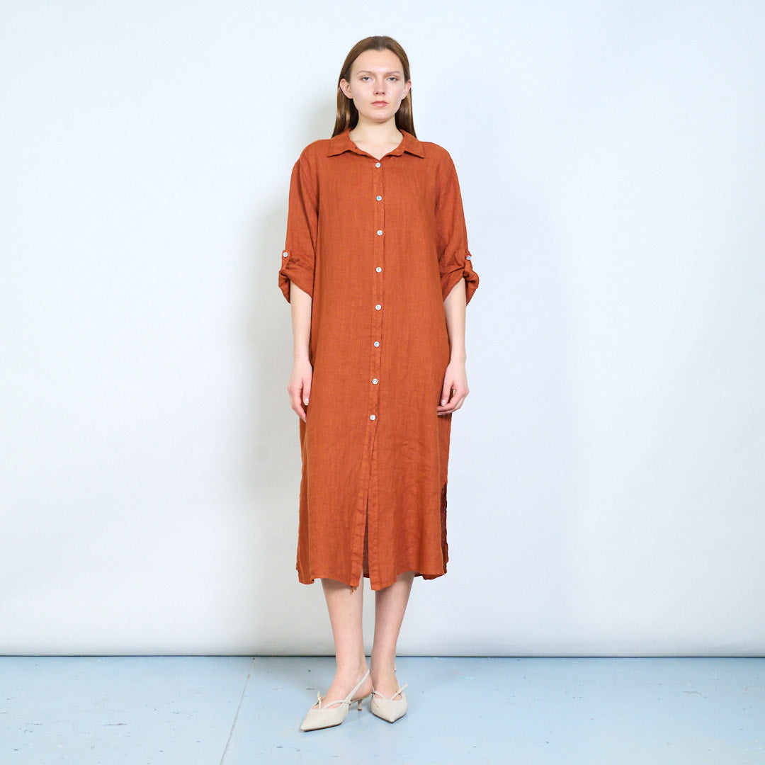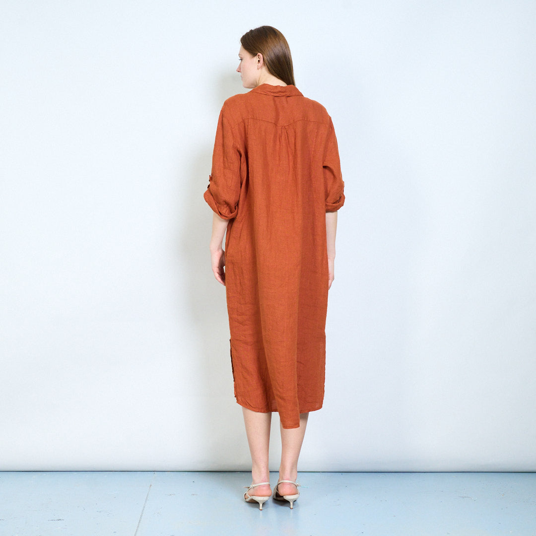 Lang skjorte i blød draperet hør med oprulningsærmer engros