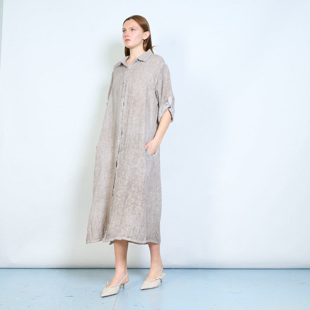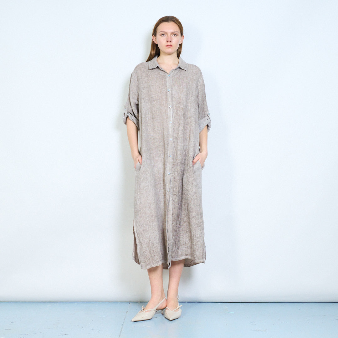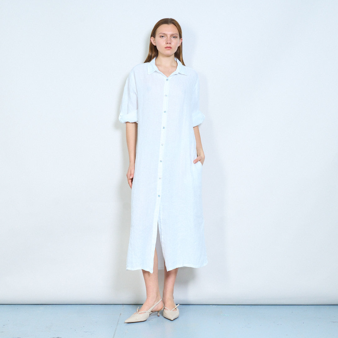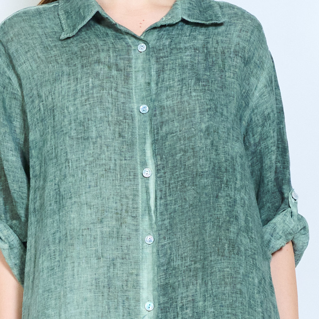 Luftig langline skjorte i hør med opsmøgede ærmer engros