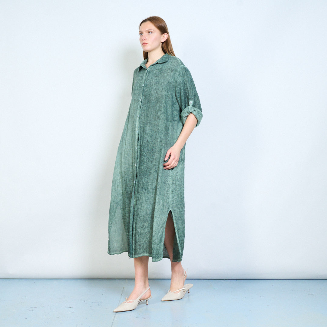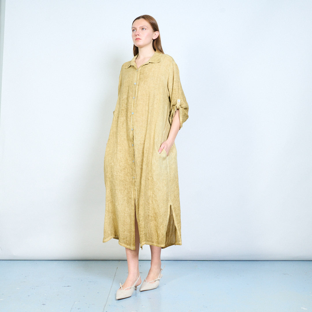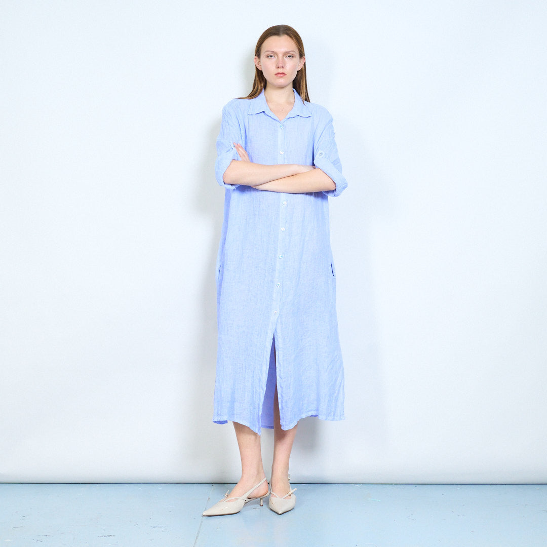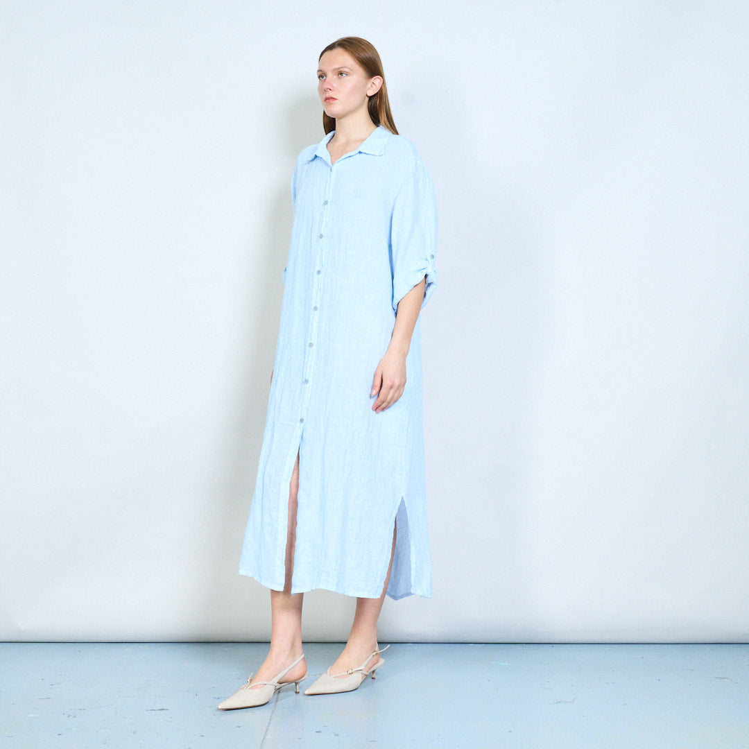 Luftig langline skjorte i hør med opsmøgede ærmer engros