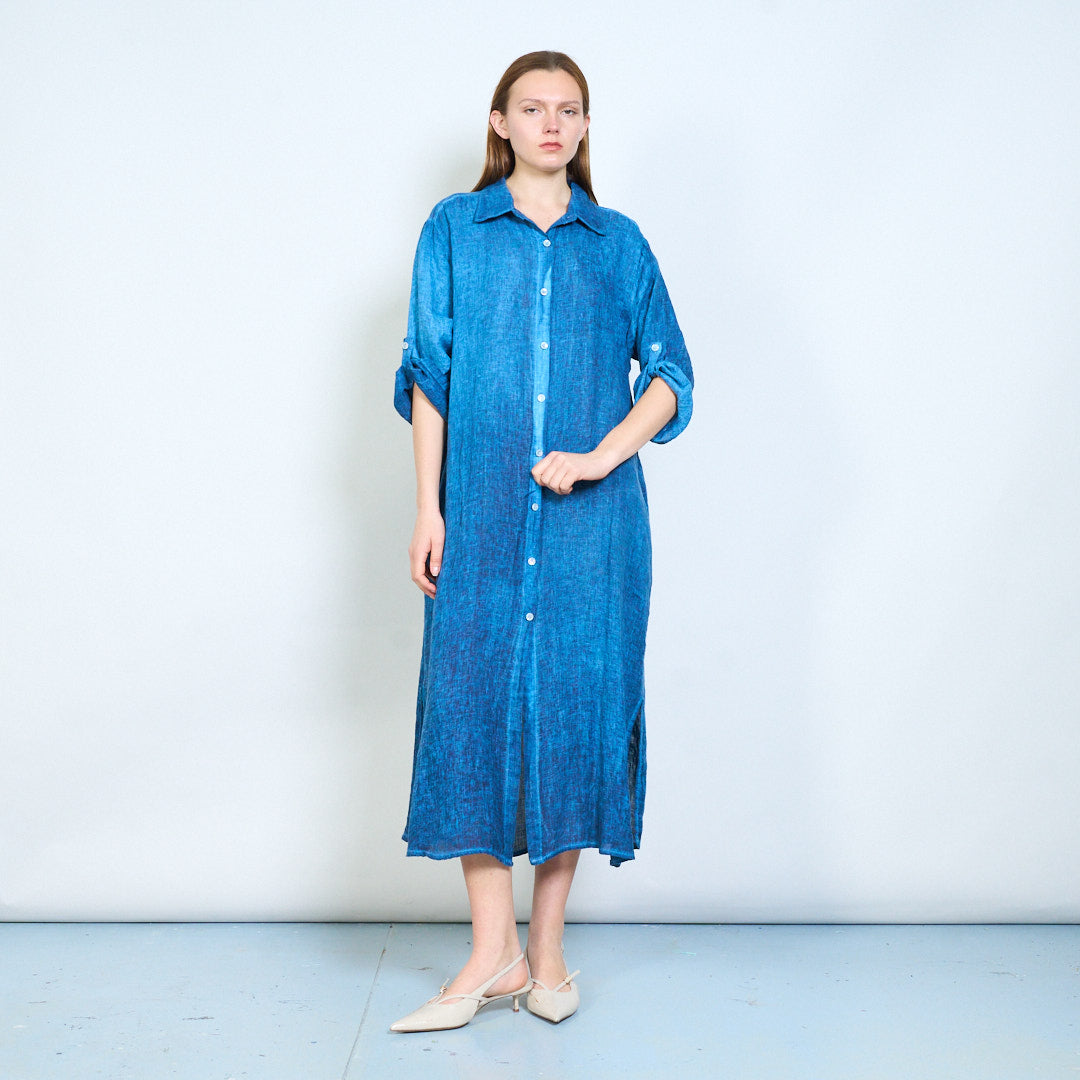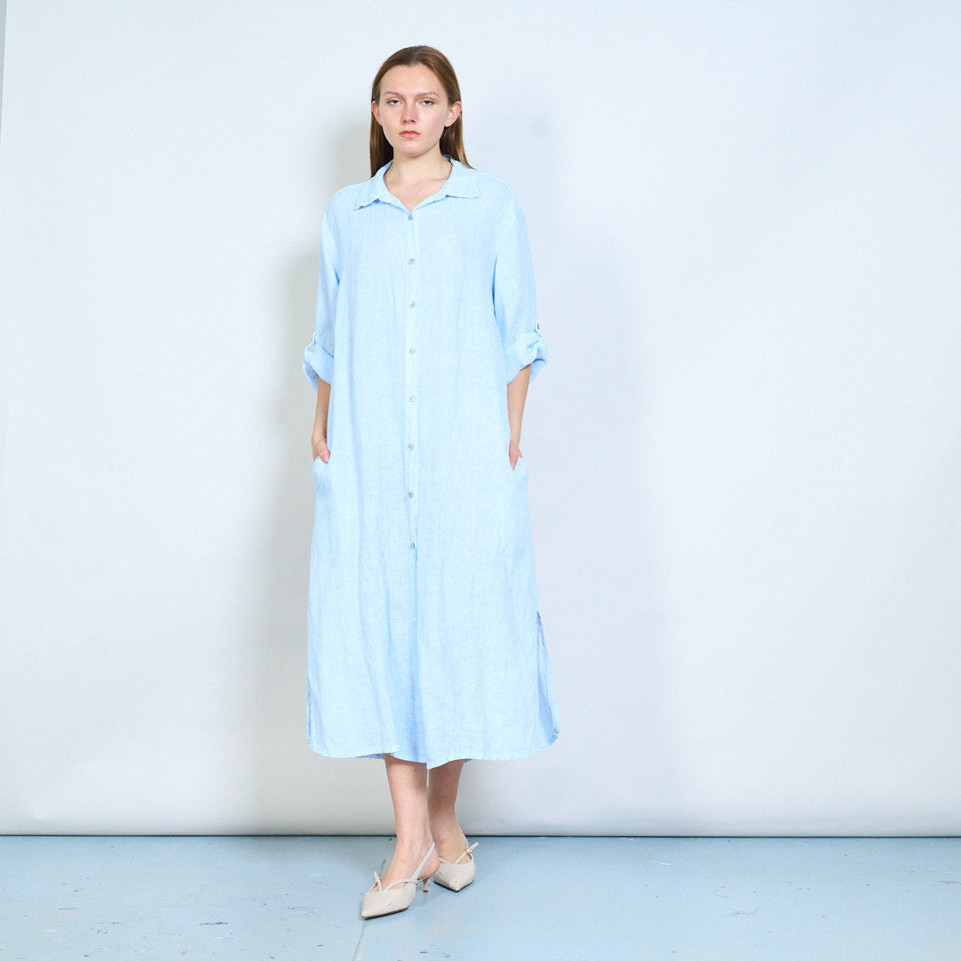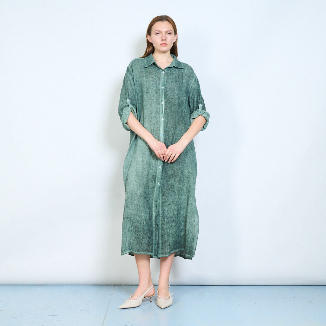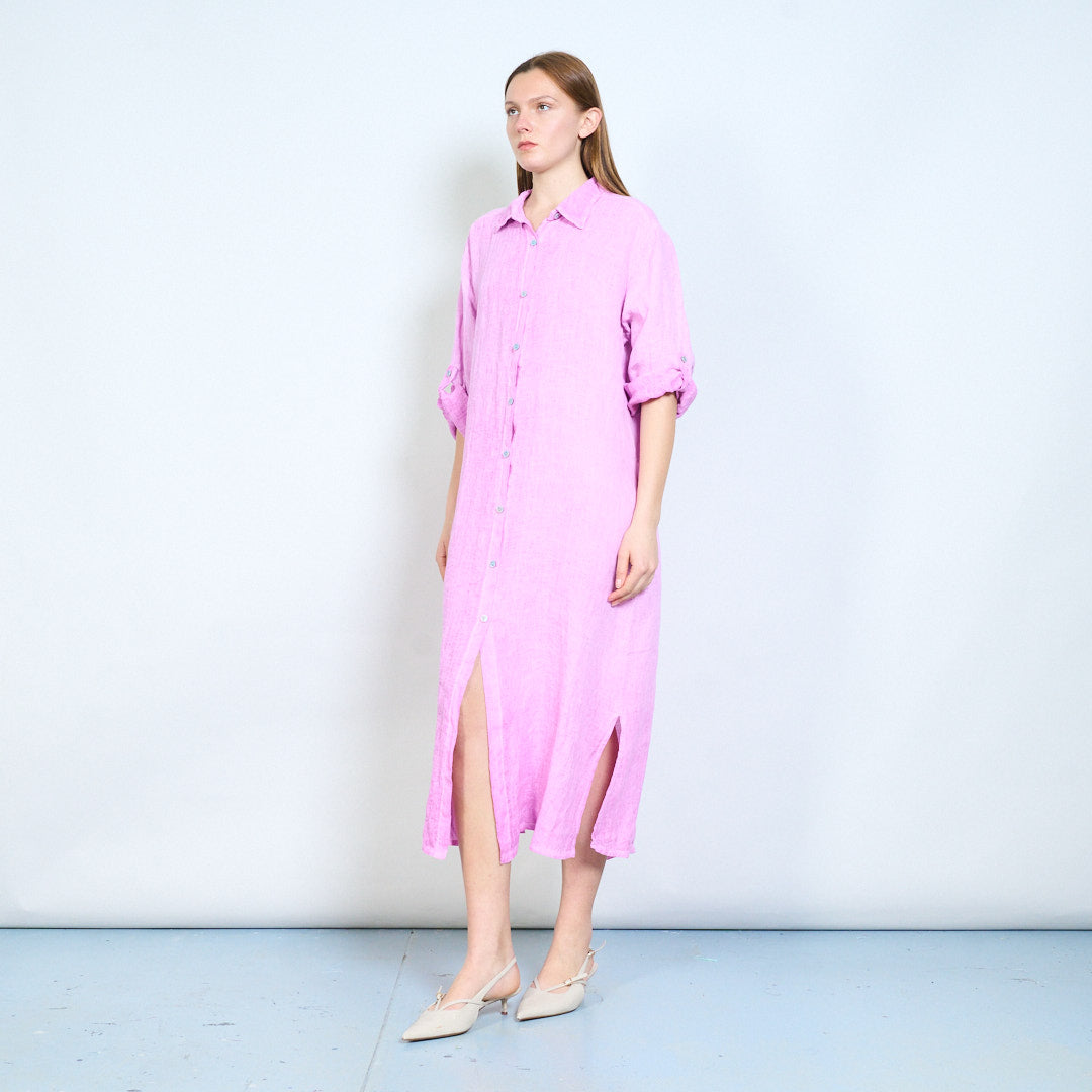Luftig langline skjorte i hør med opsmøgede ærmer engros