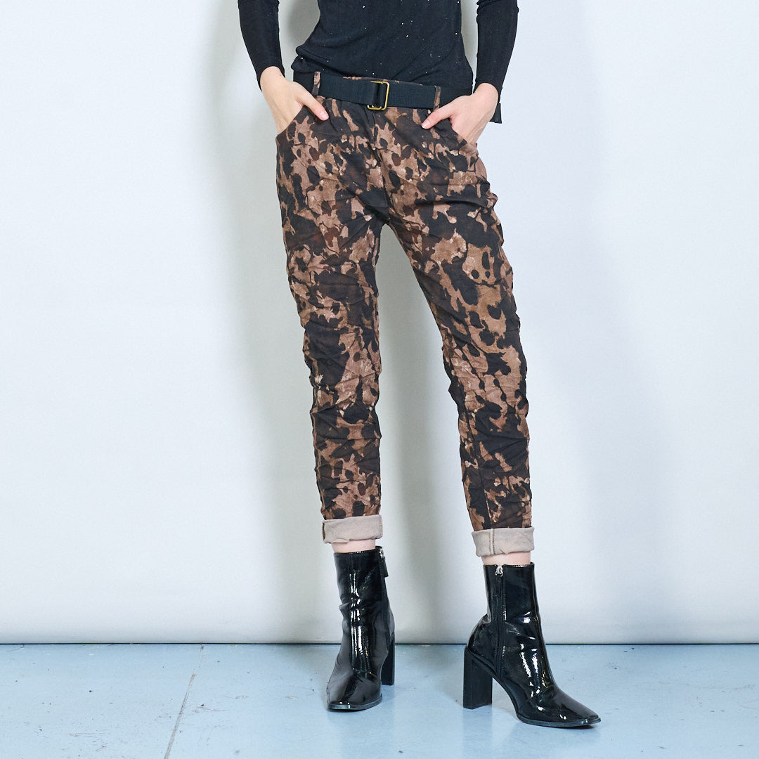 Abstrakt camo patchwork bæltet afslappet bukser engros
