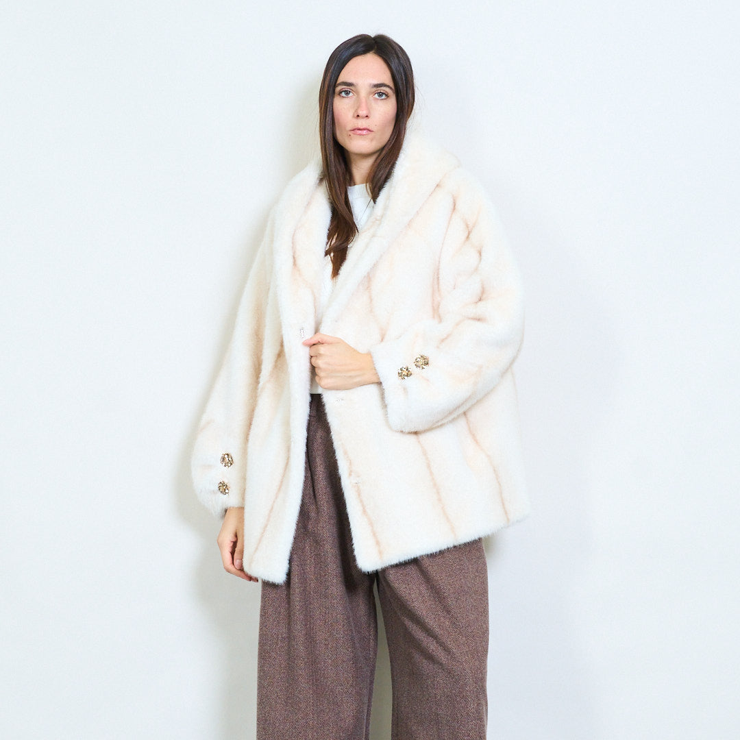 - Udformet med en voluminøs faux pels finish for et luksuriøst look