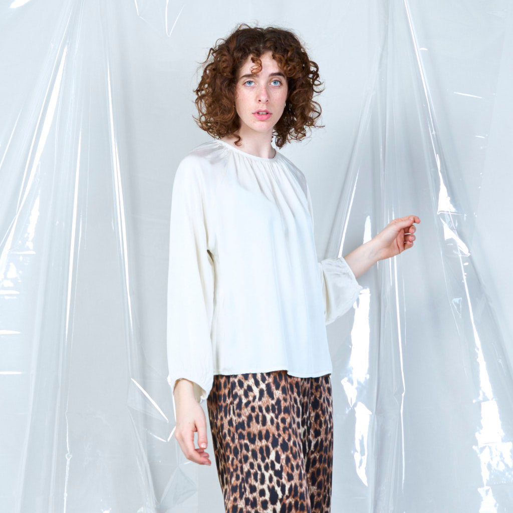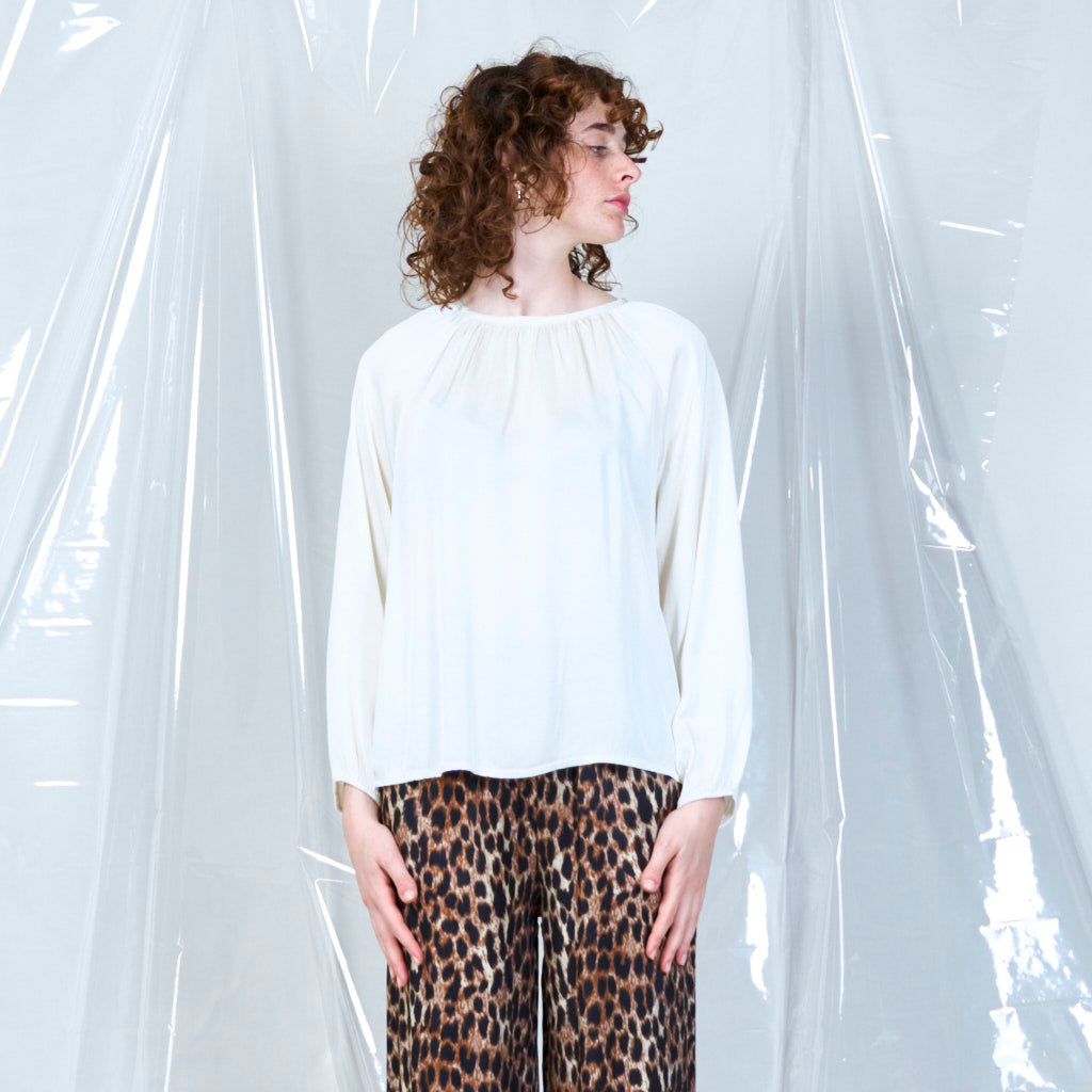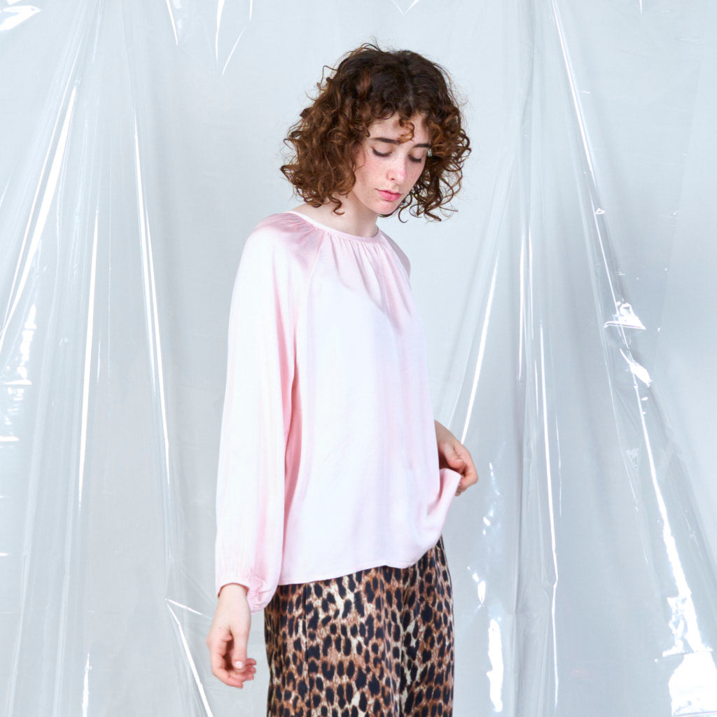 100% bomuldsstof Fast farve Bådhals bluse engros