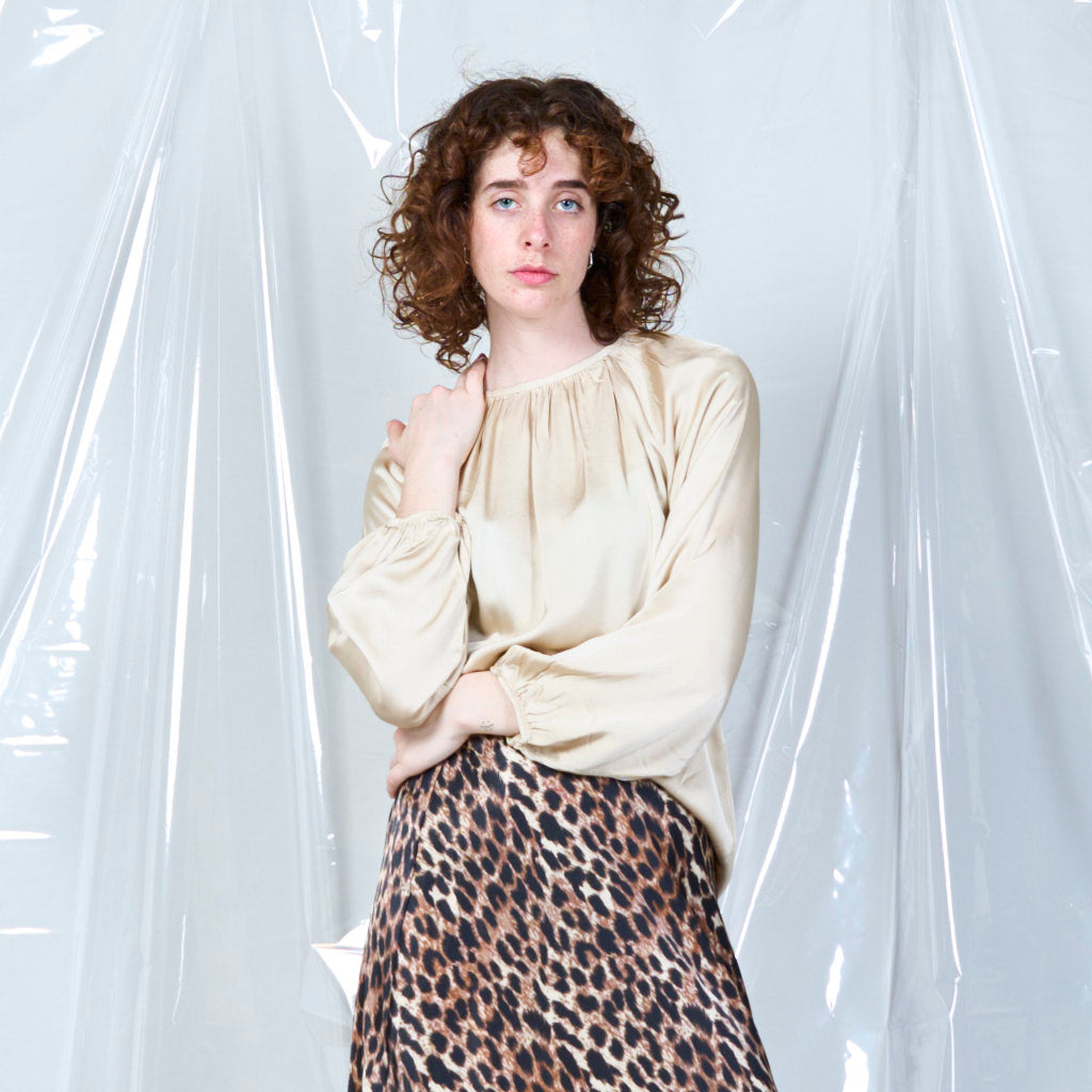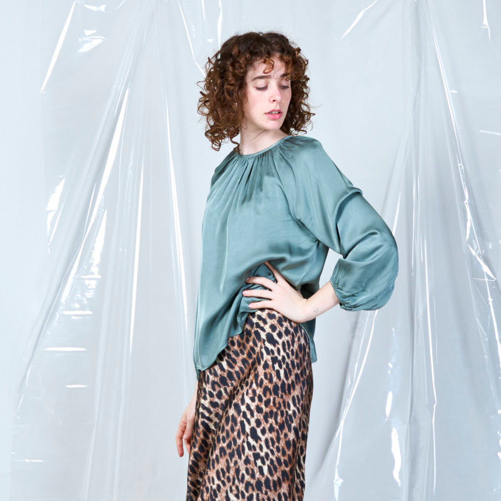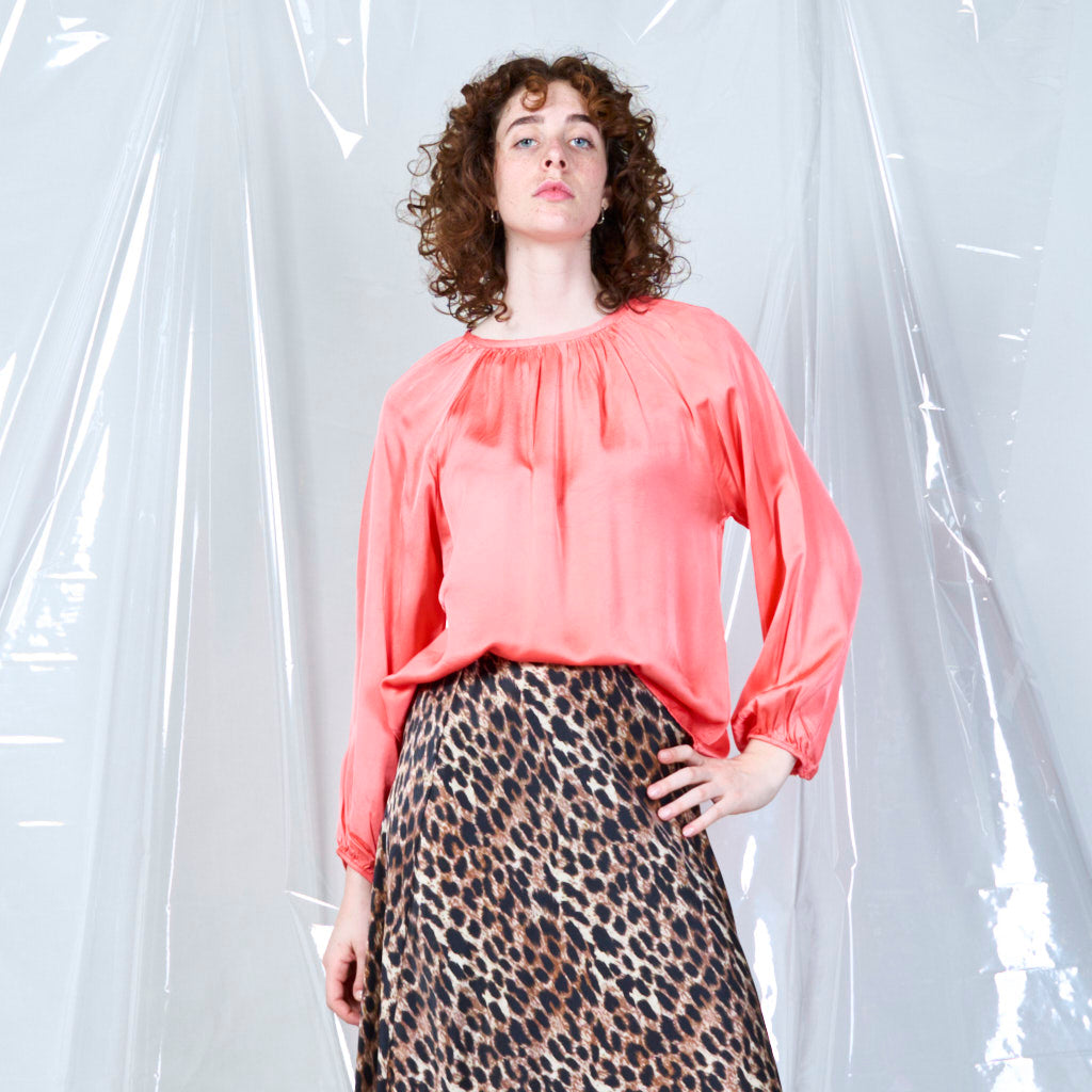 100% bomuldsstof Fast farve Bådhals bluse engros
