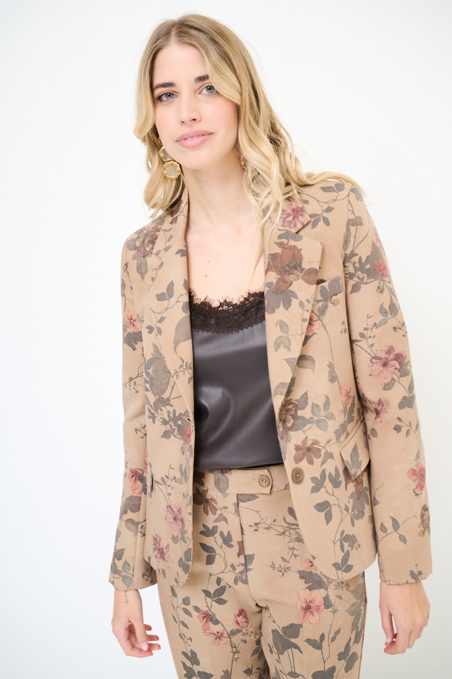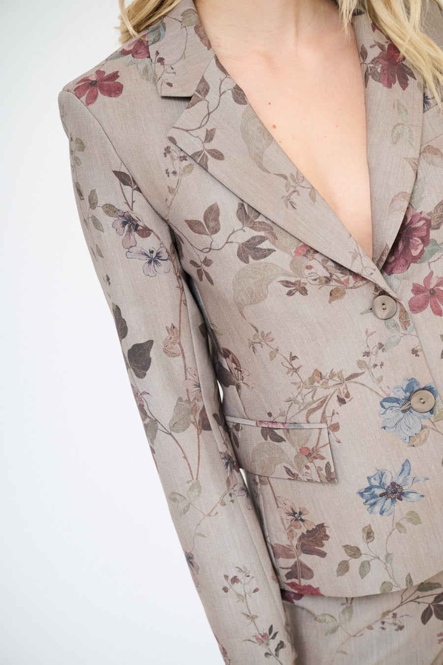 Blomsterprintet skræddersyet blazerjakke engros