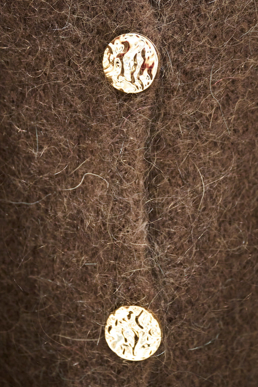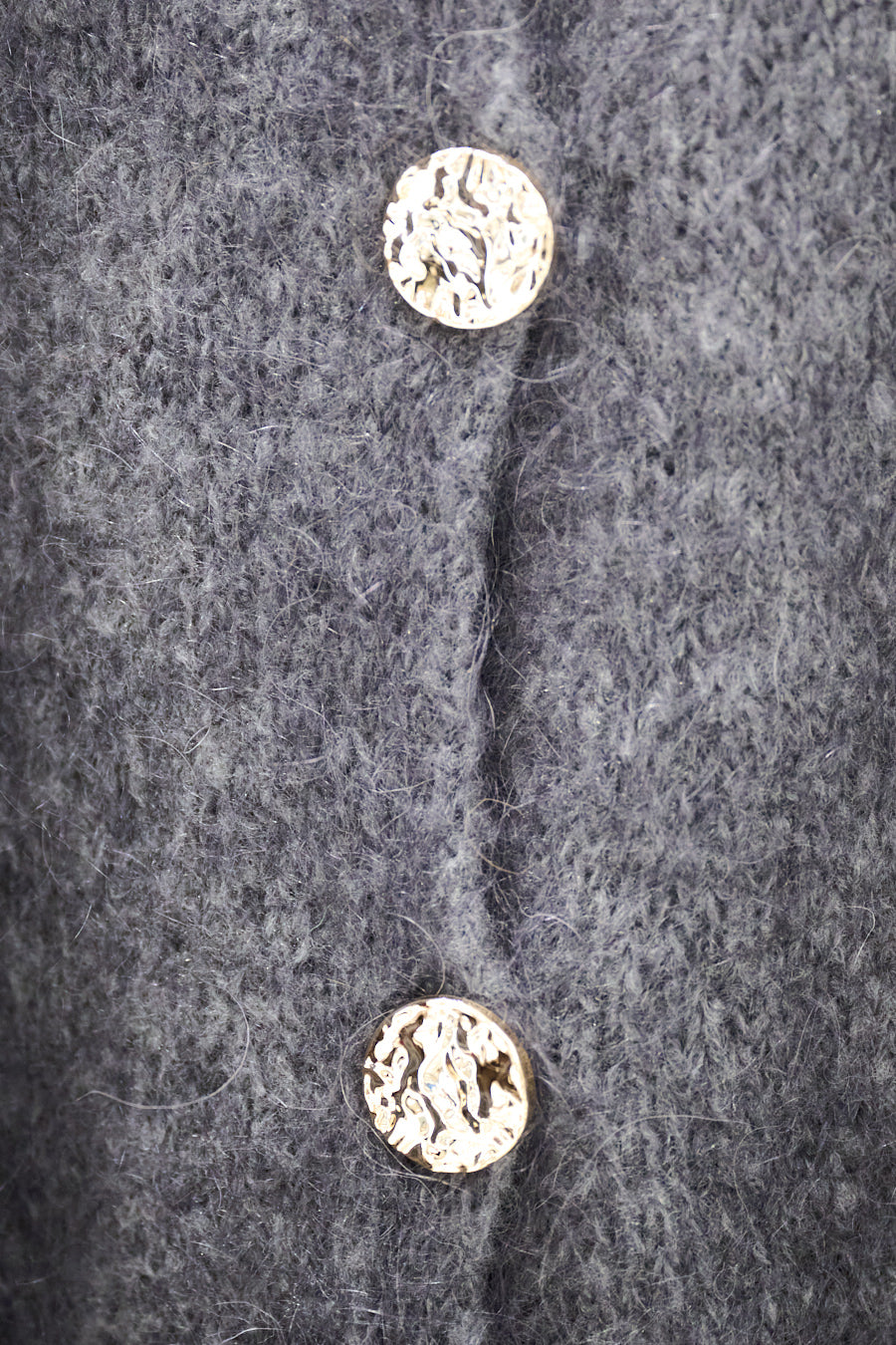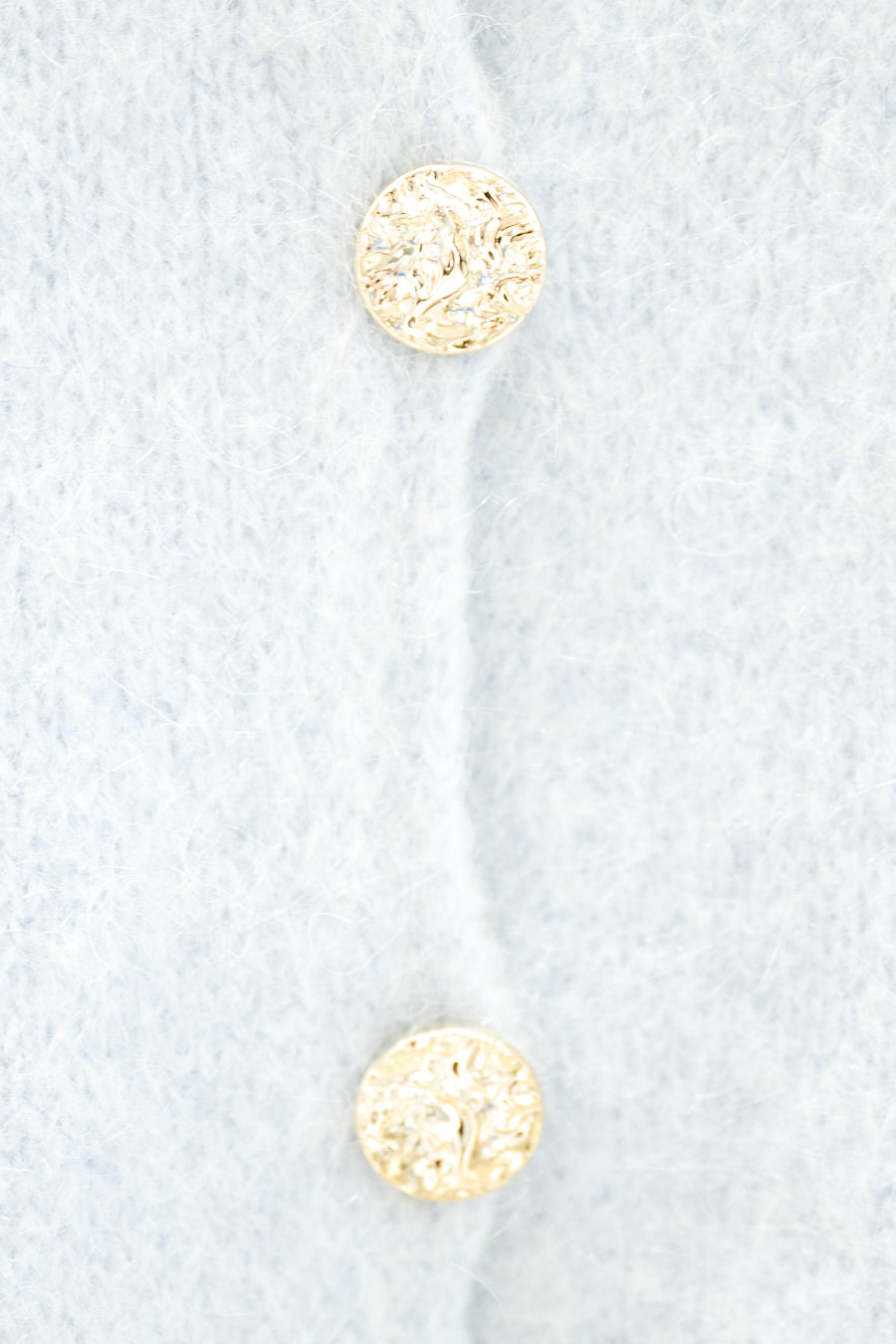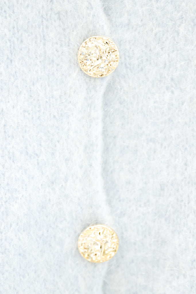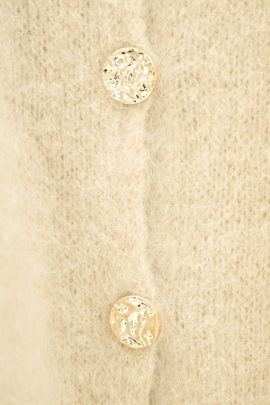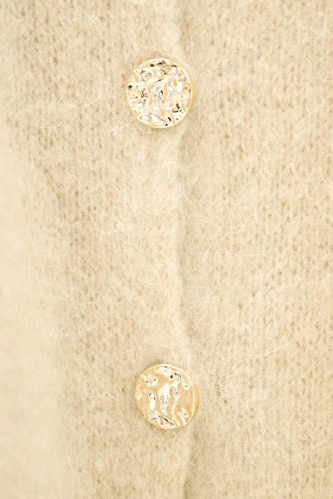 Fuzzy tekstureret guld knap foran strik cardigan engros