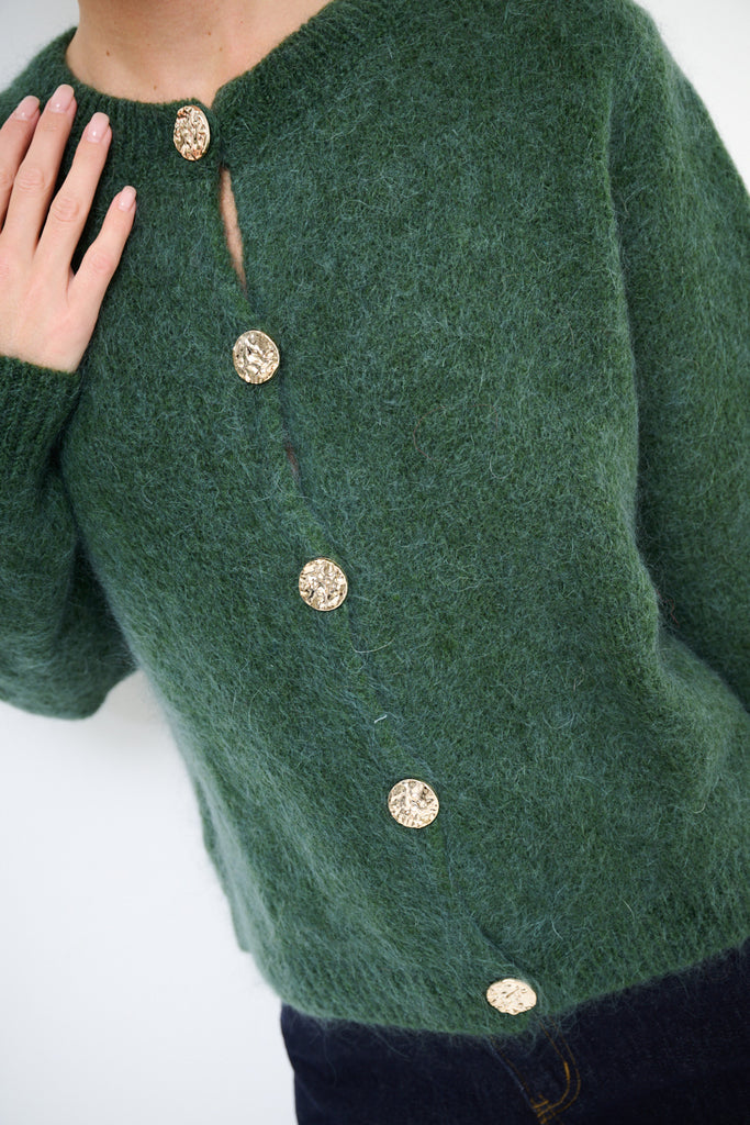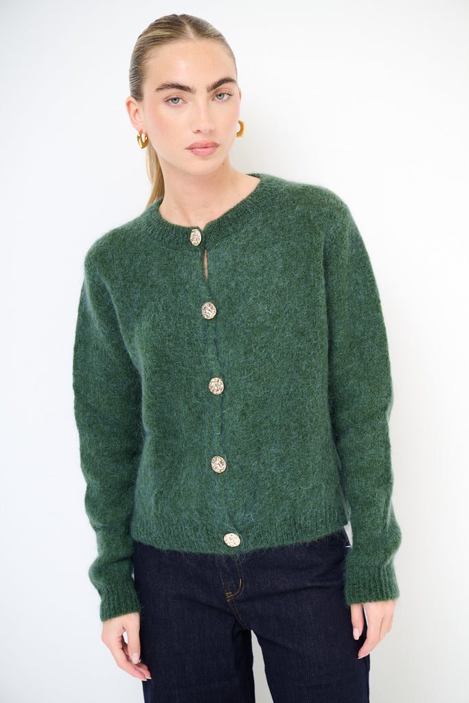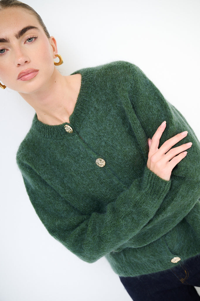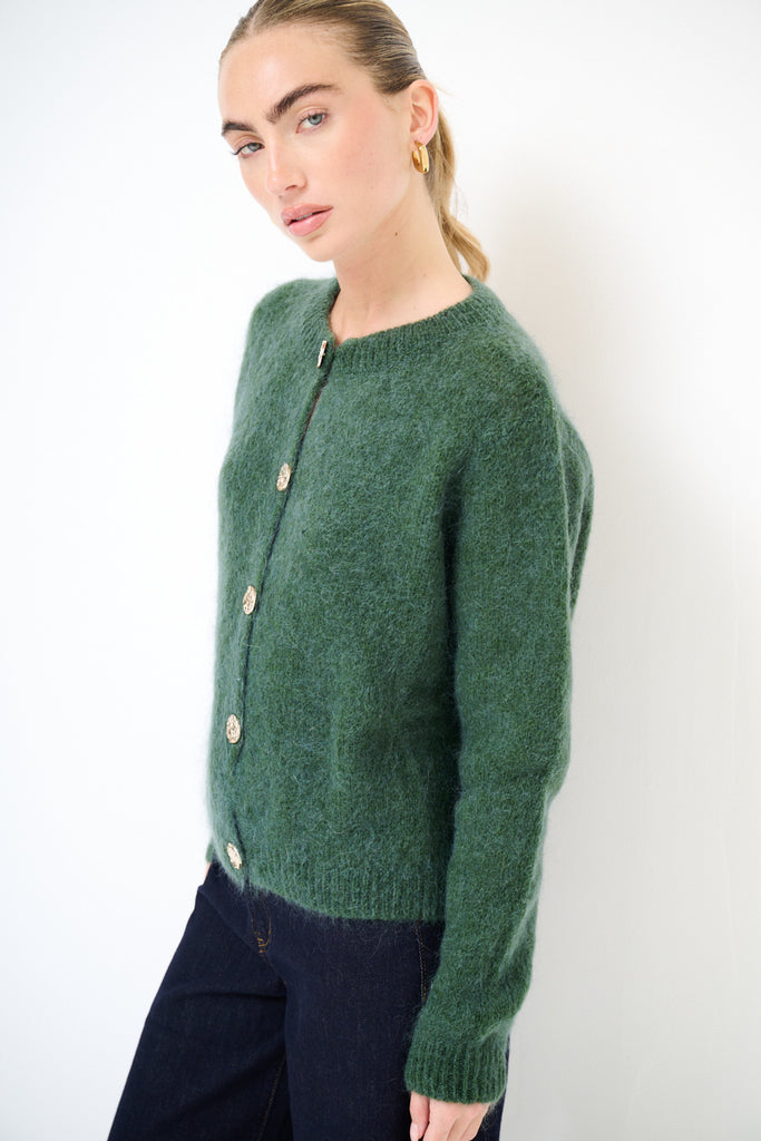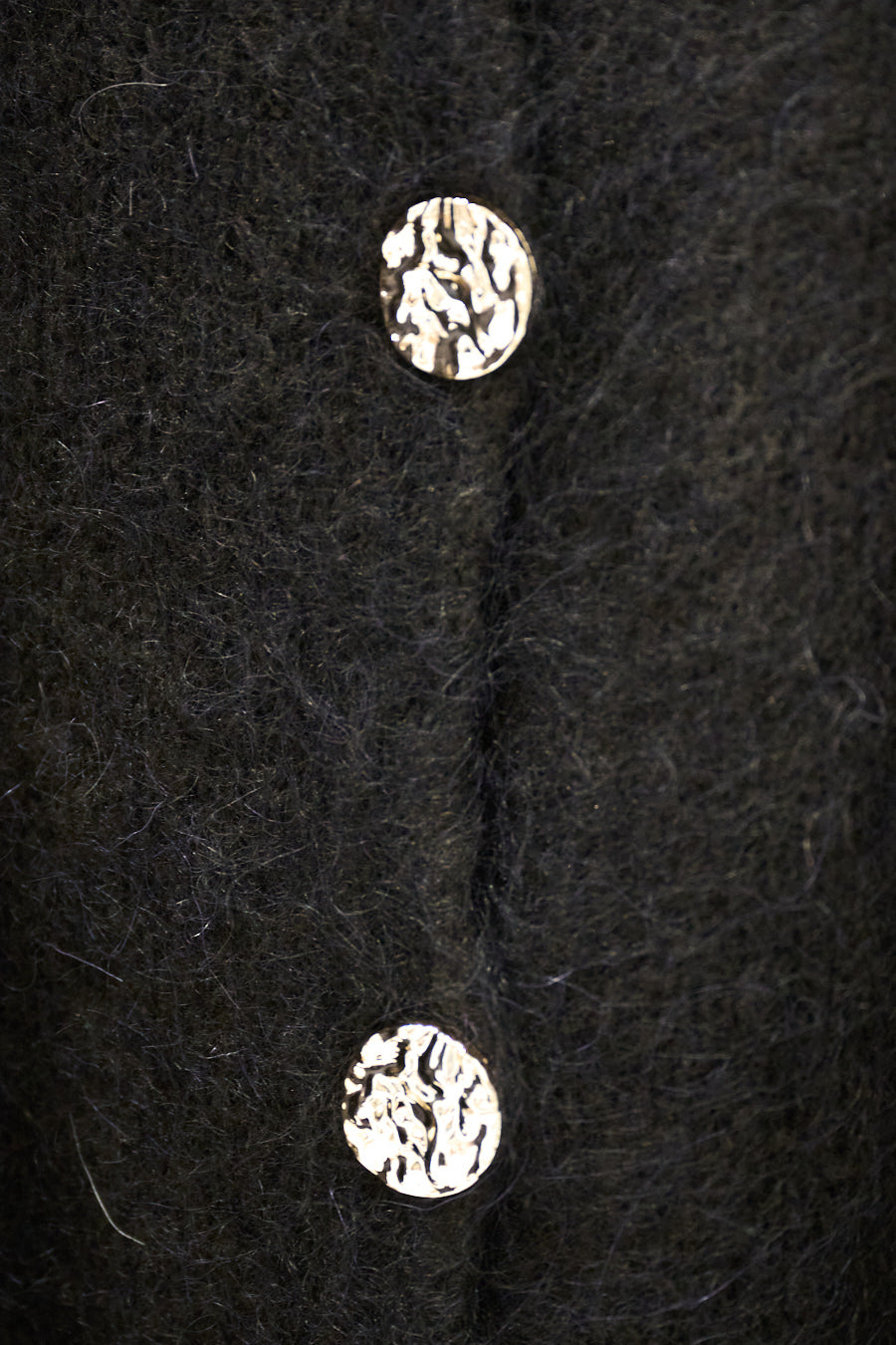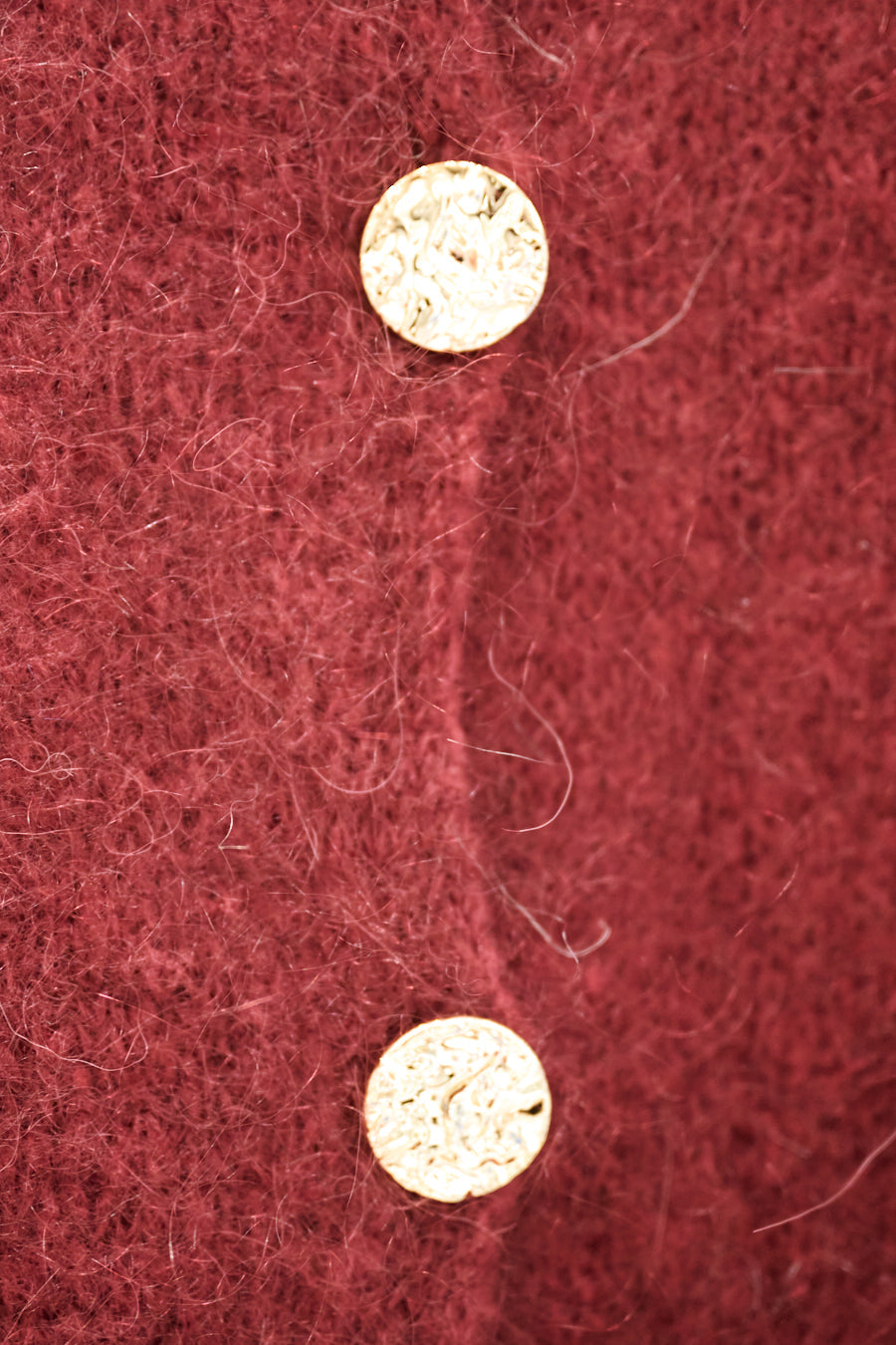 Fuzzy tekstureret guld knap foran strik cardigan engros