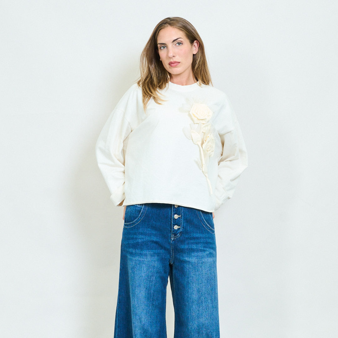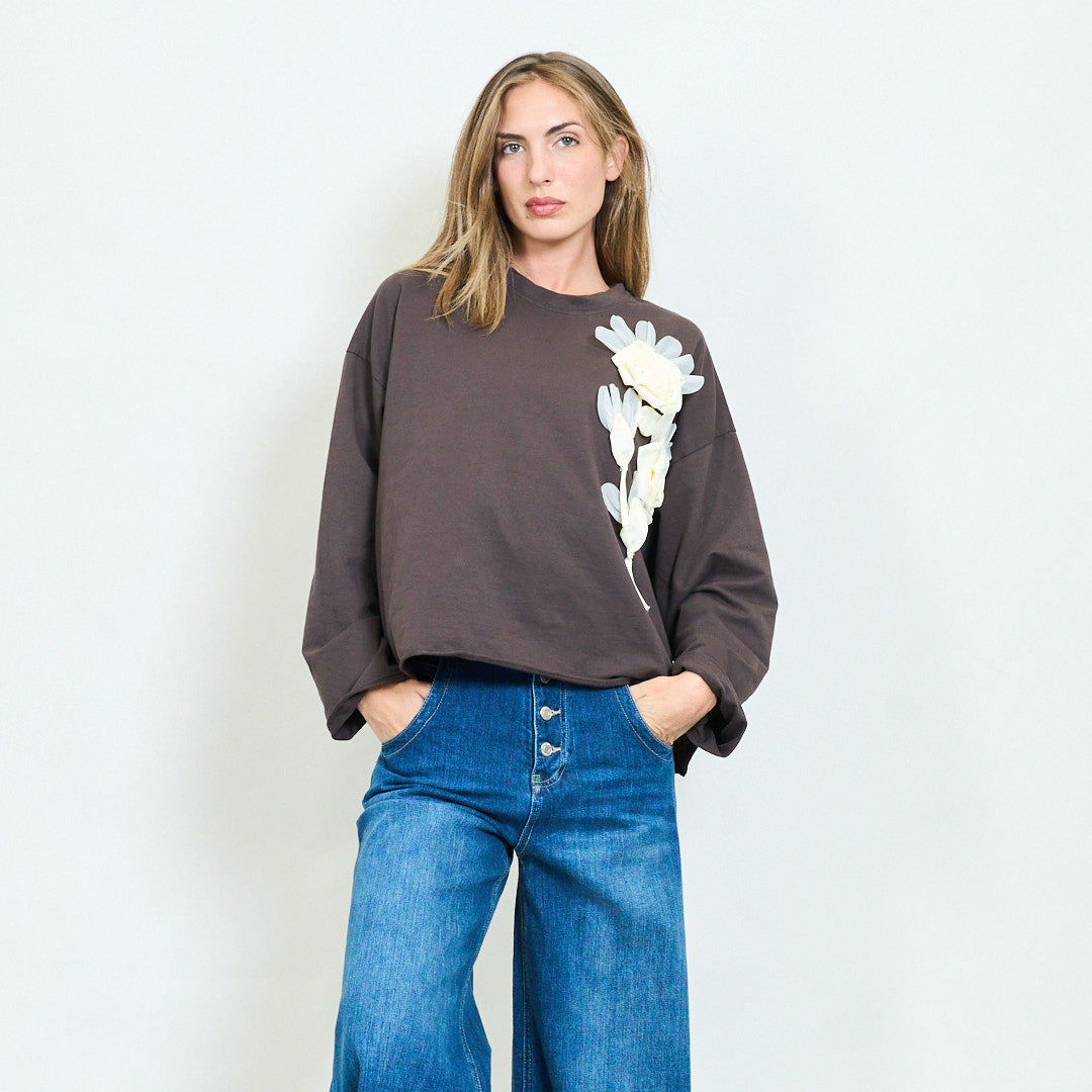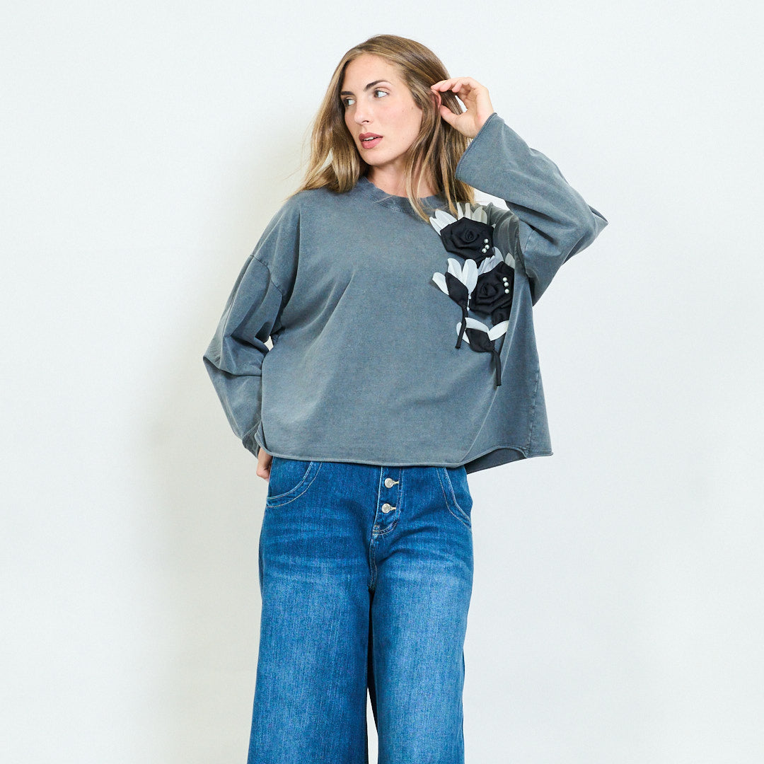 Overdimensioneret sweatshirt med blomsterapplikationer og perlerede frynse engros