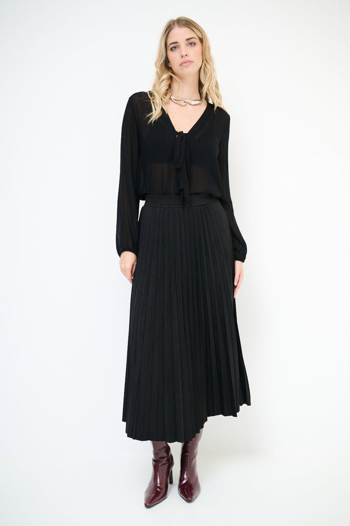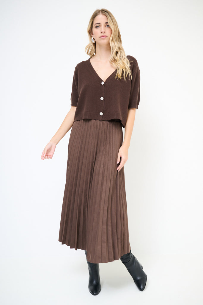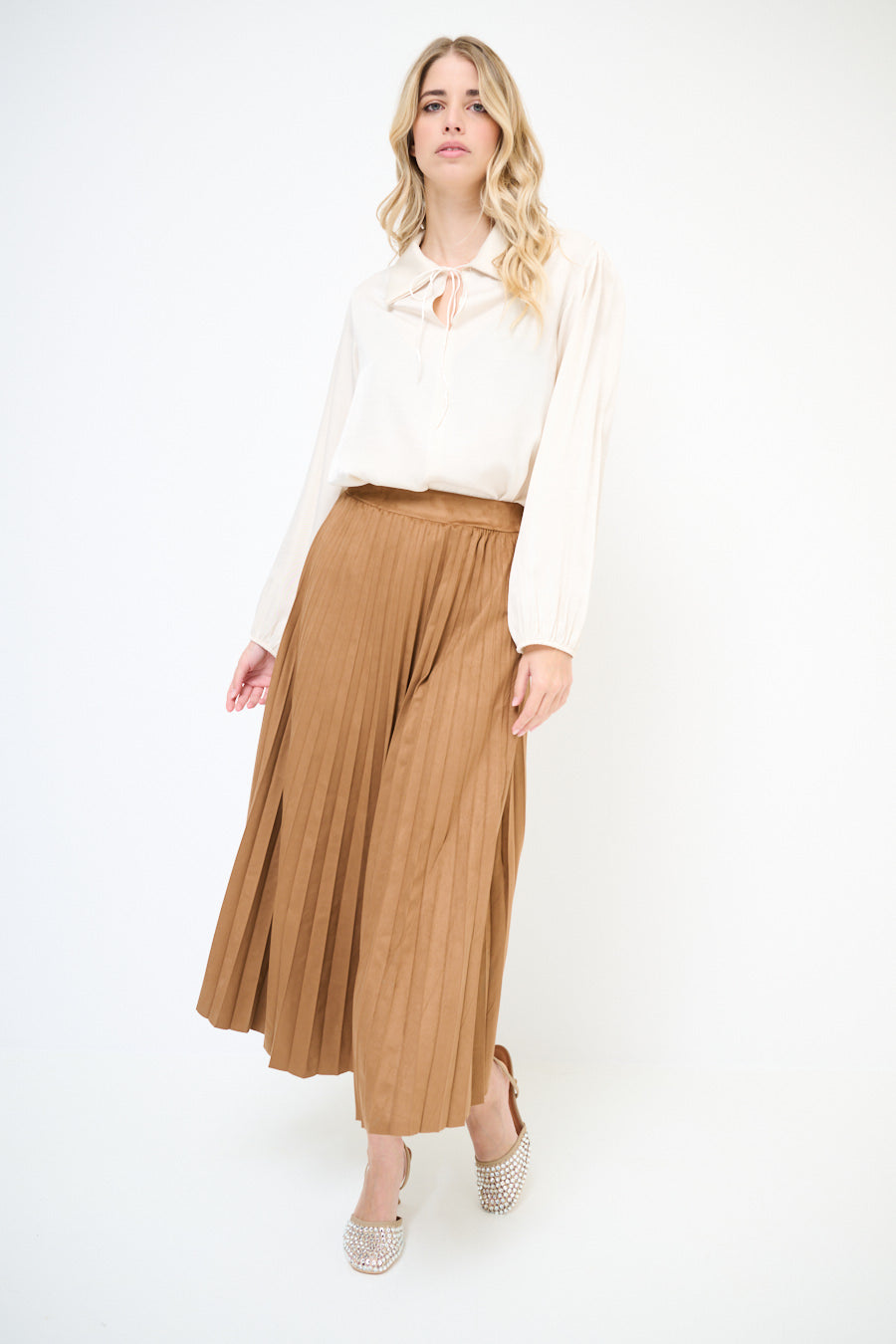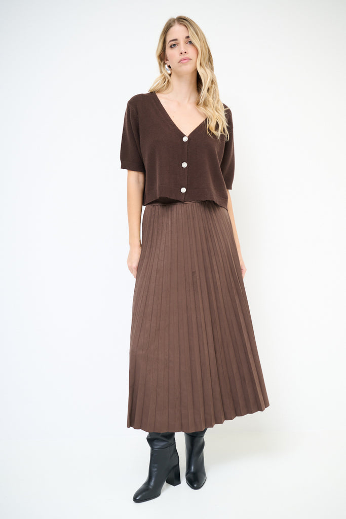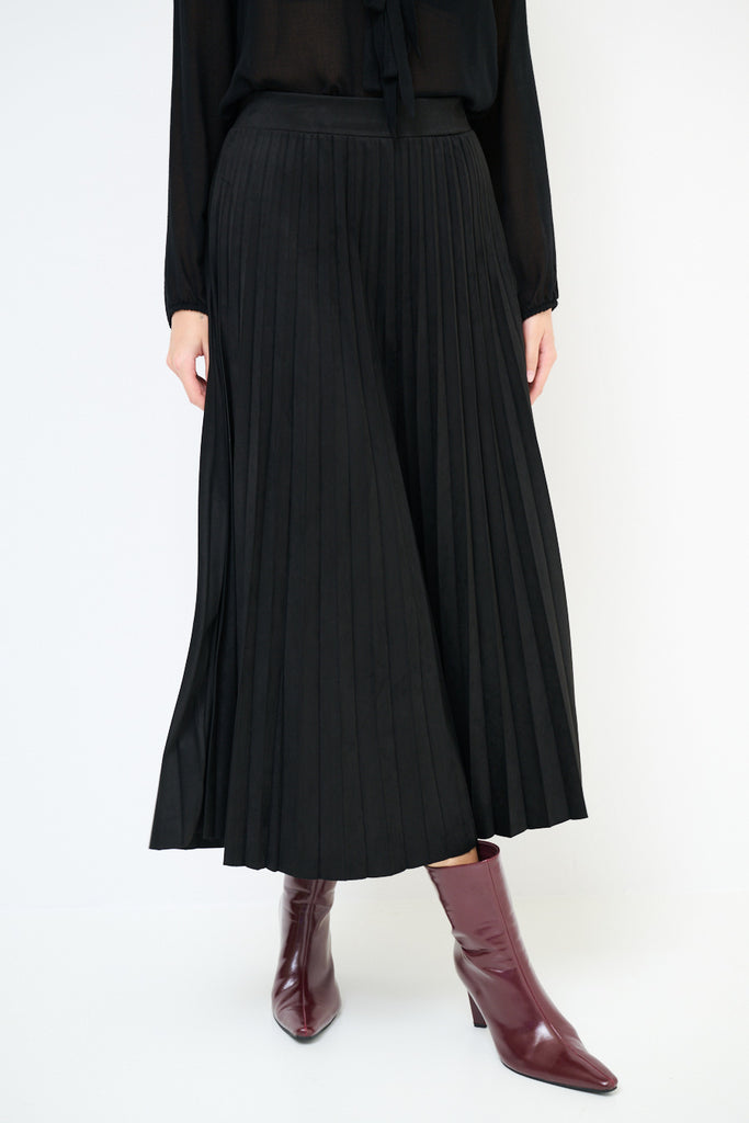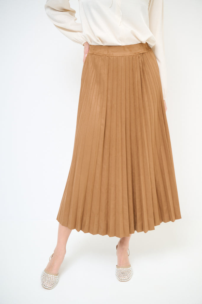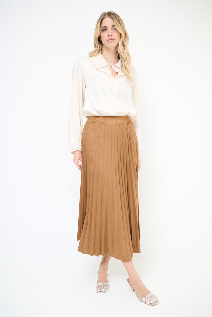 - Sofistikeret nederdel i A-linje udformet med en blød ruskindslignende tekstur