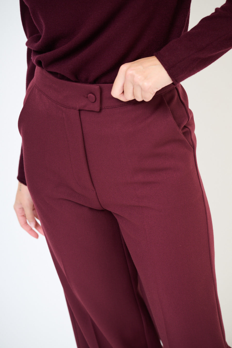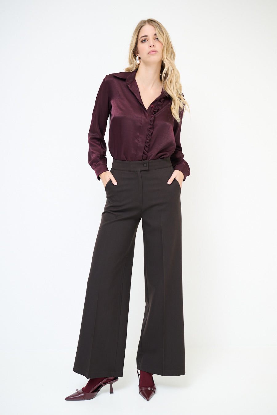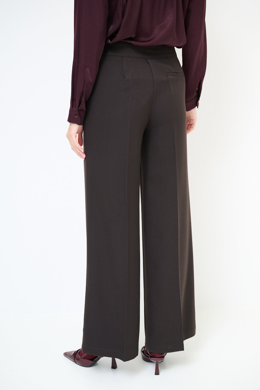 - Struktureret linning med bæltestropper og skjult lukning for en ren finish