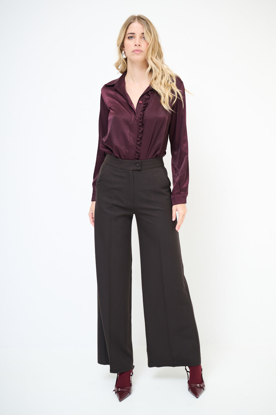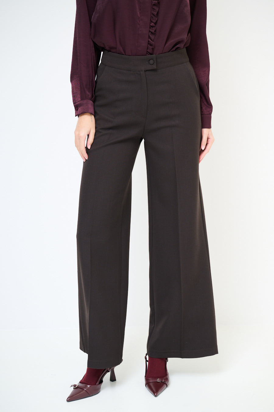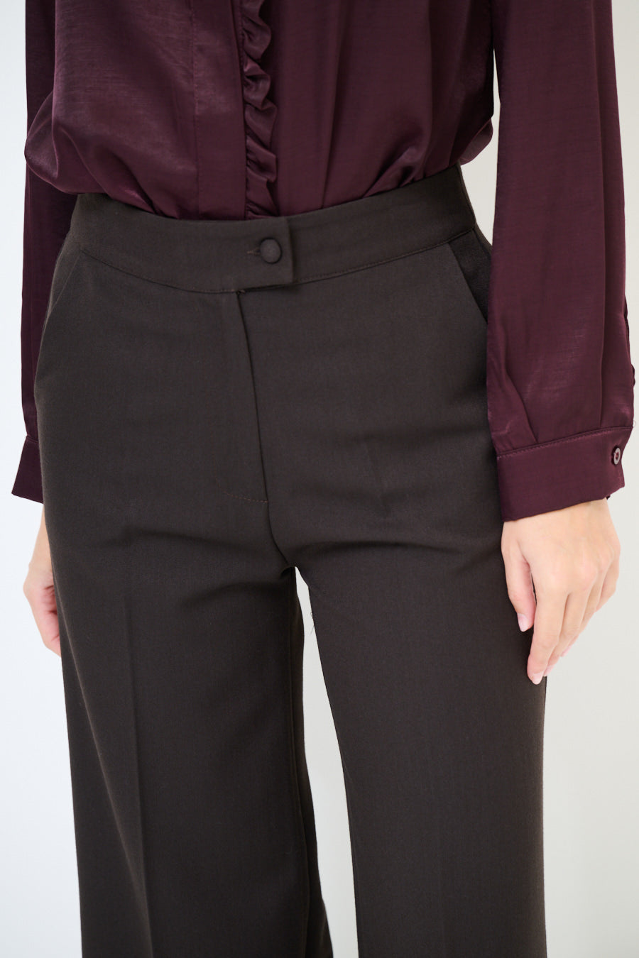 - Struktureret linning med bæltestropper og skjult lukning for en ren finish