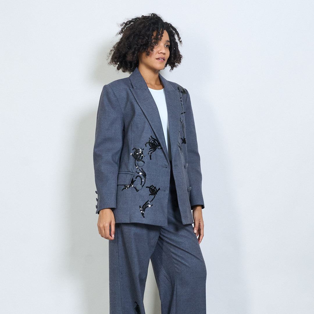 Skræddersyet blazer med blomsterbroderidetaljer Engros