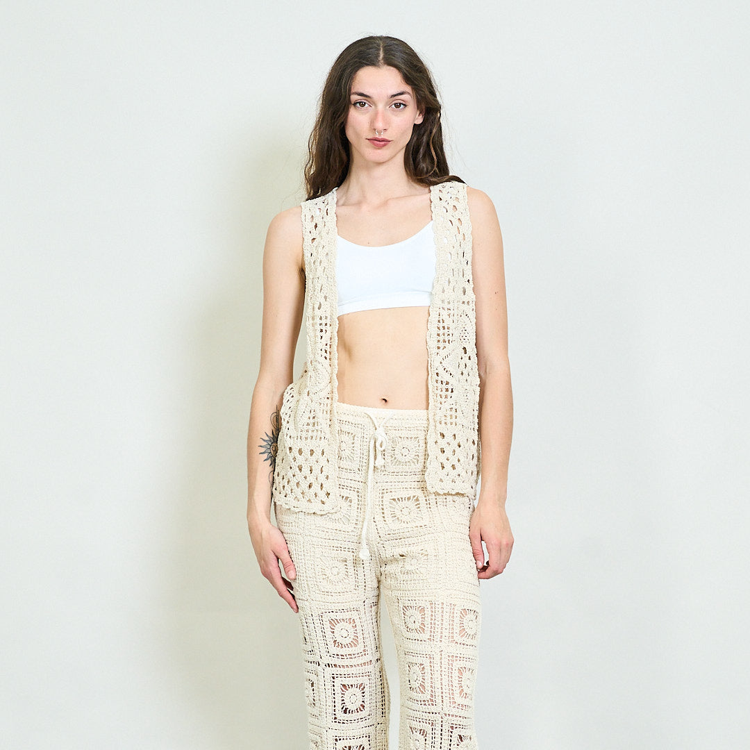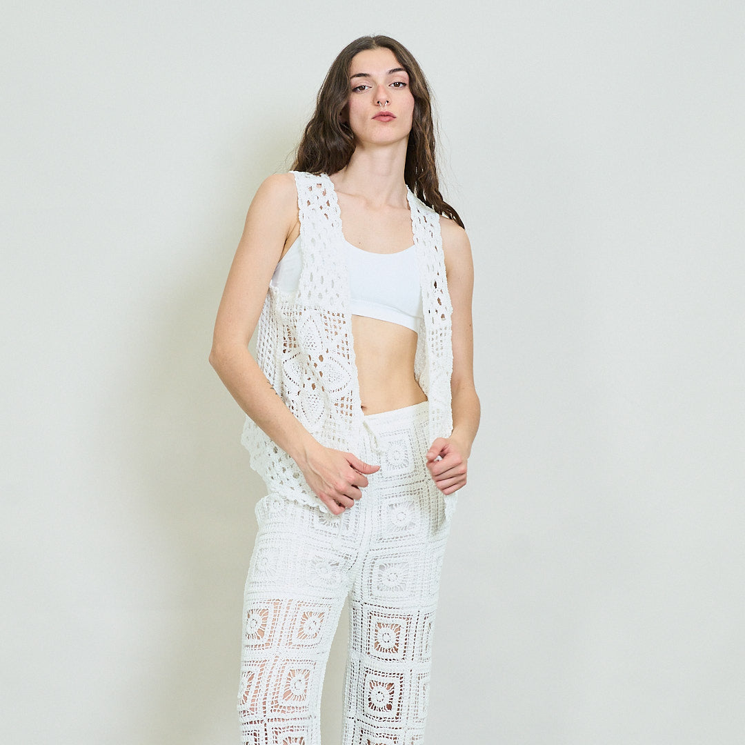 Bohemsk åbent ærmeløs hæklet vest med kammusling detaljer engros