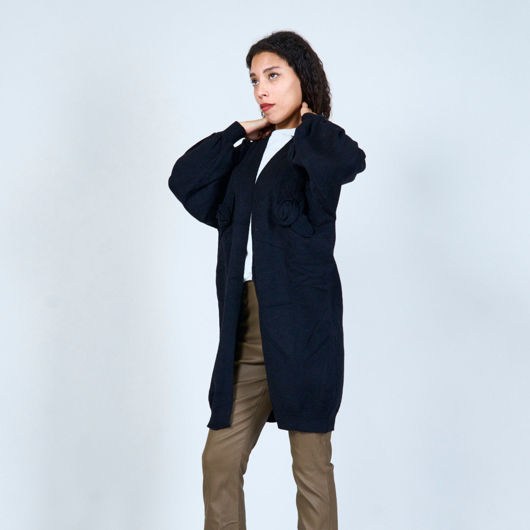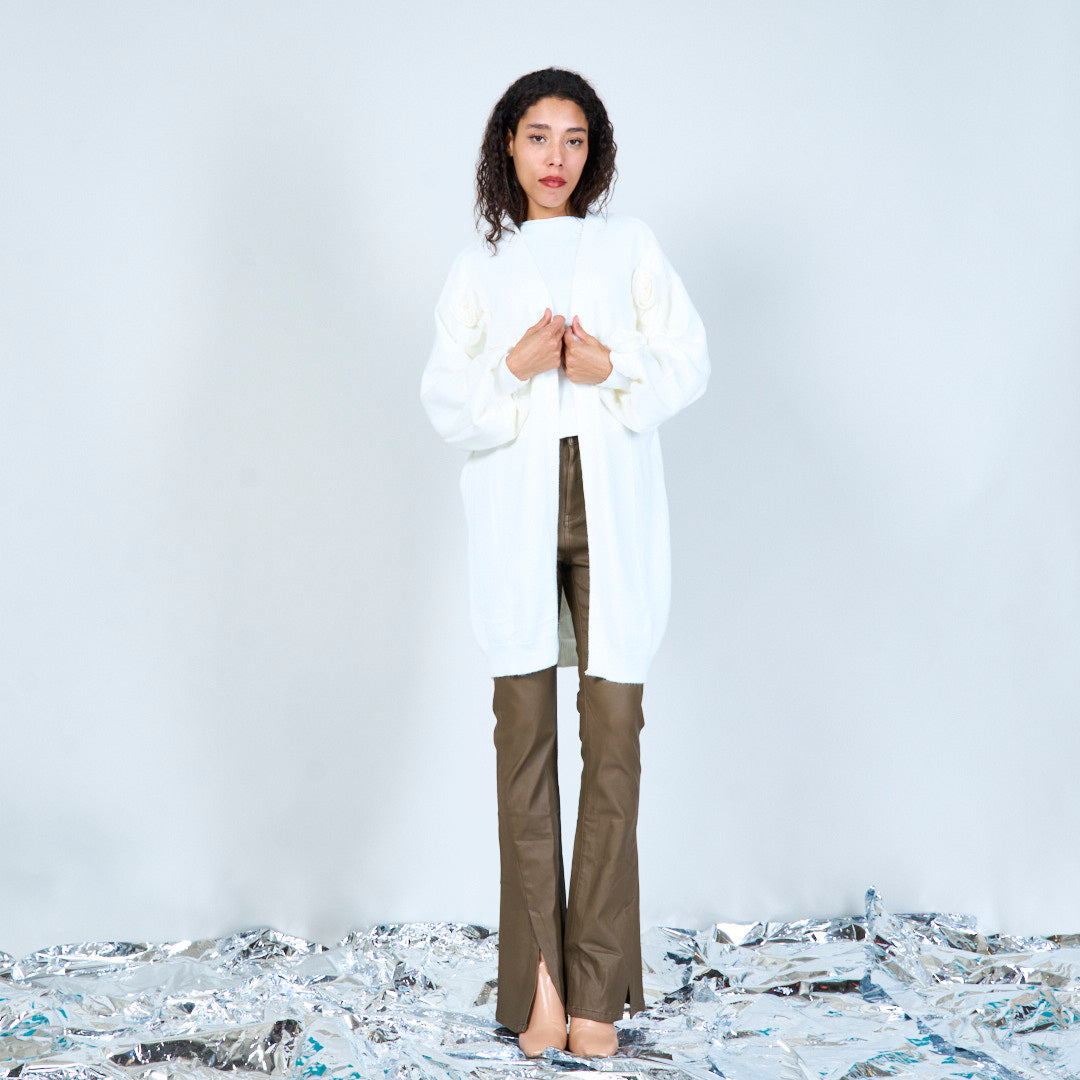- Pyntet med 3D blomsterapplikationer til et elegant look