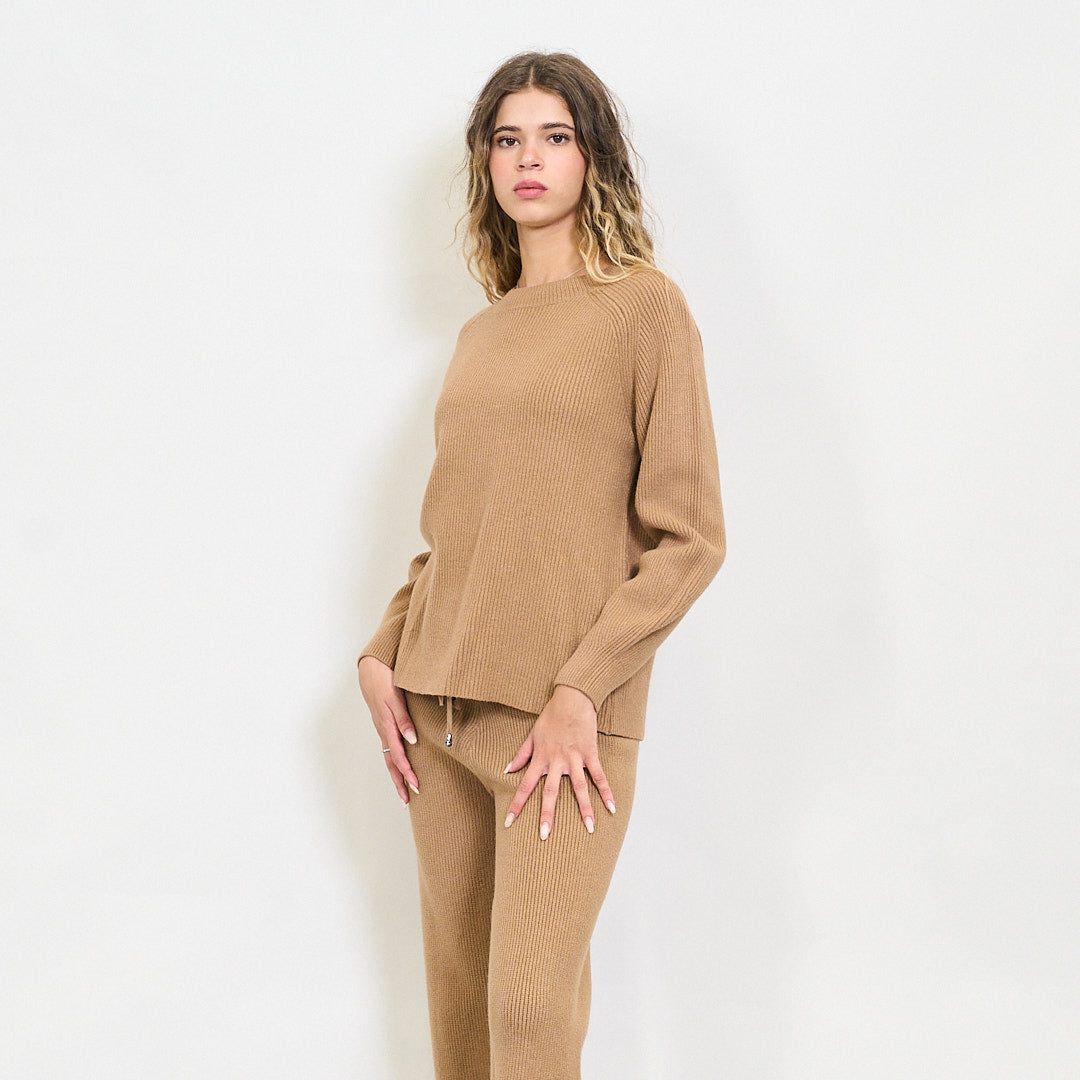 - Blød ribbet strik tekstur tilføjer strækning og komfort
