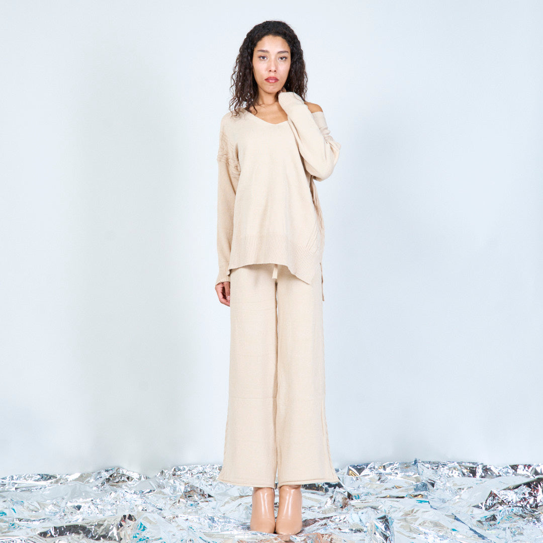 - Inkluderer en V-hals-sweater og matchende loungebukser